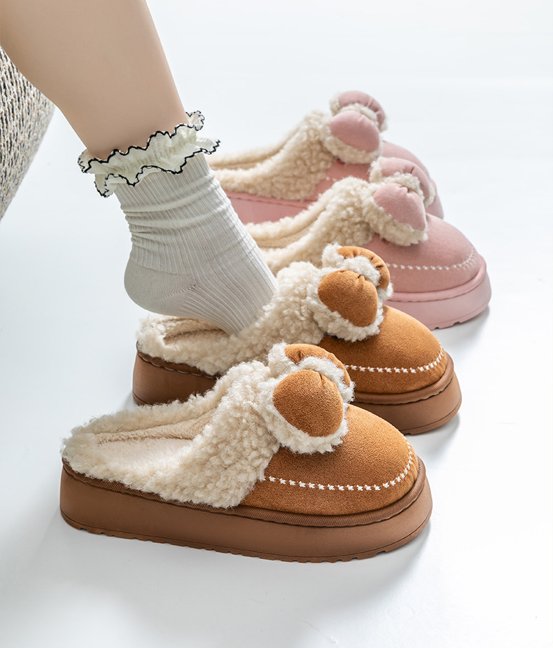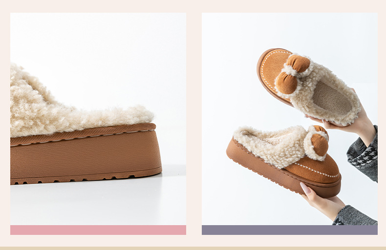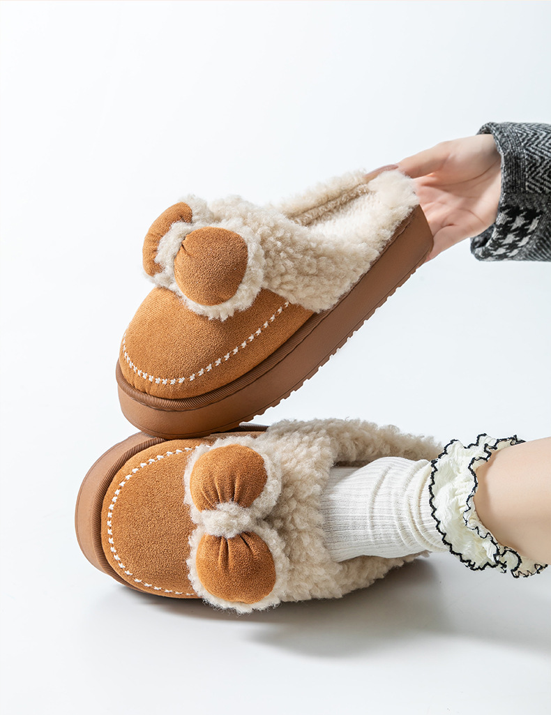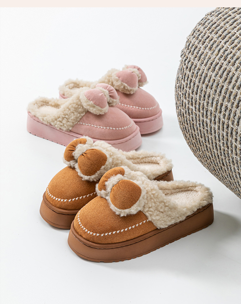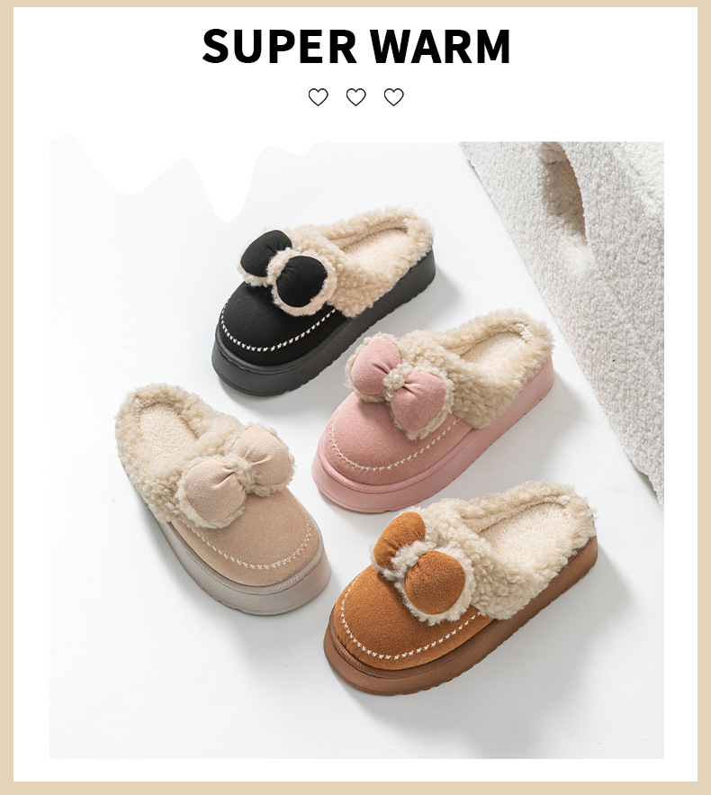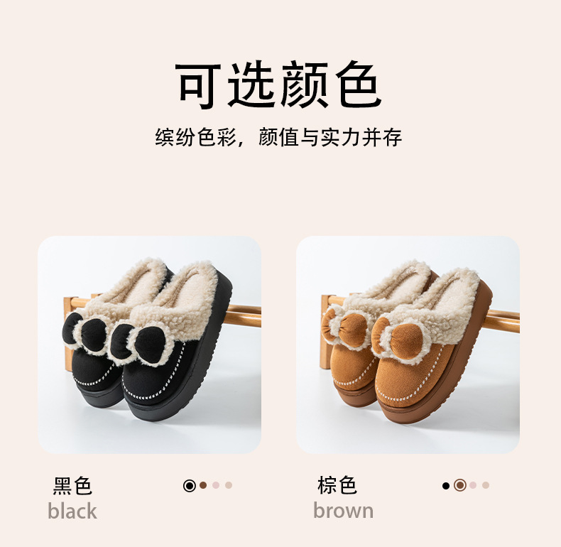 2025蝴蝶結新款棉拖鞋女時尚情侶厚底加絨保暖秋冬季地板棉拖跨