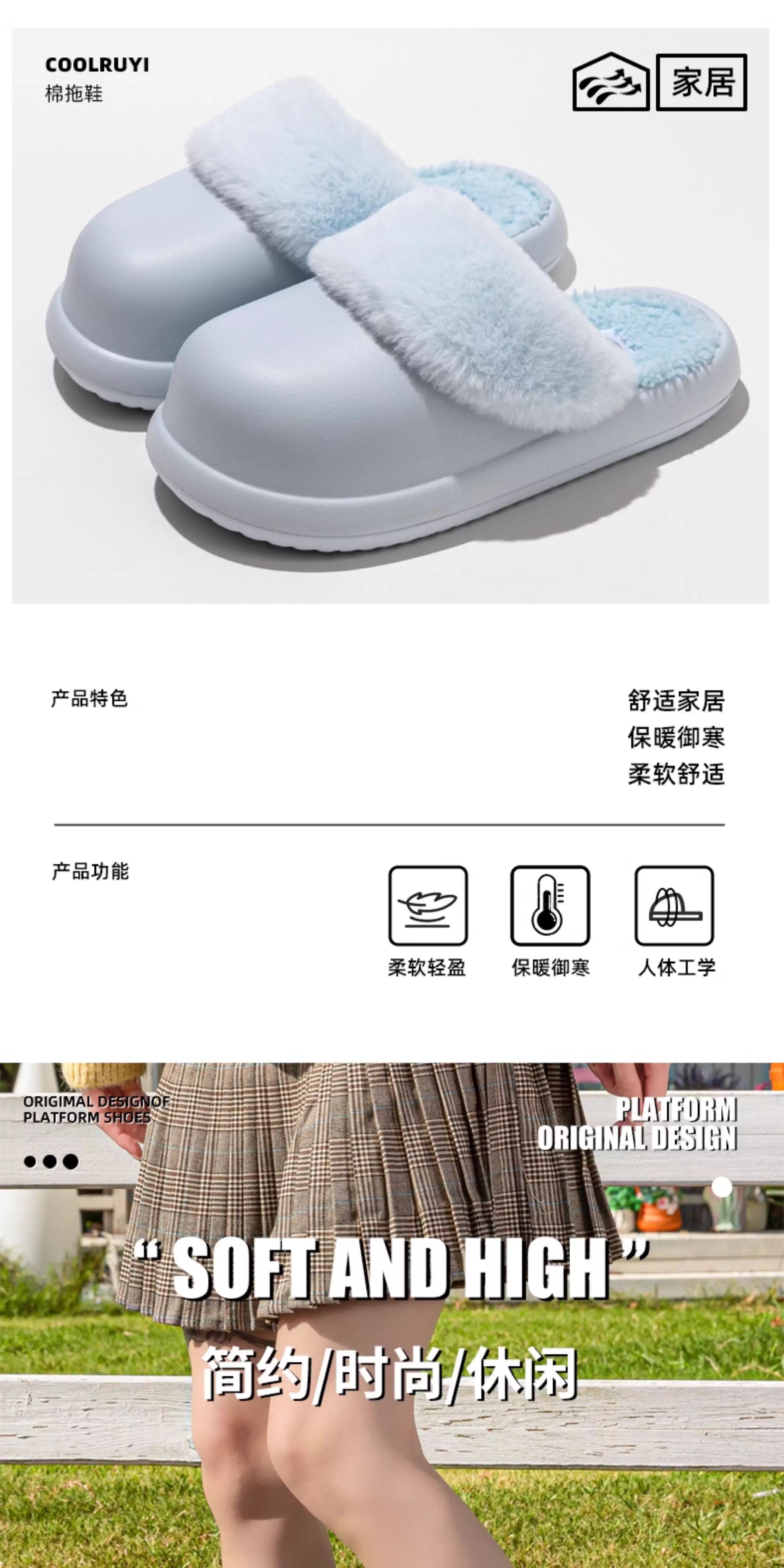 可拆卸厚底保暖棉拖鞋女5新冬季室內家居防滑踩屎感月子鞋男
