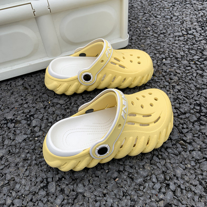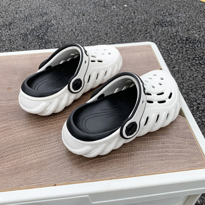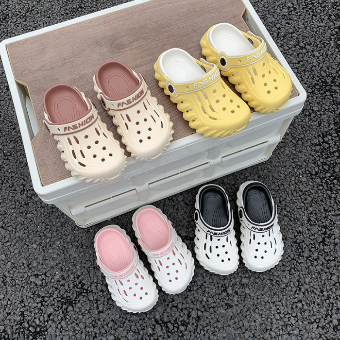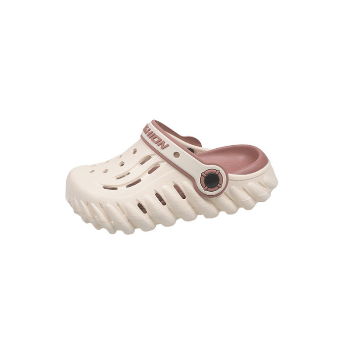 兒童洞洞鞋夏季新款中大童外穿軟底防滑波波鞋室內雙色包頭涼拖鞋