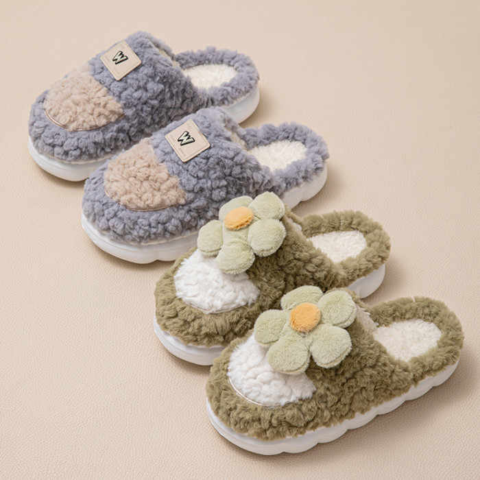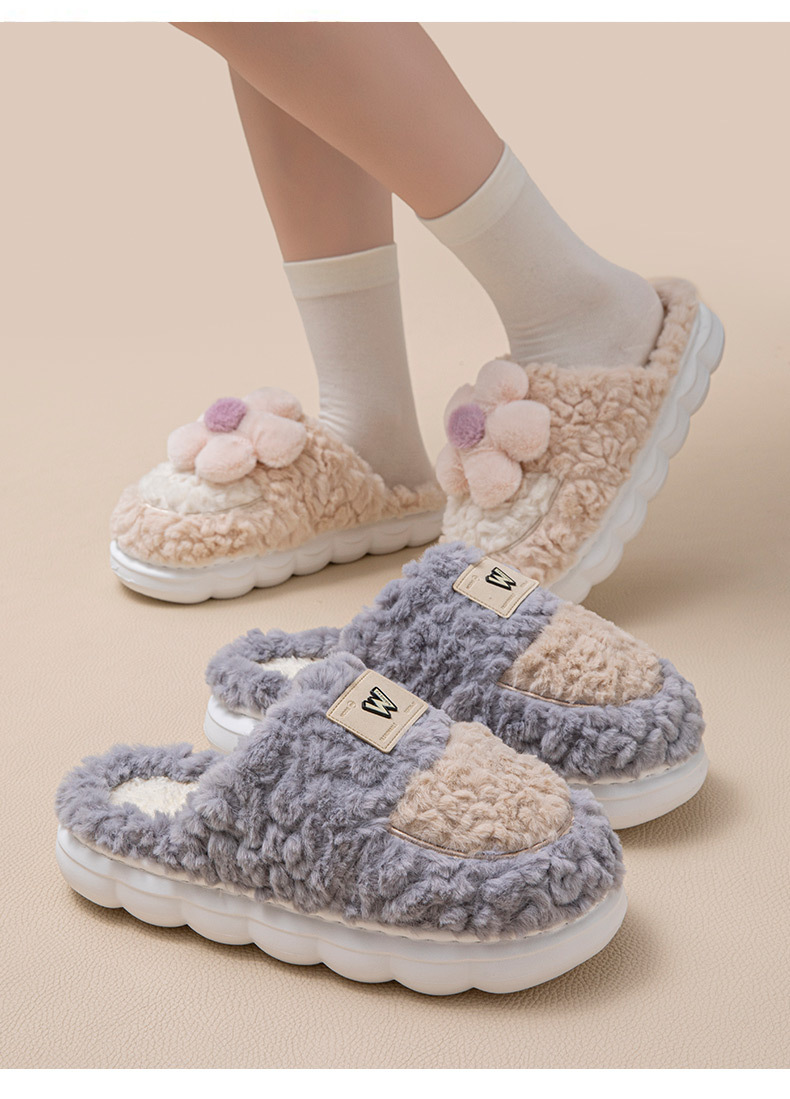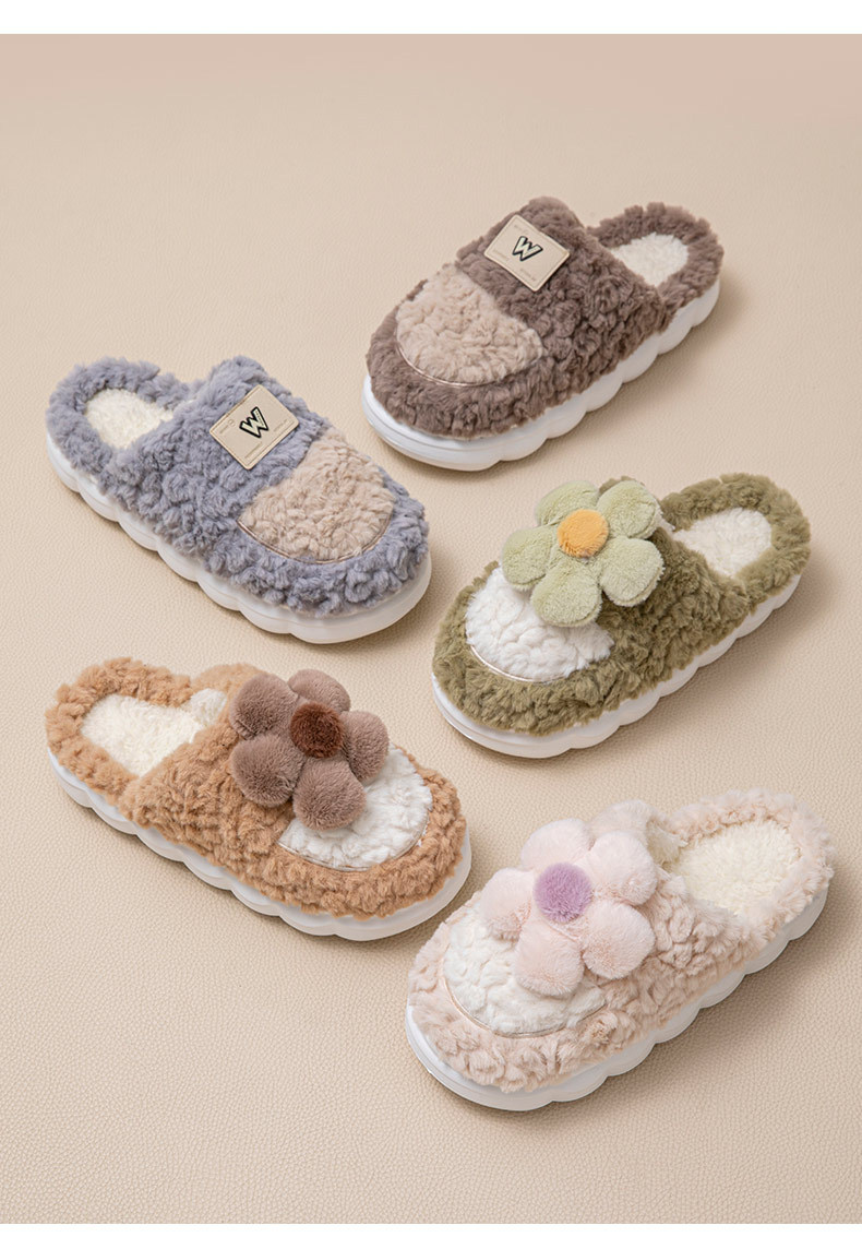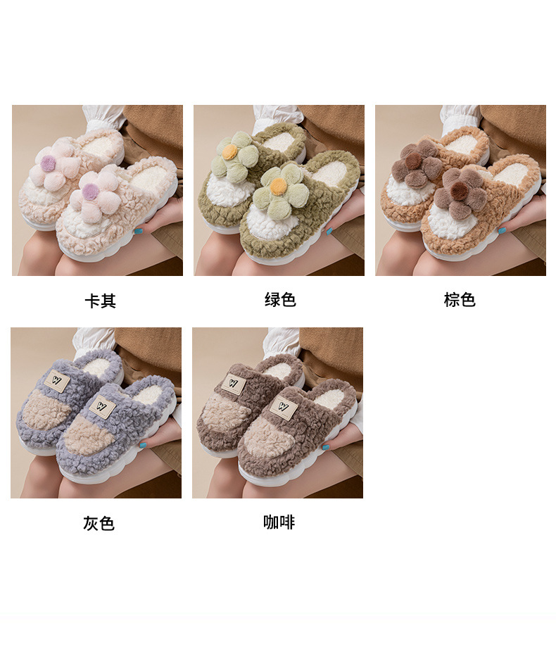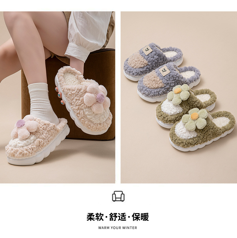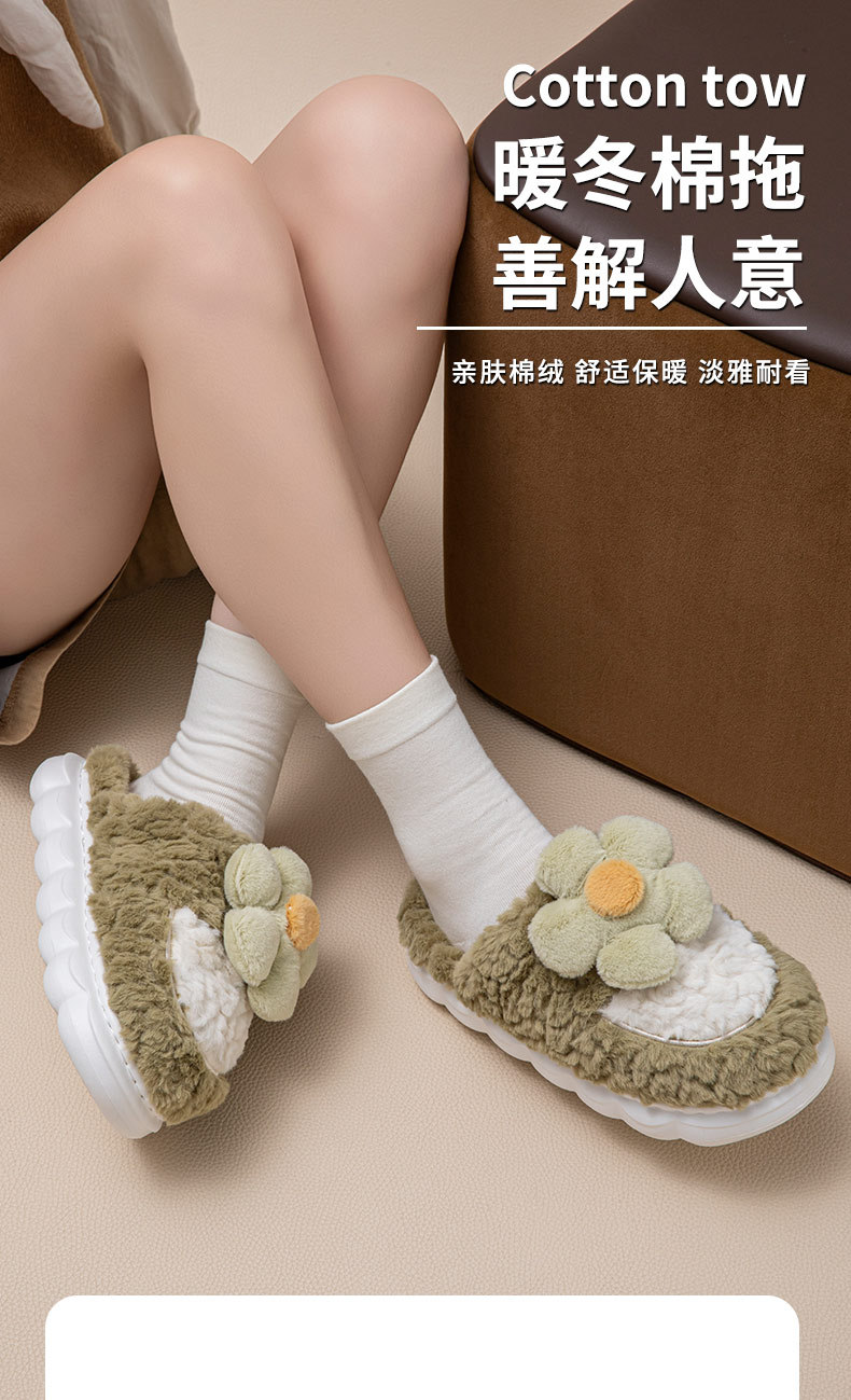 2025太陽花新款棉拖鞋男女時尚情侶厚底加絨保暖秋冬地板棉拖