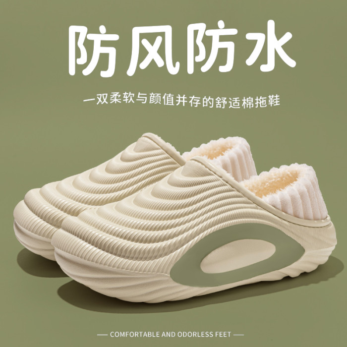 保暖包跟棉拖鞋女5新冬季防滑防水加絨居家踩屎感月子鞋男