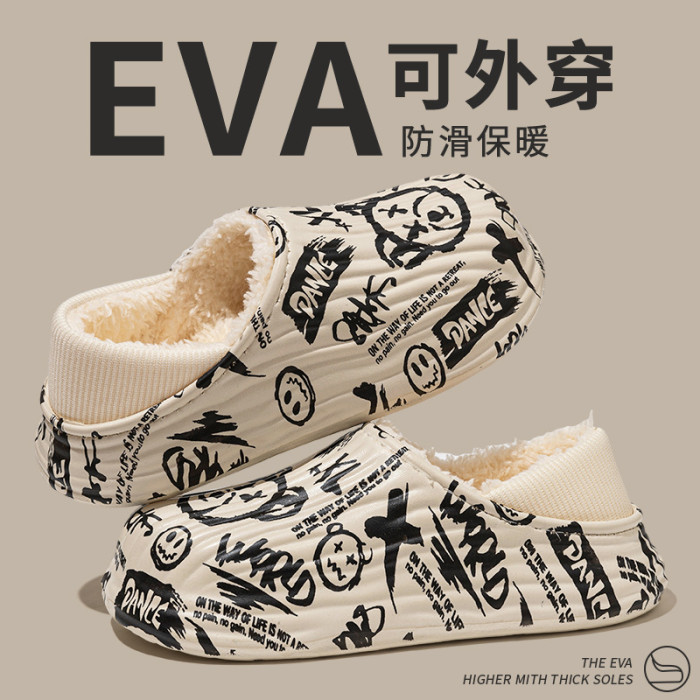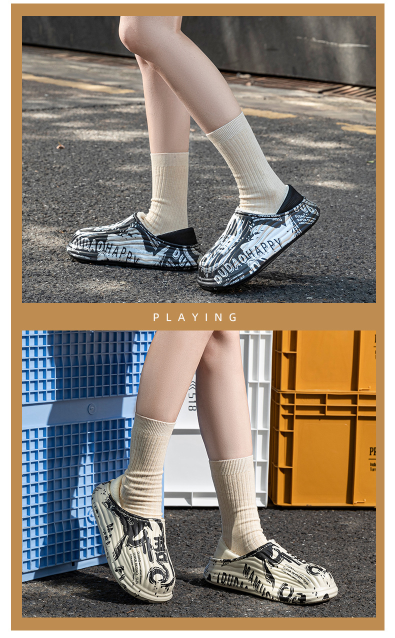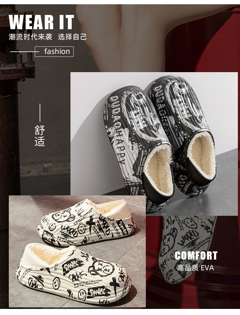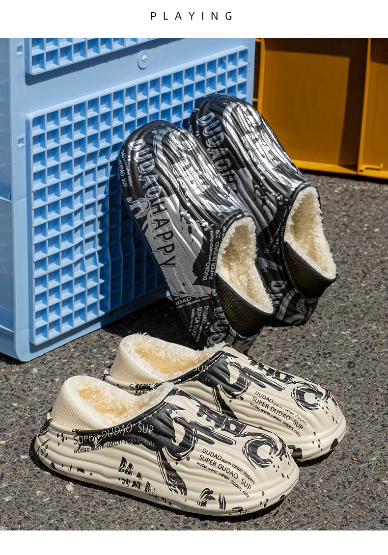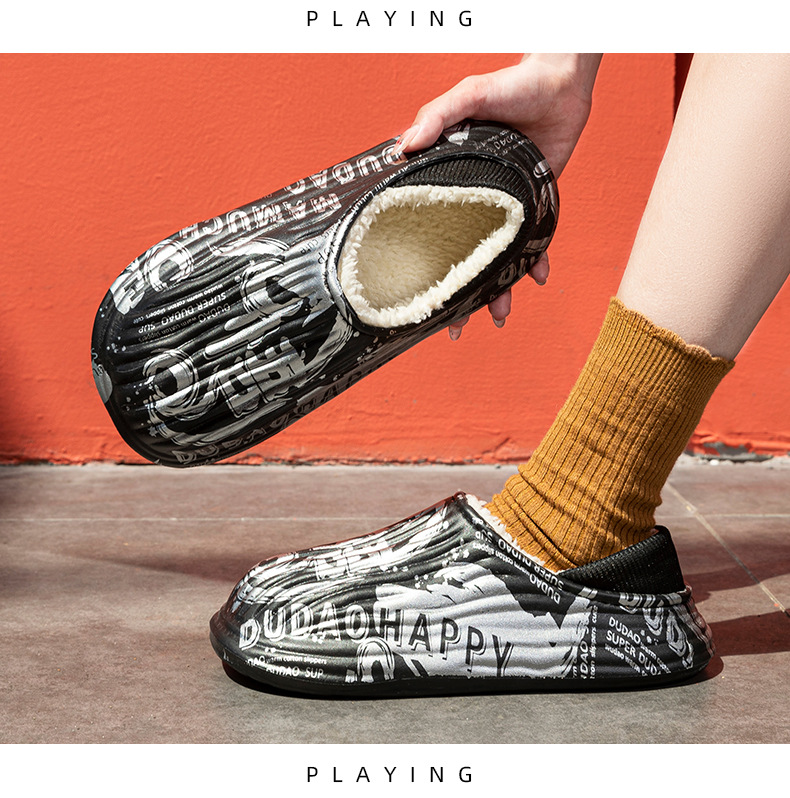 街頭潮男包頭防水保暖棉拖鞋保暖防滑家居棉鞋女冬季情侶棉拖鞋