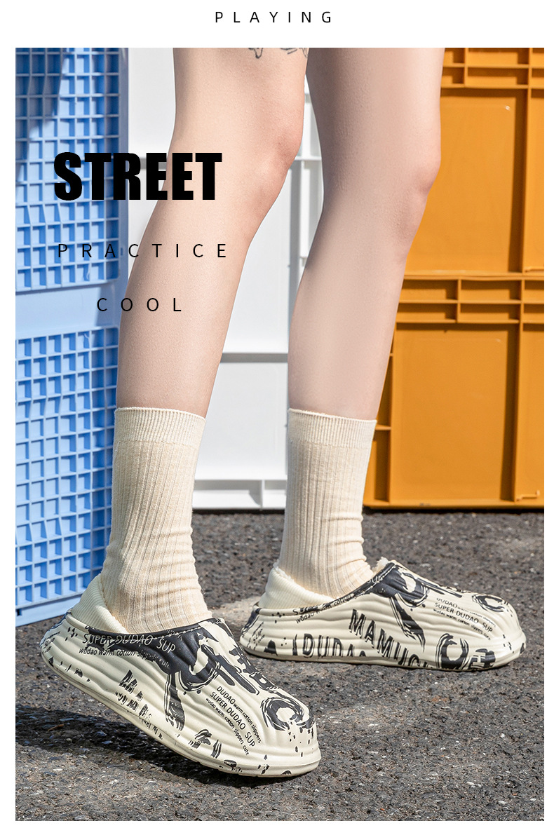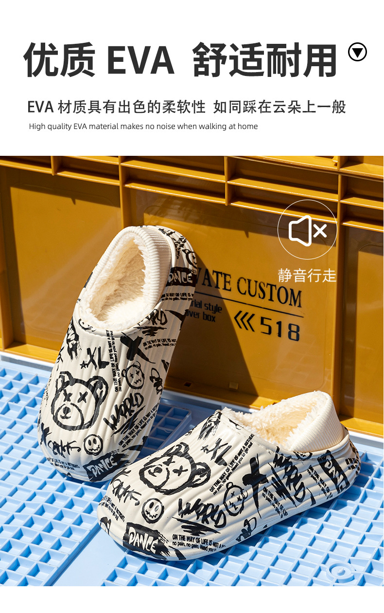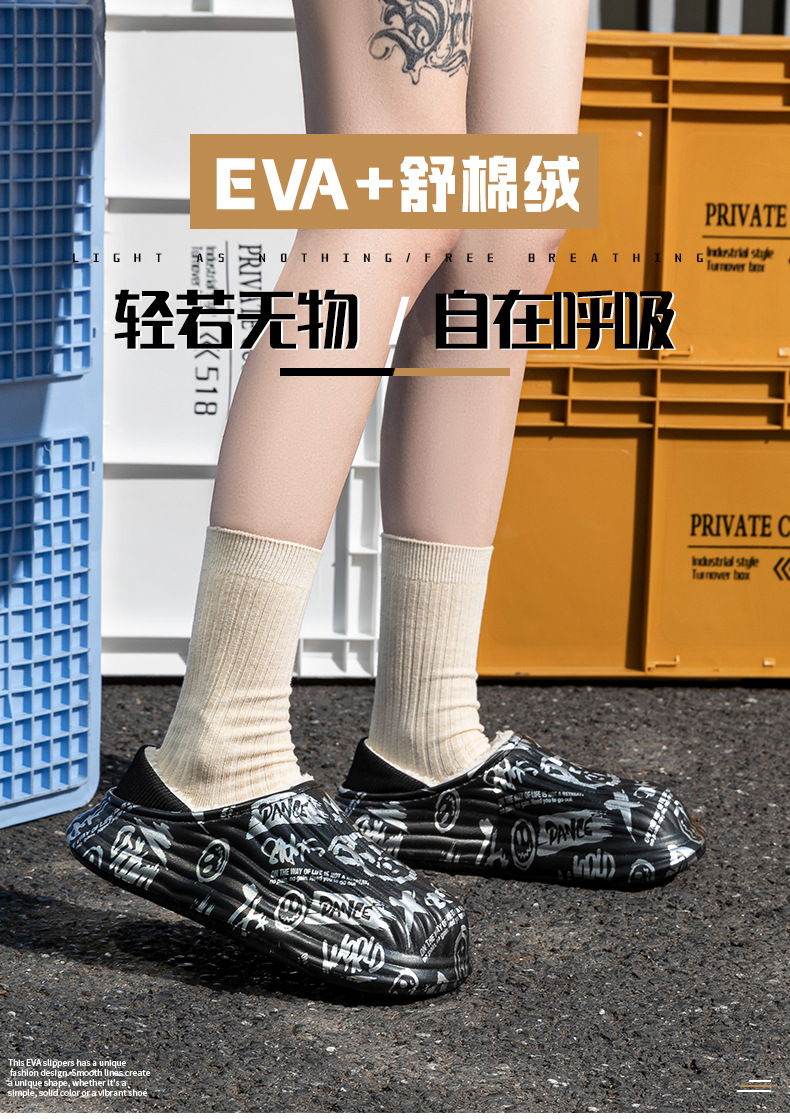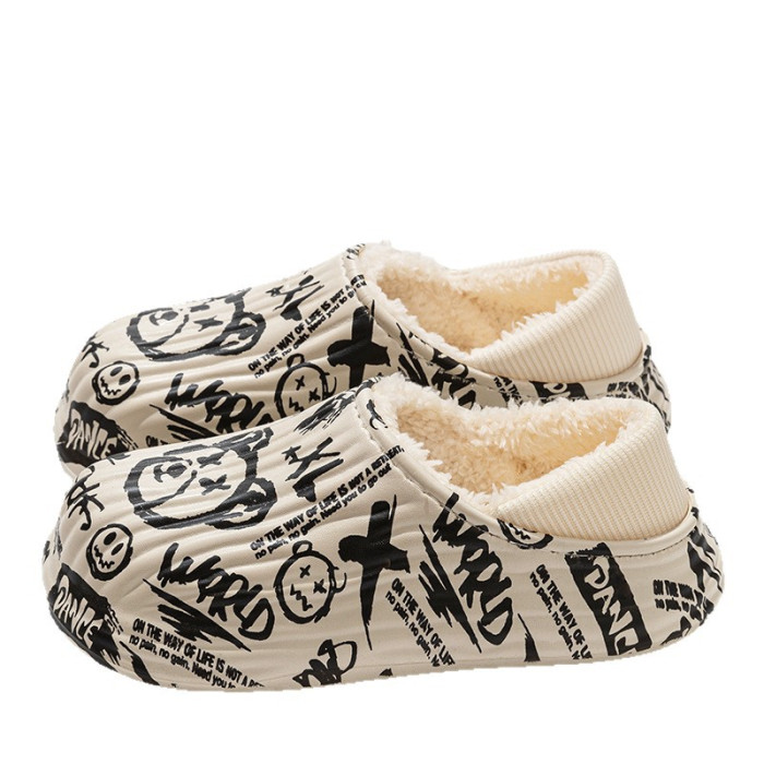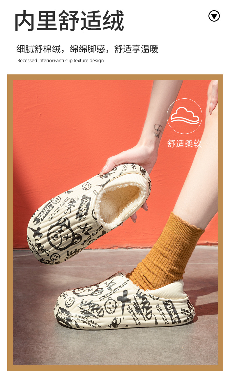 街頭潮男包頭防水保暖棉拖鞋保暖防滑家居棉鞋女冬季情侶棉拖鞋