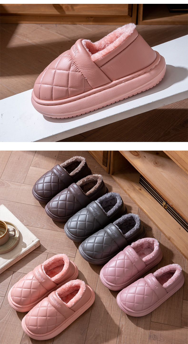 厚底防水棉拖鞋女冬季室內家居全包跟防滑保暖中老年人棉鞋男外穿