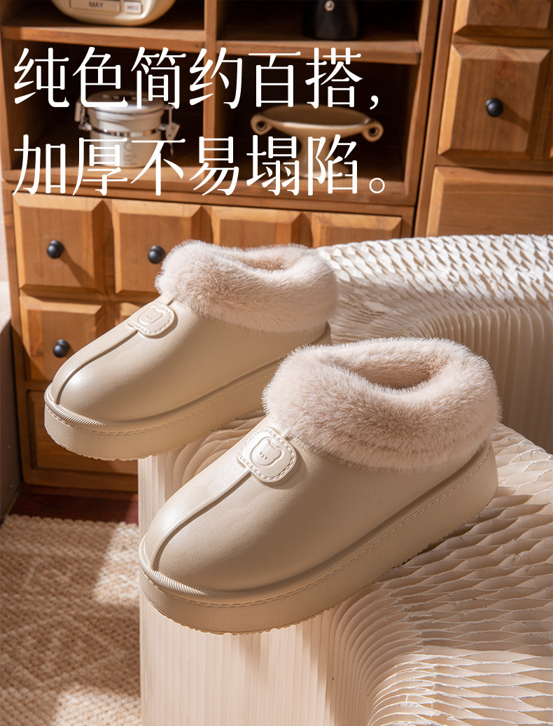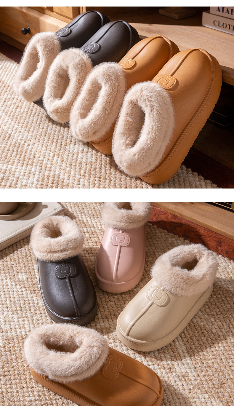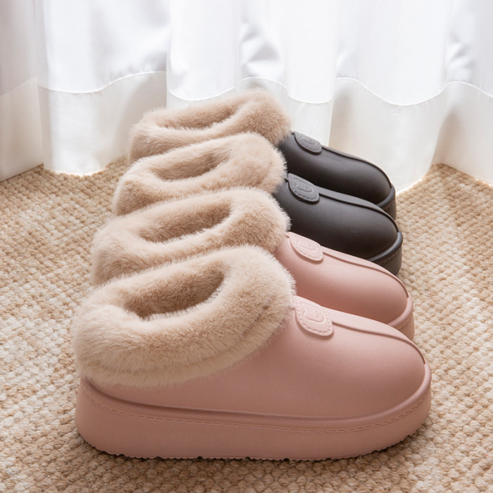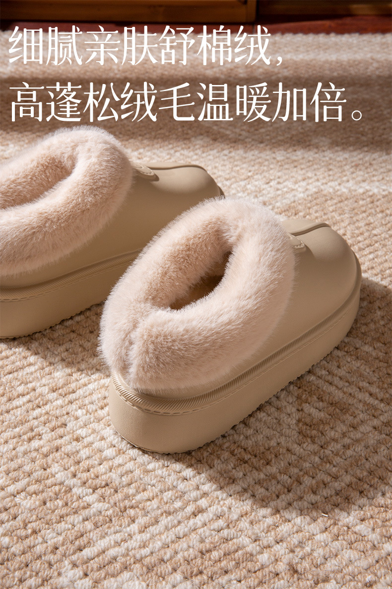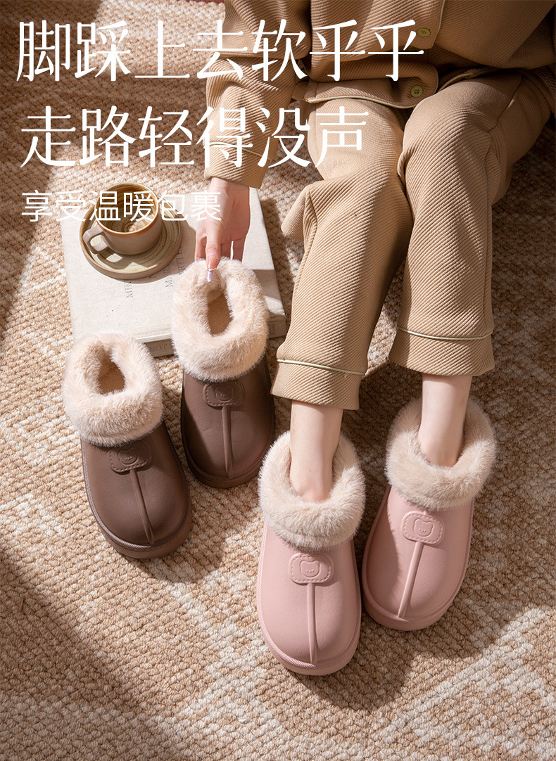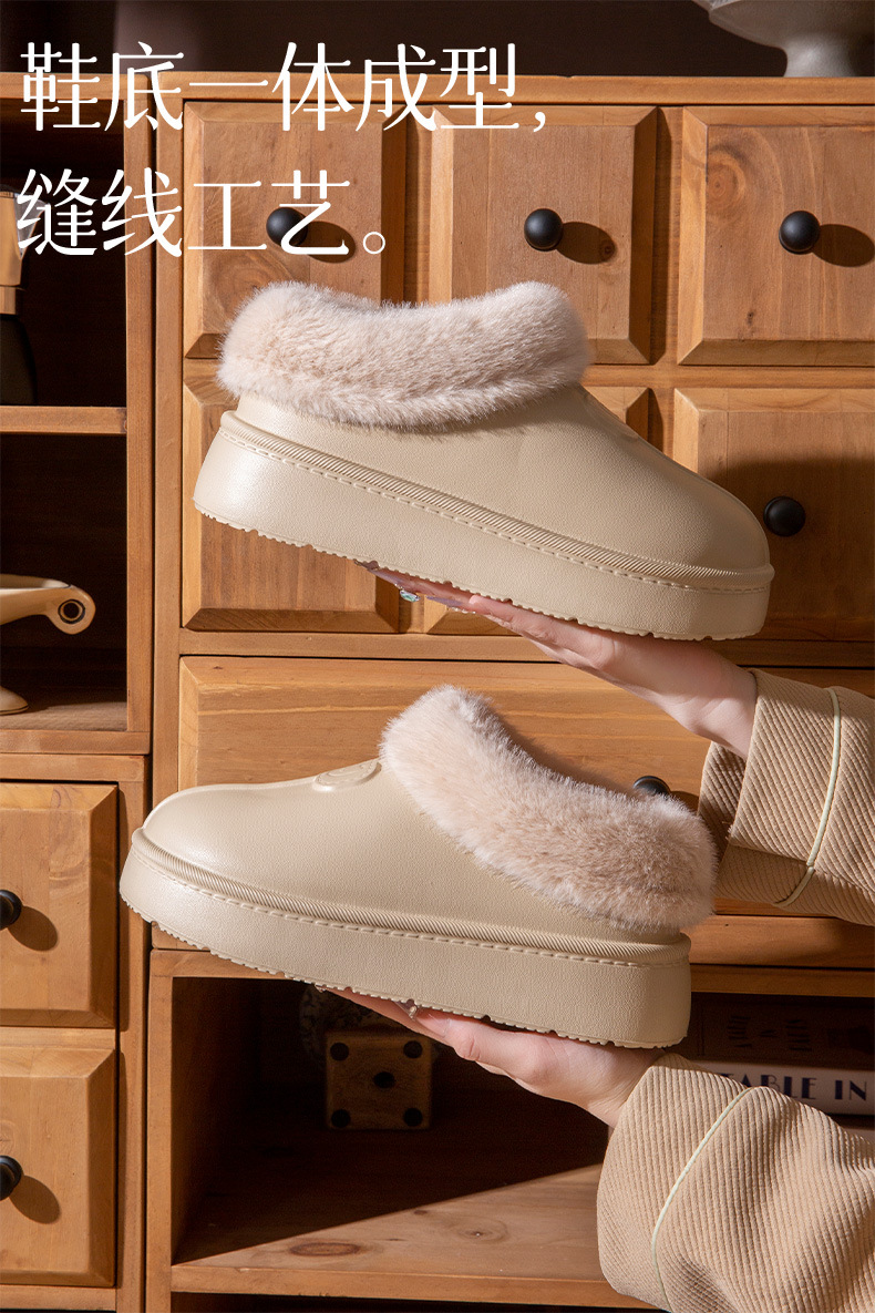 EVA防水加絨毛口棉拖鞋女冬季室內家居防滑月子加厚保暖外穿棉鞋