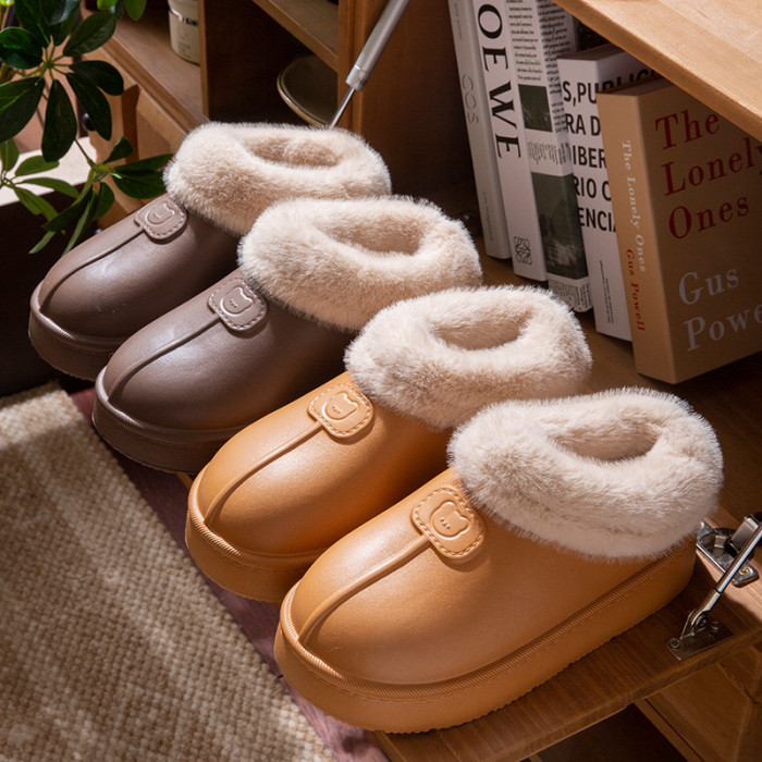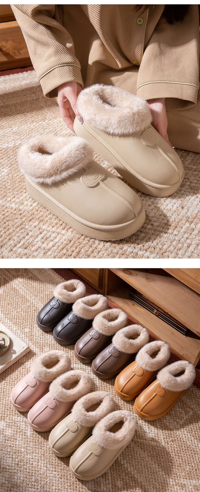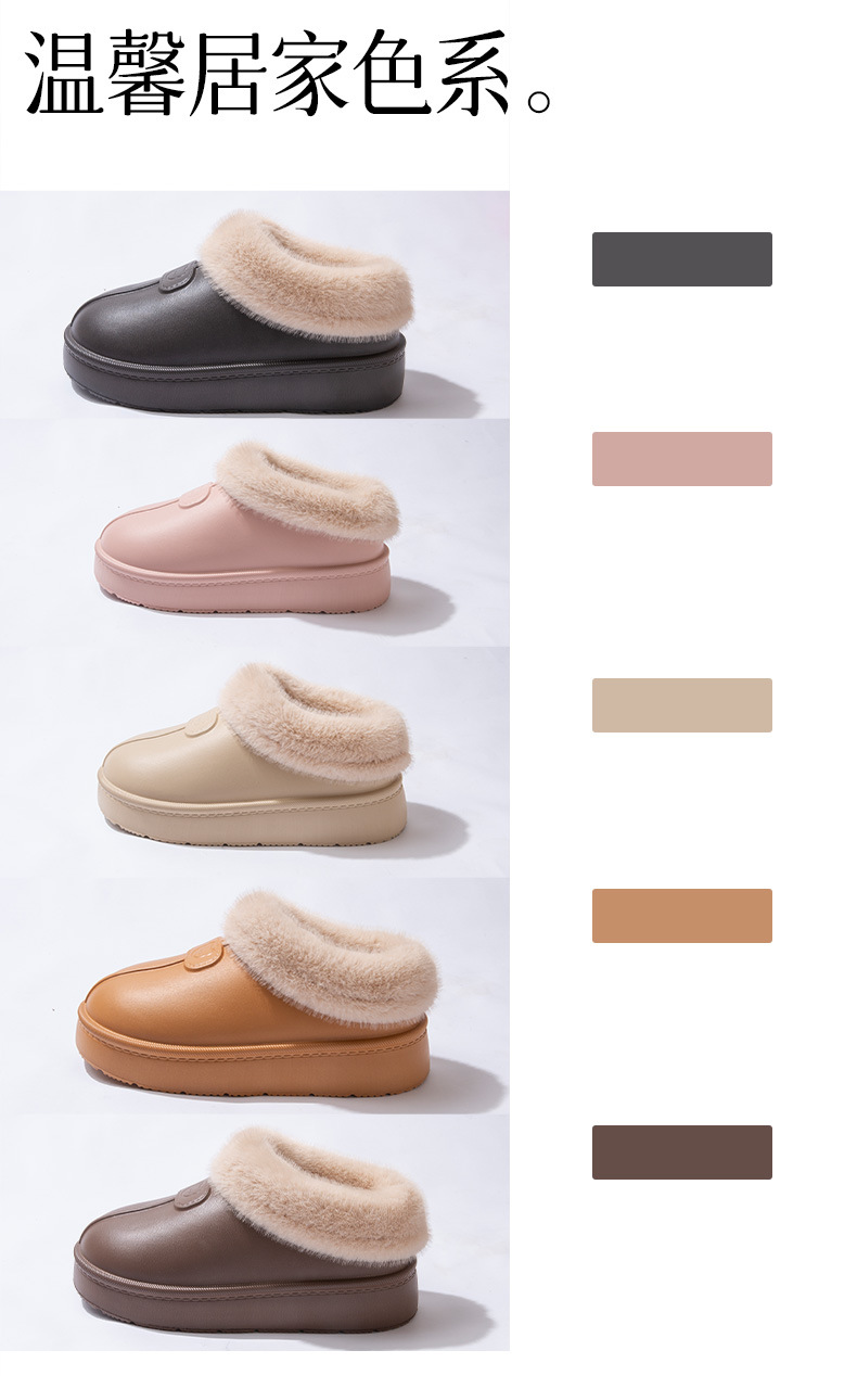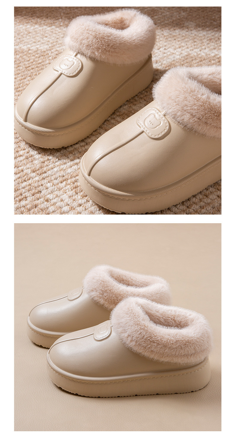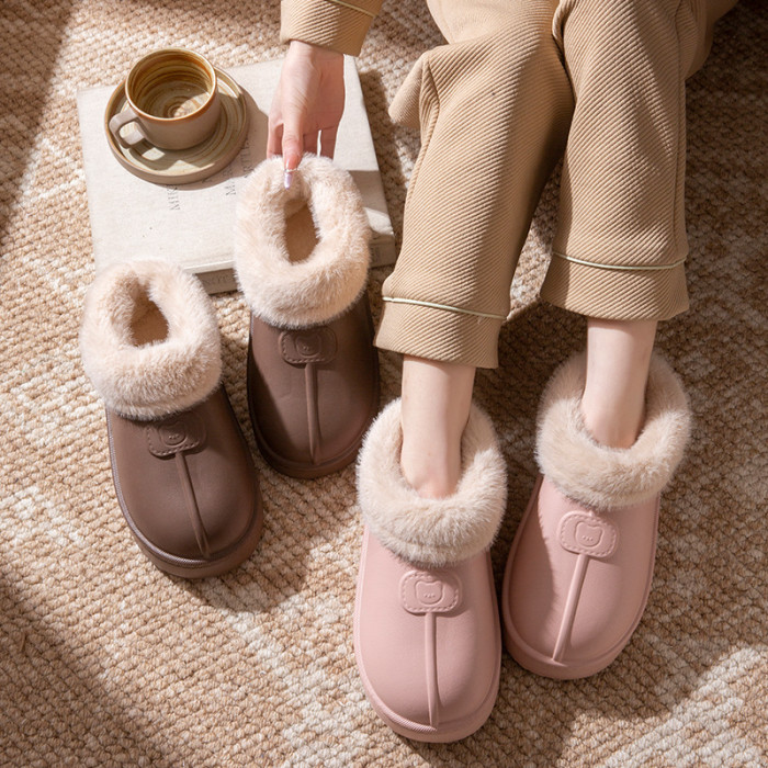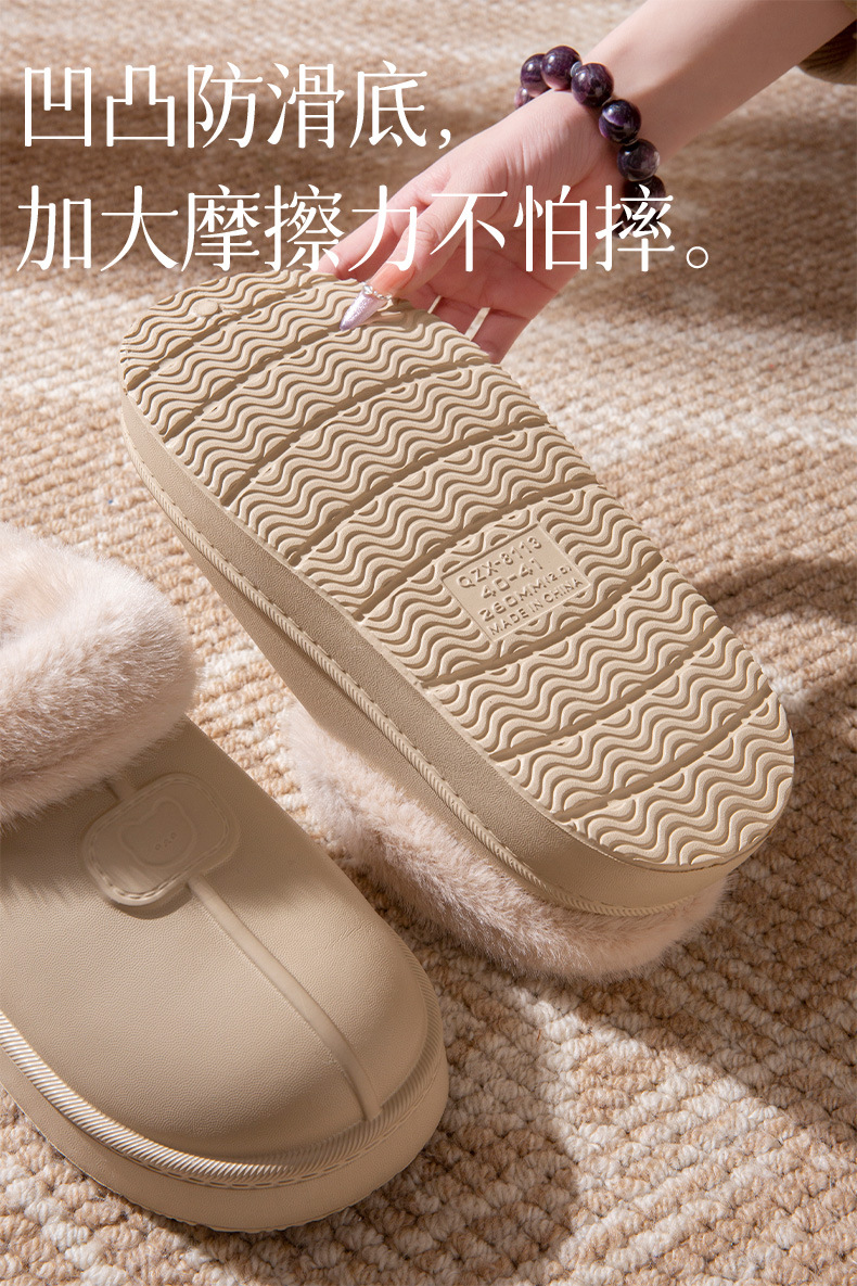 EVA防水加絨毛口棉拖鞋女冬季室內家居防滑月子加厚保暖外穿棉鞋