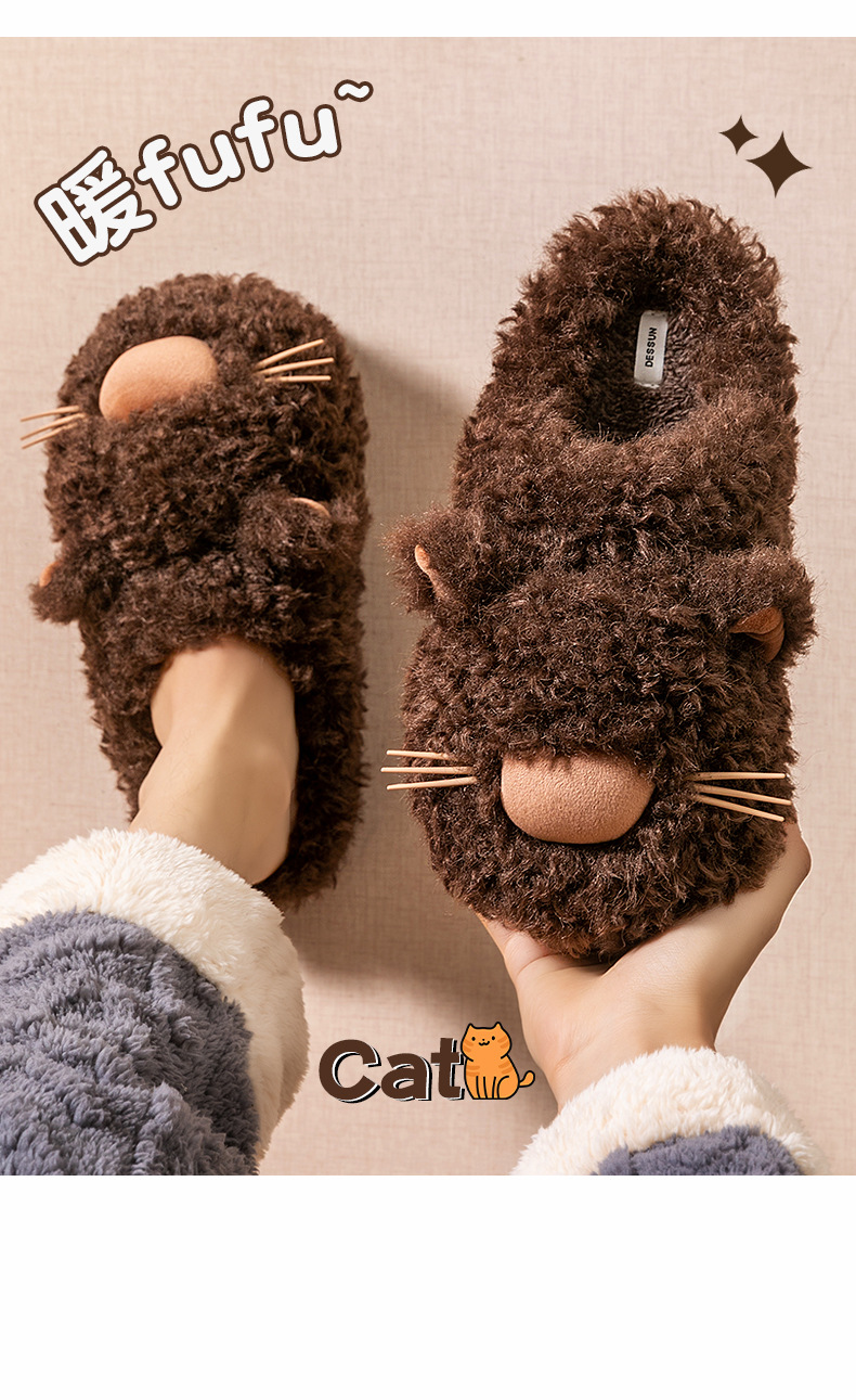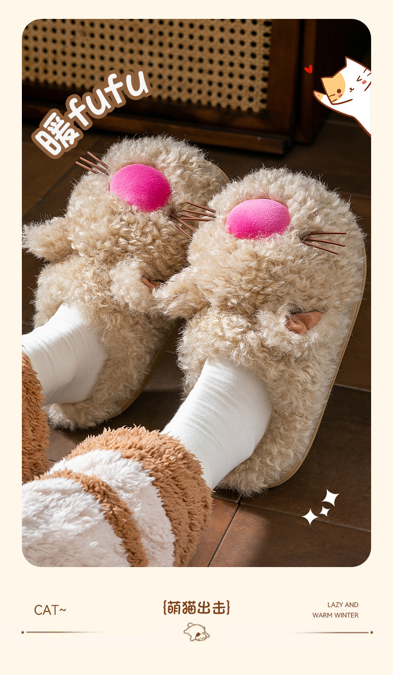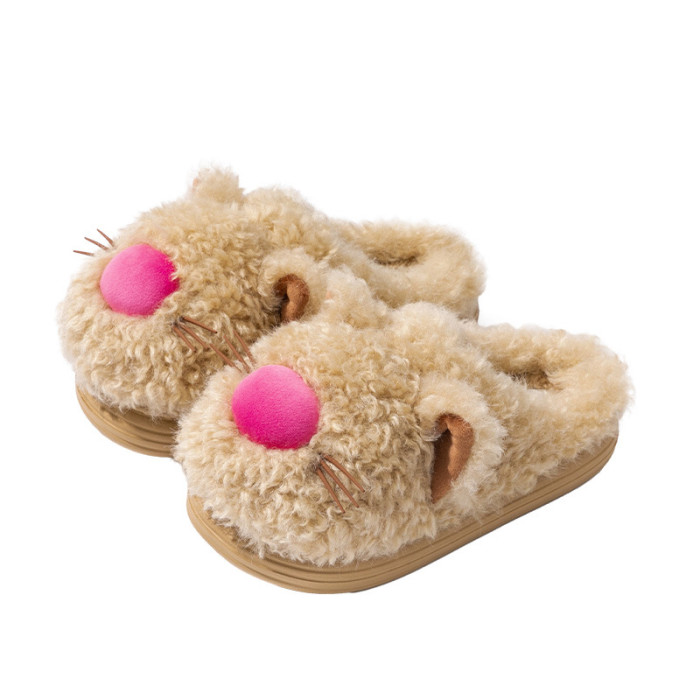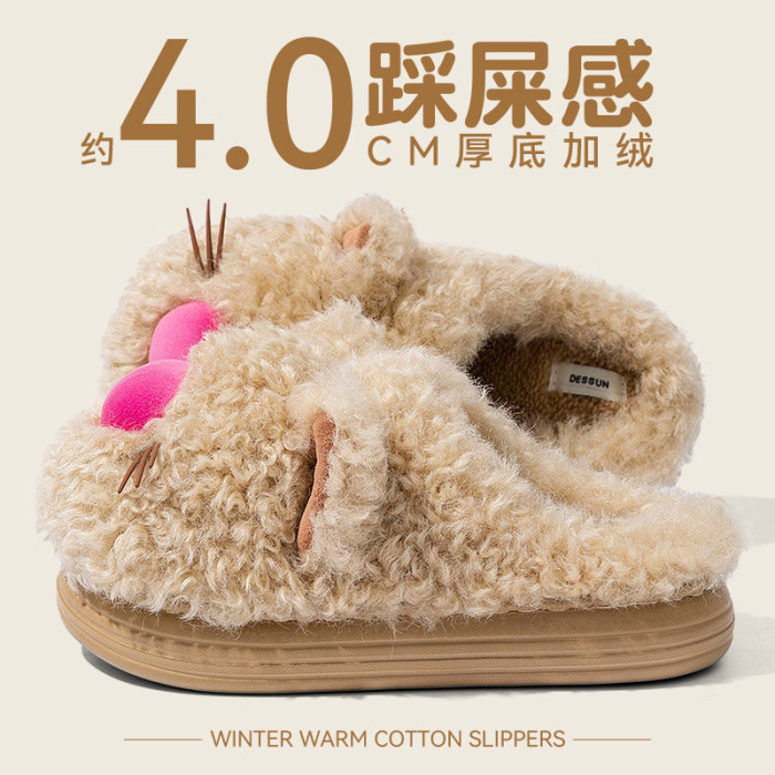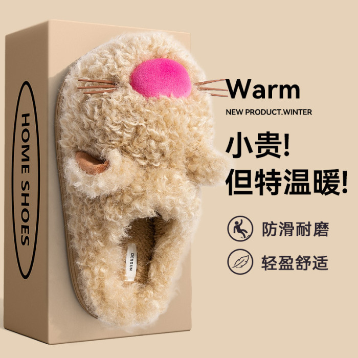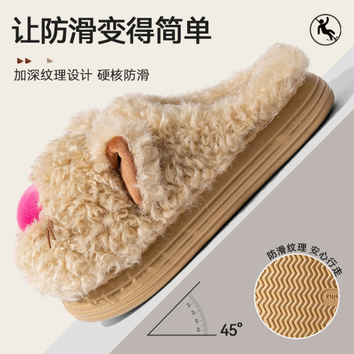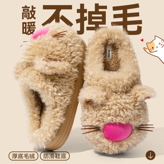 踩屎感毛毛拖鞋女款秋冬季2025新款卡通可愛保暖加絨棉拖鞋女外穿