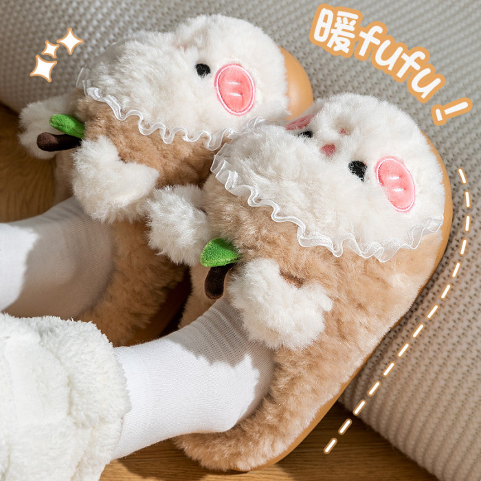 毛毛絨棉拖鞋女款秋冬季2025新款室內家居保暖防滑厚底踩屎感棉拖