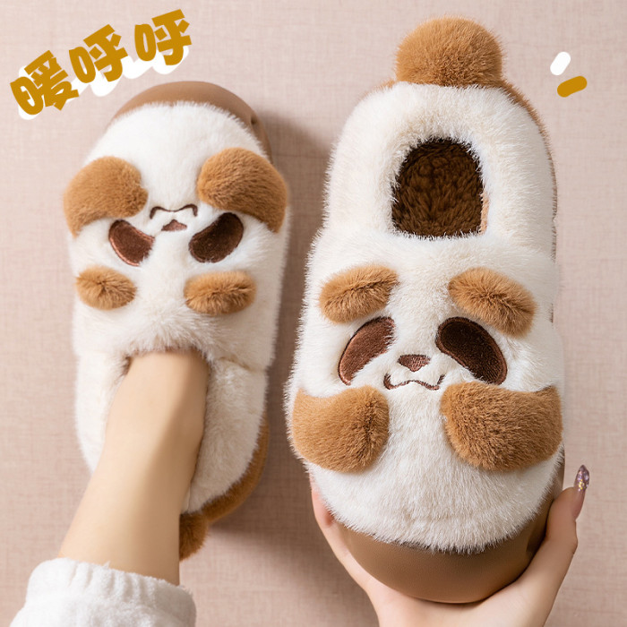 可愛卡通棉拖鞋女款秋冬季包跟秋冬季2025新款網紅熊貓保暖毛毛鞋