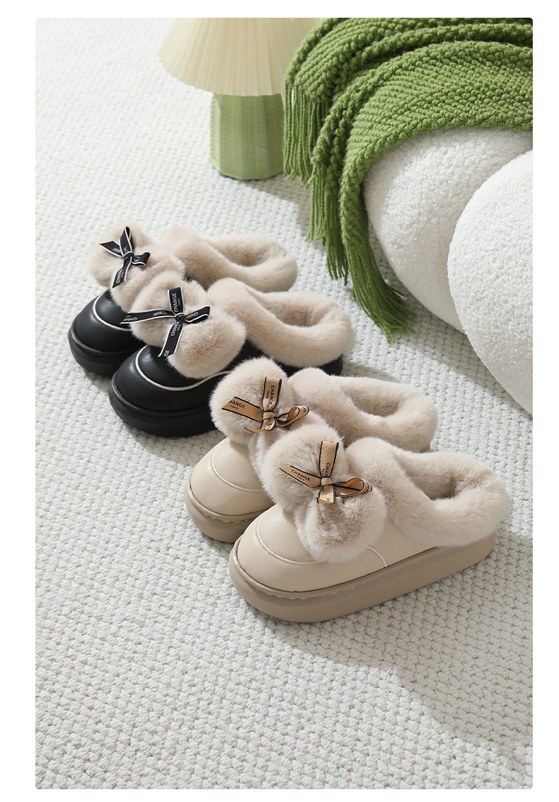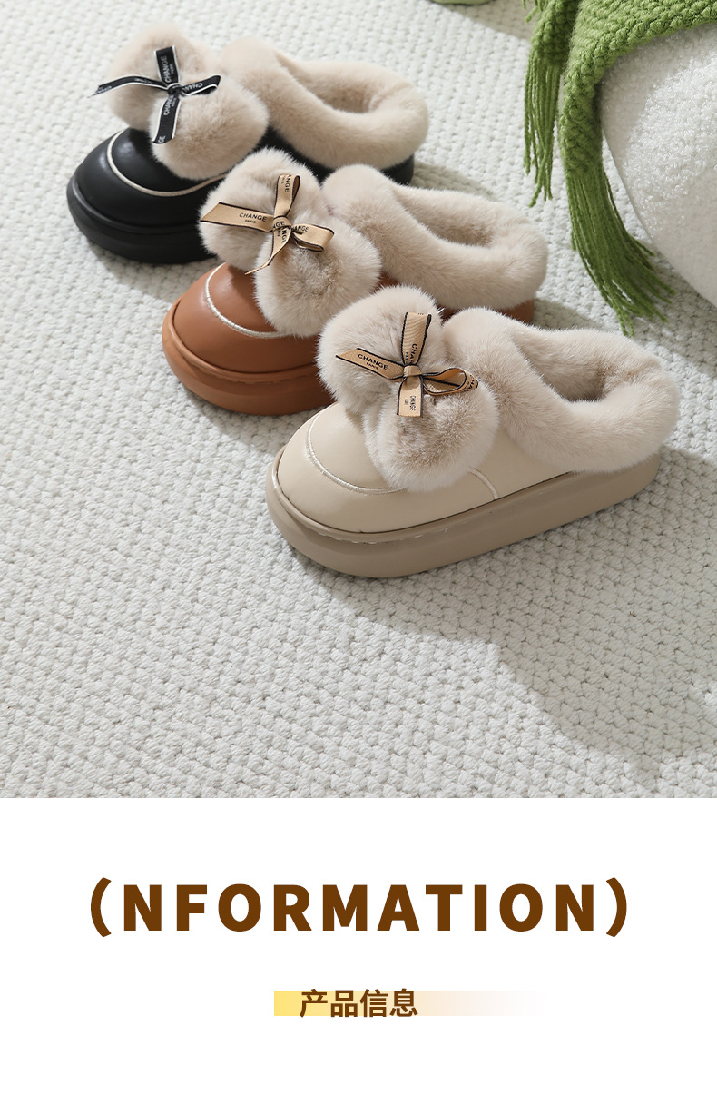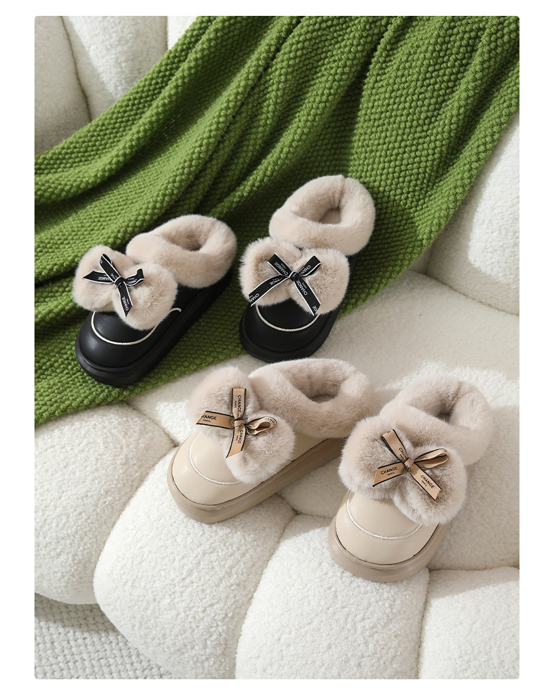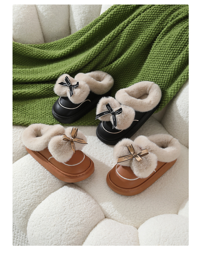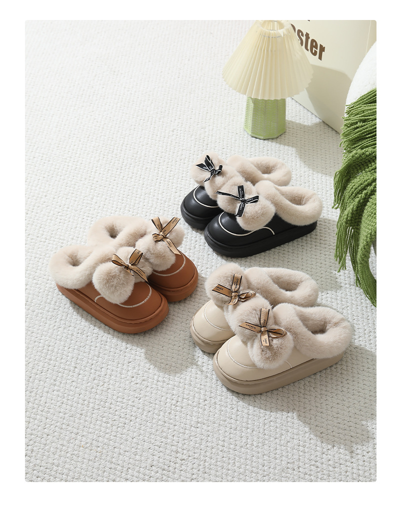 2025防水蝴蝶結新款棉拖鞋男女時尚情侶厚底加絨保暖秋冬季地板