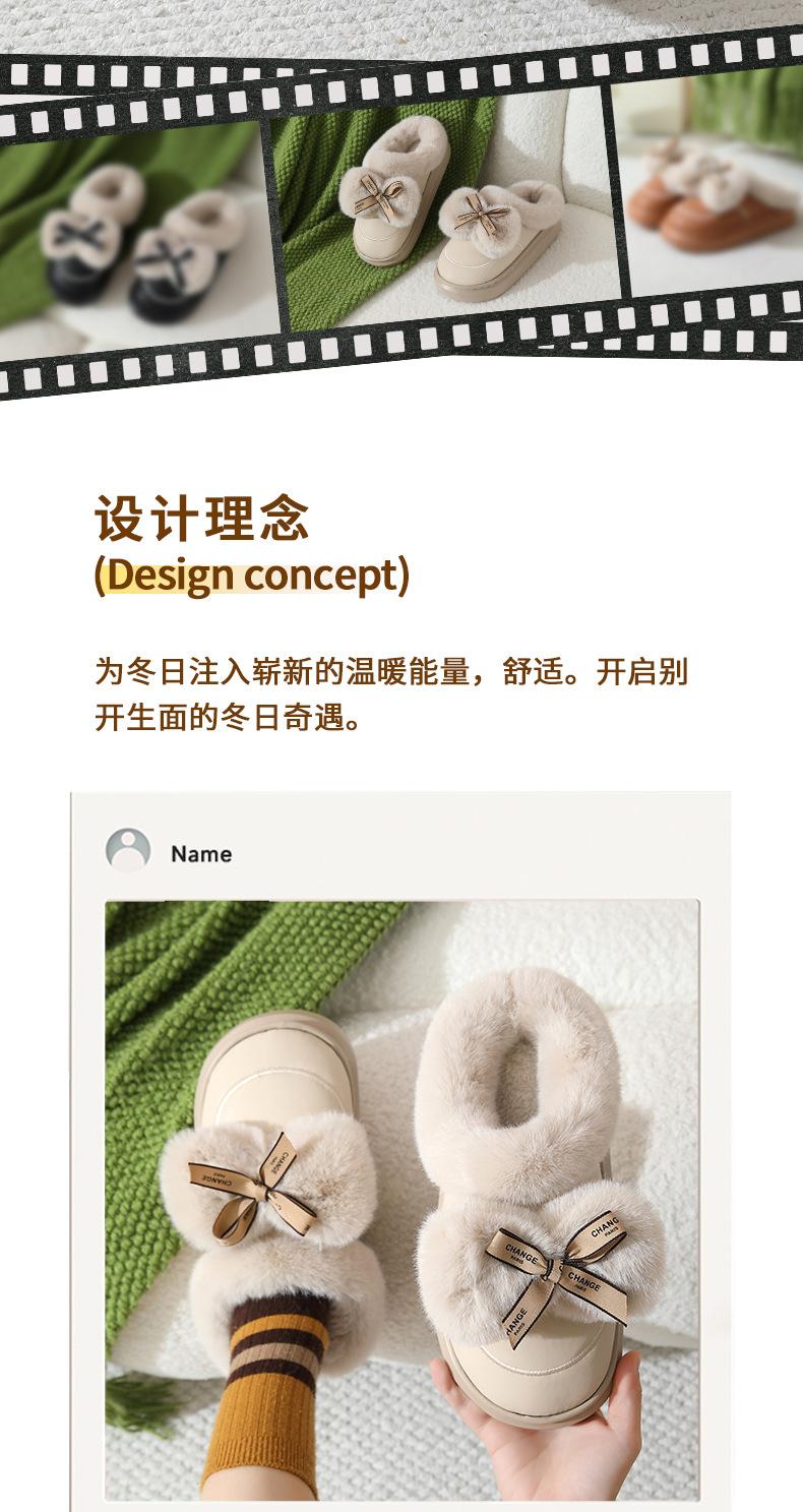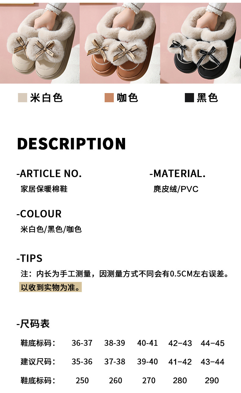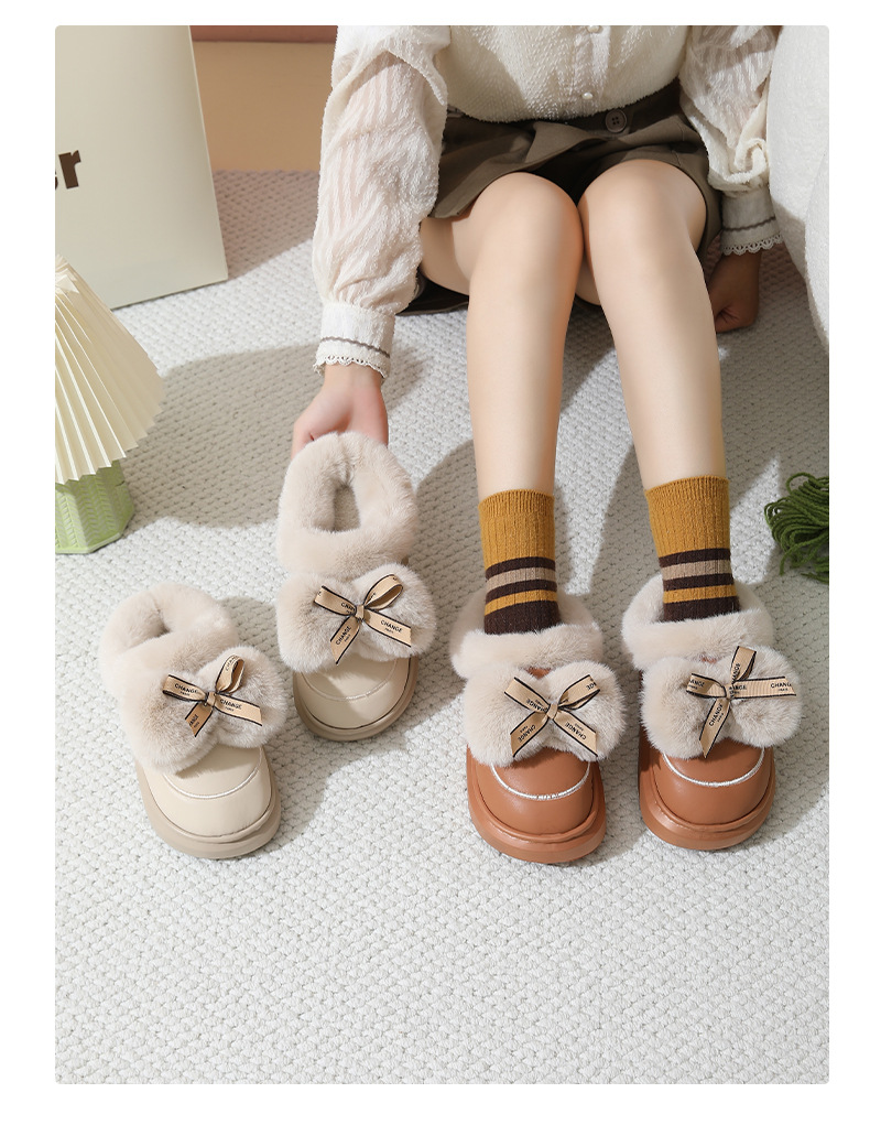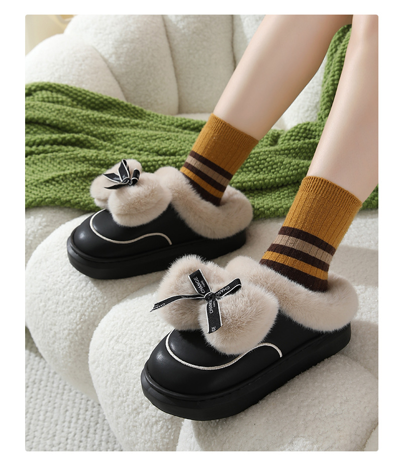 2025防水蝴蝶結新款棉拖鞋男女時尚情侶厚底加絨保暖秋冬季地板