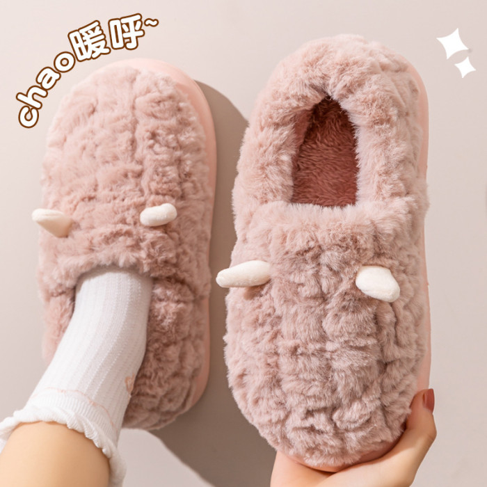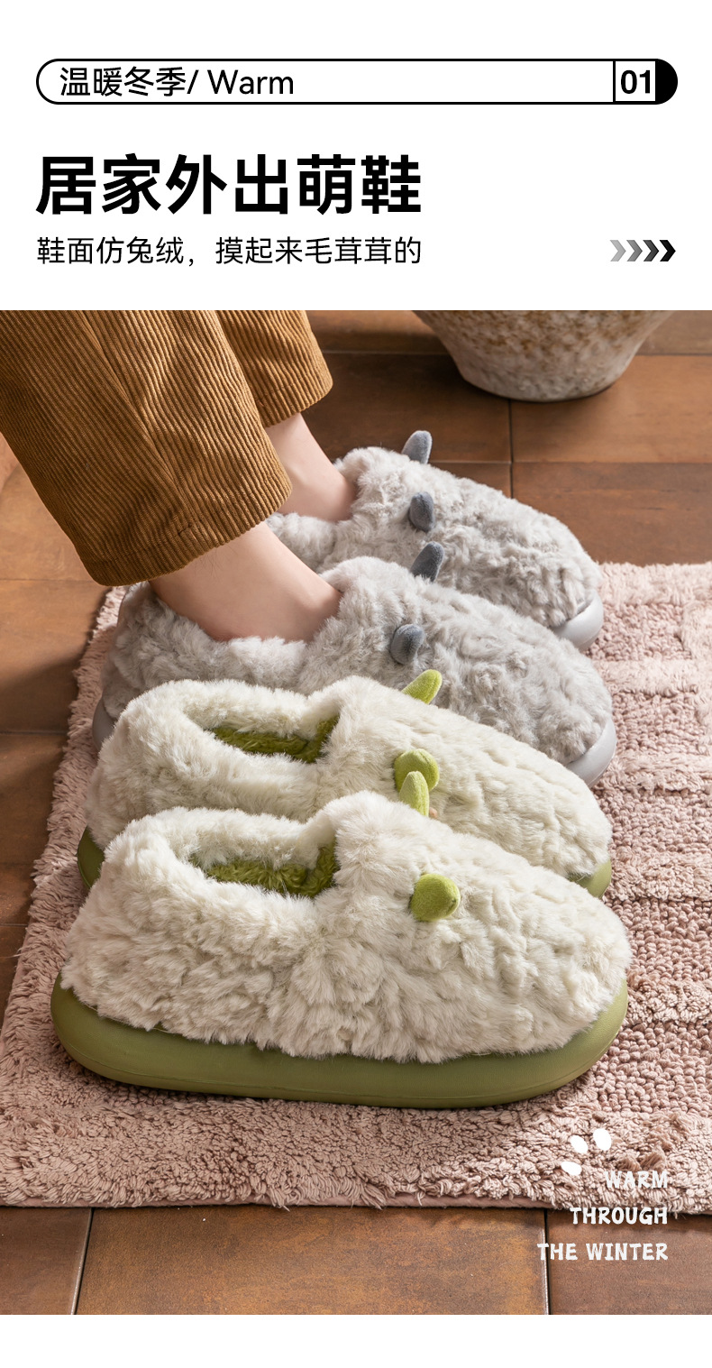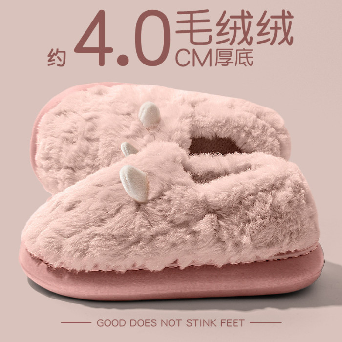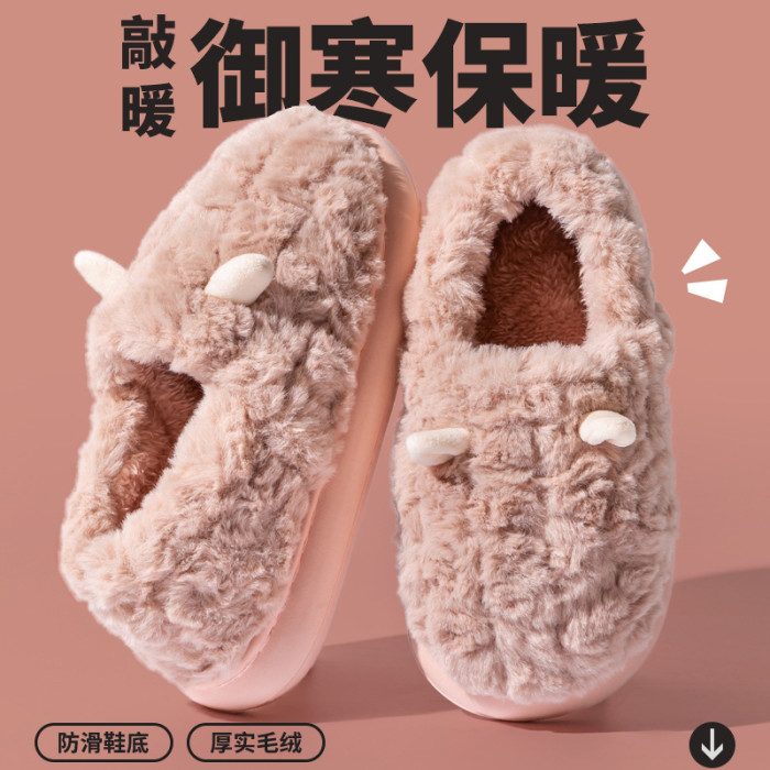 踩屎感棉拖鞋女款2025新款冬季室內家居厚底保暖毛絨包跟月子棉鞋