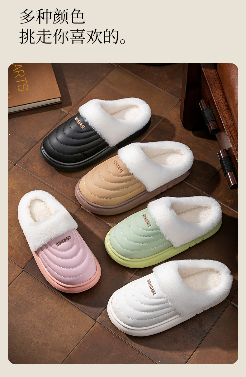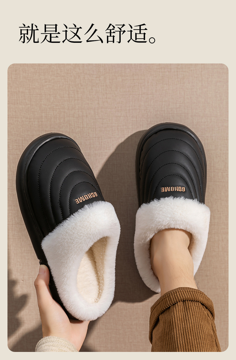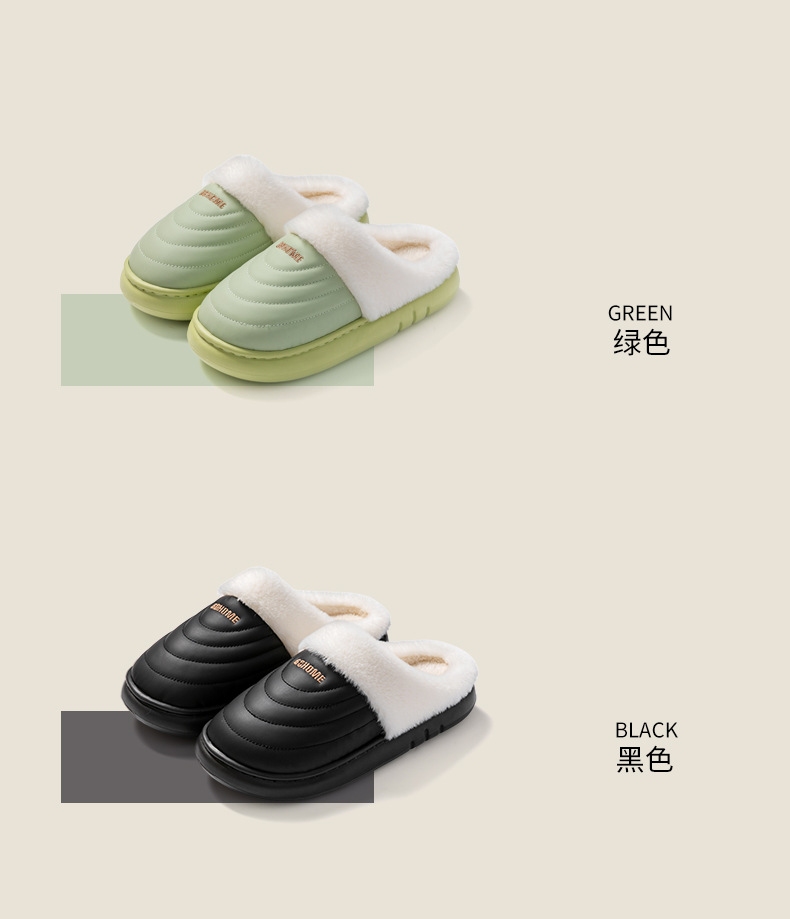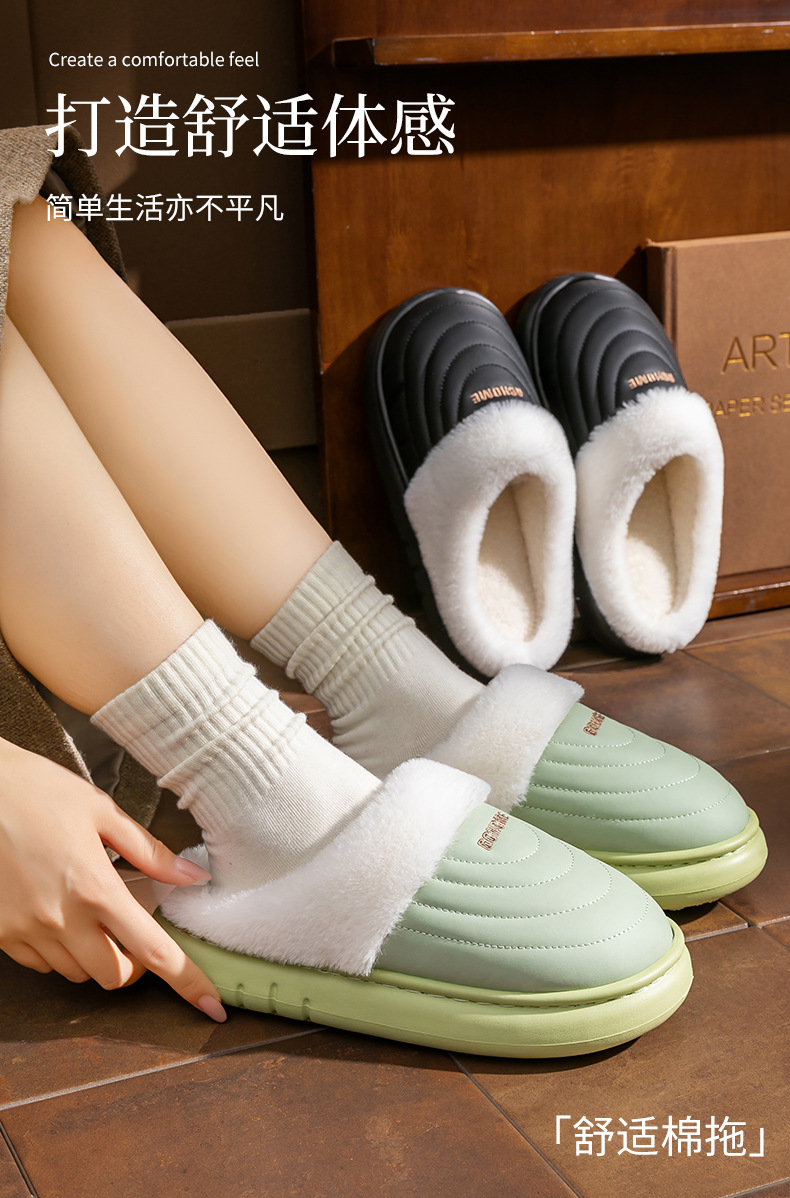 大碼冬季條紋毛絨保暖防水棉拖鞋禦寒情侶防滑耐磨輕盈不磨腳棉鞋
