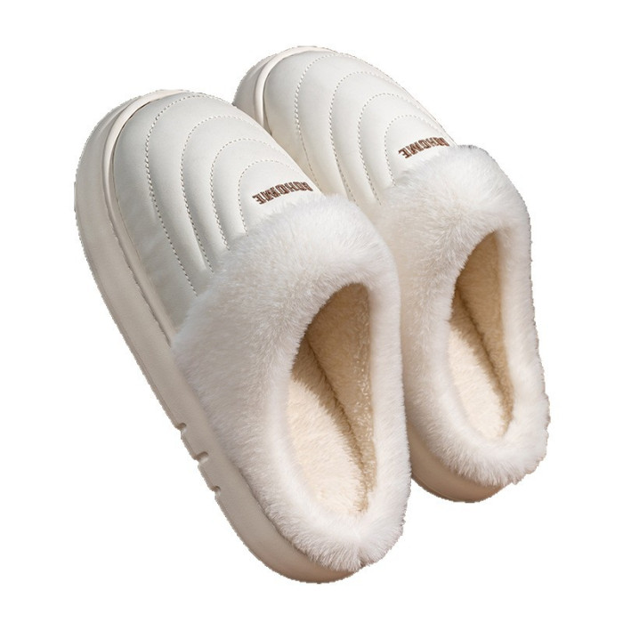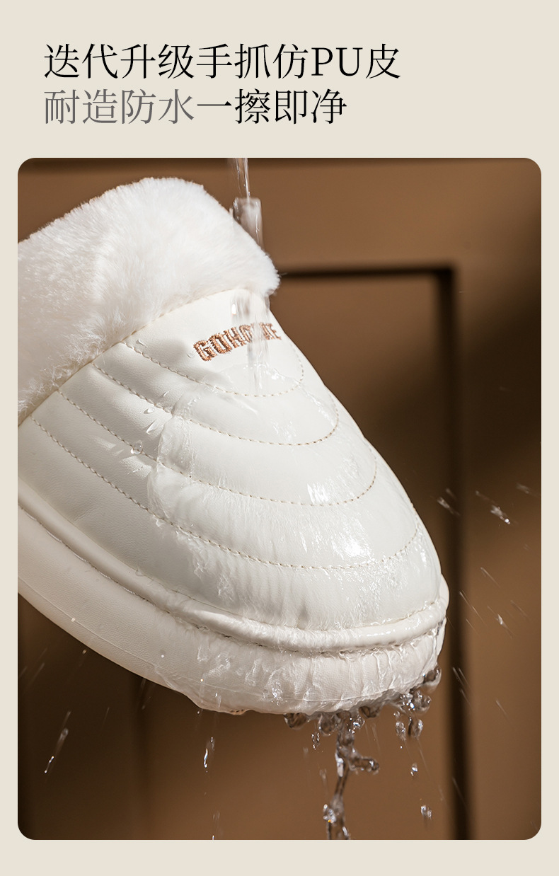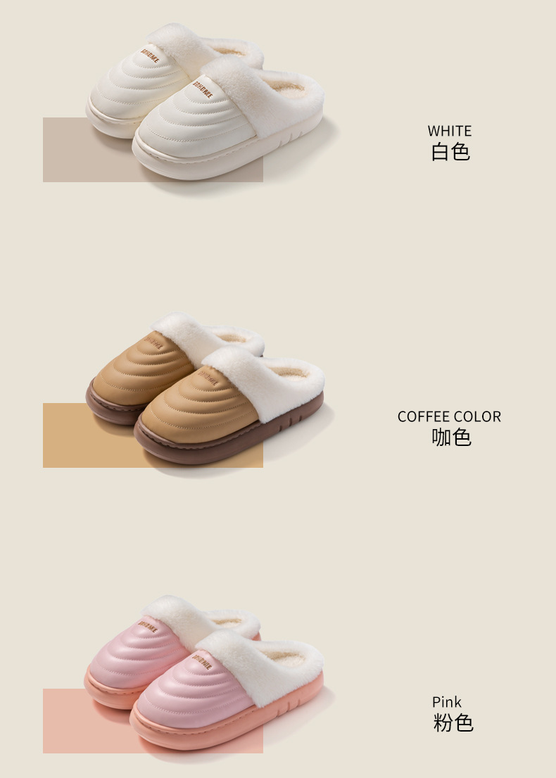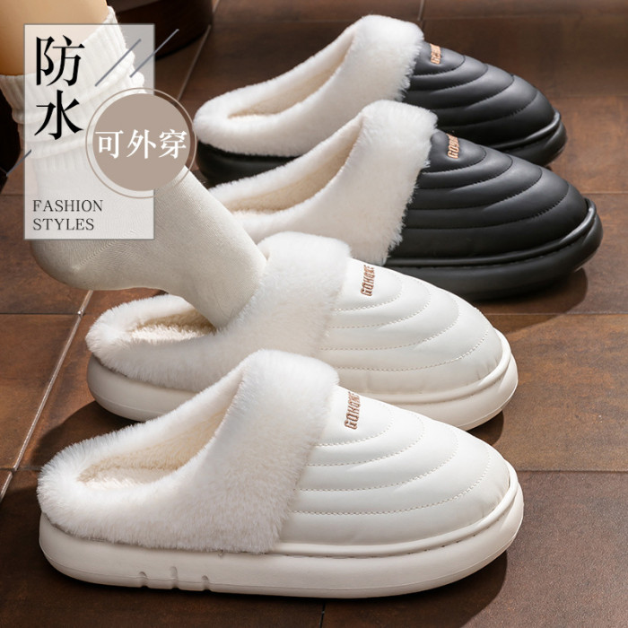 大碼冬季條紋毛絨保暖防水棉拖鞋禦寒情侶防滑耐磨輕盈不磨腳棉鞋