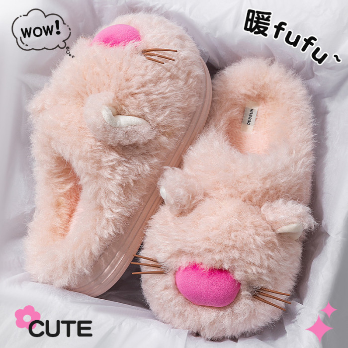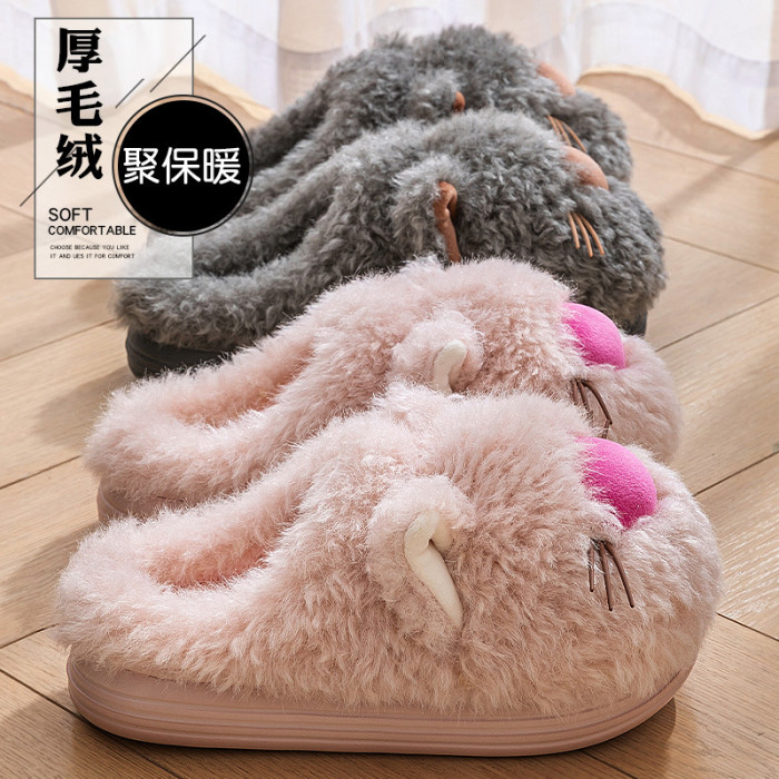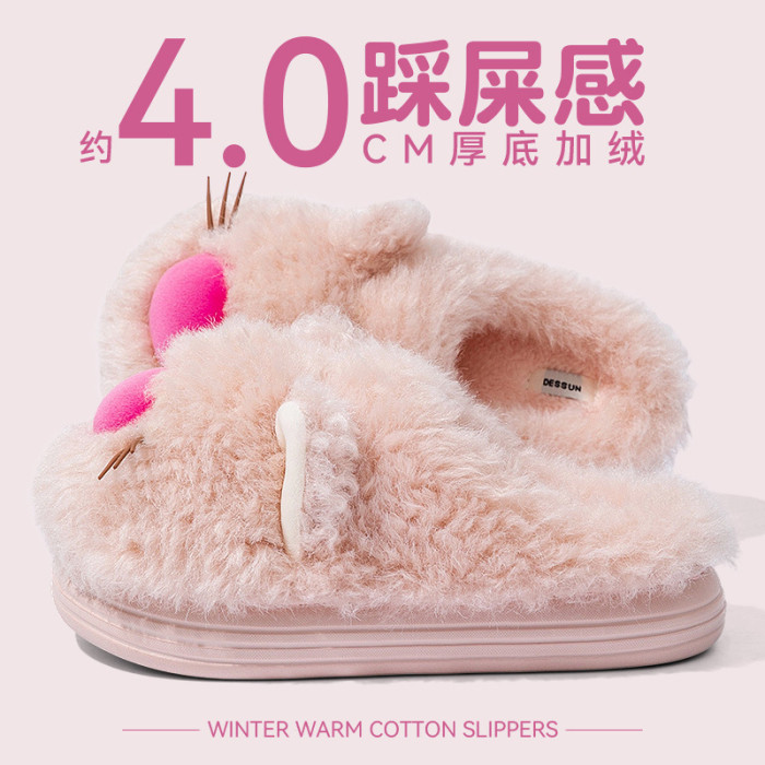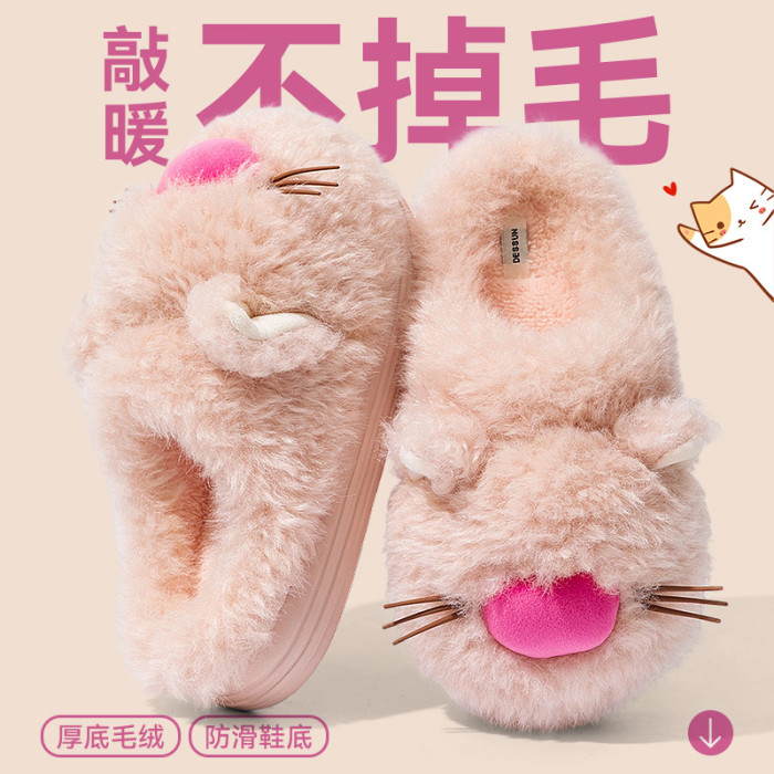 踩屎感棉拖鞋女款秋冬季2025新款厚底卡通可愛保暖加絨毛毛鞋