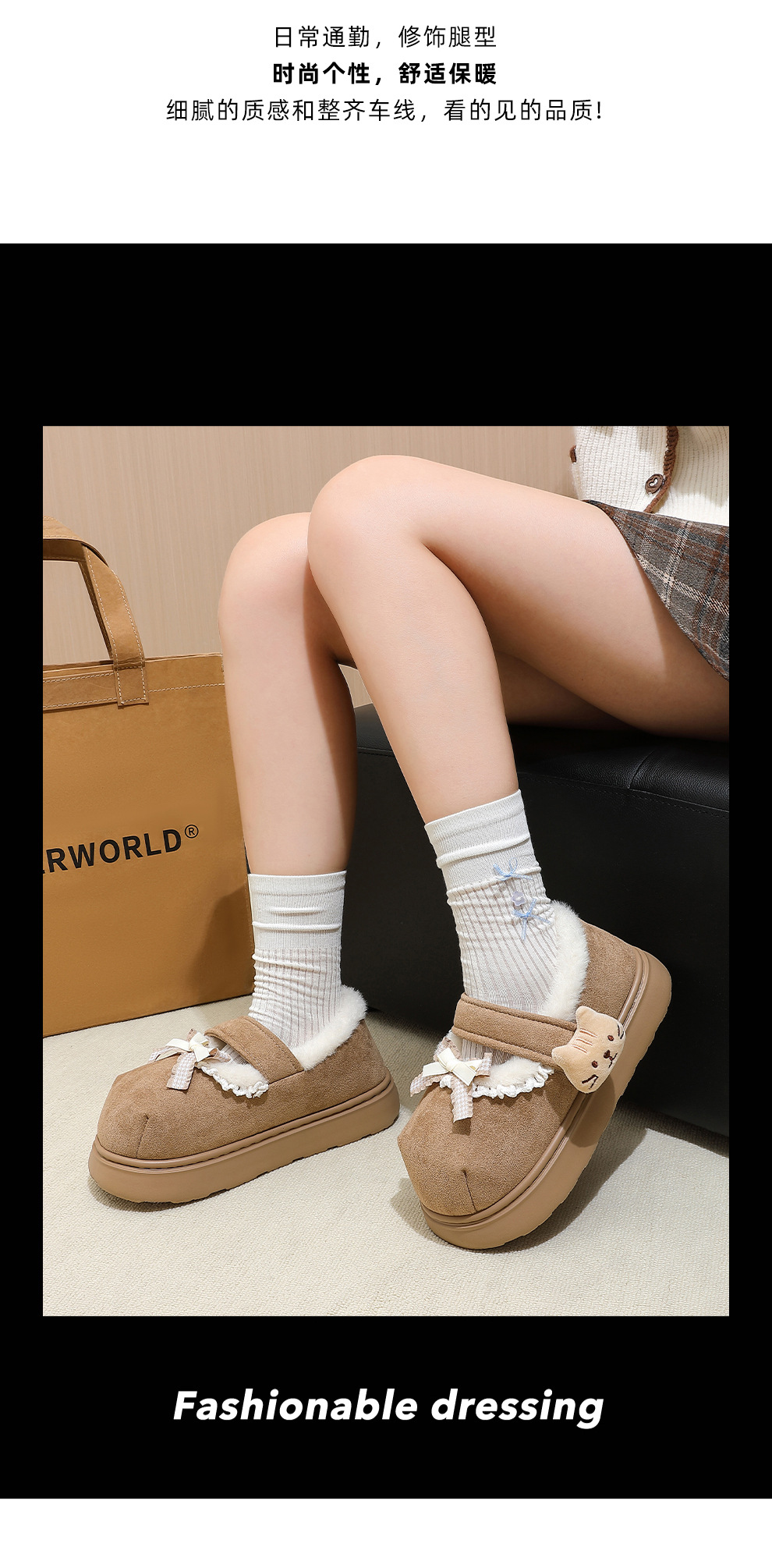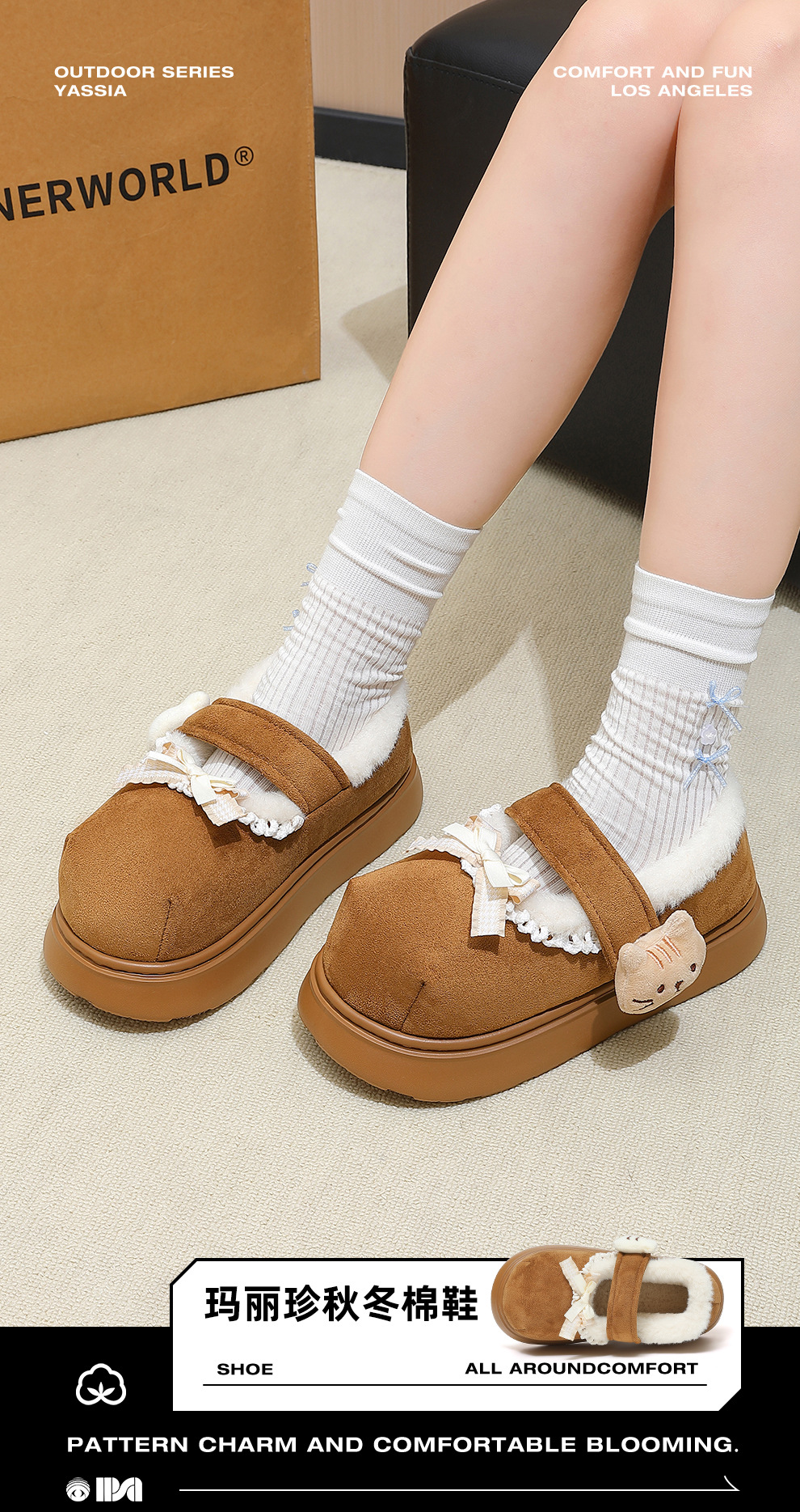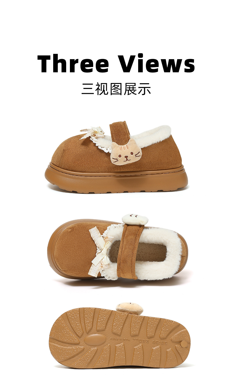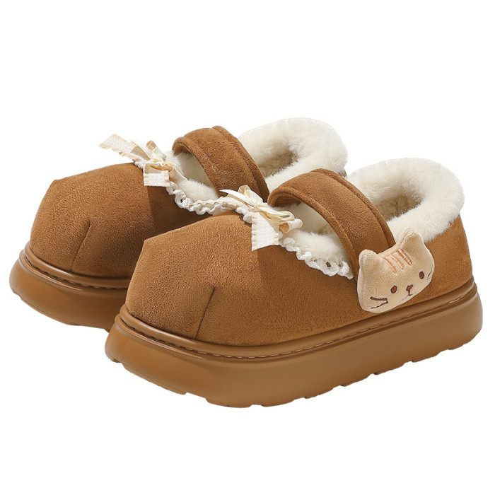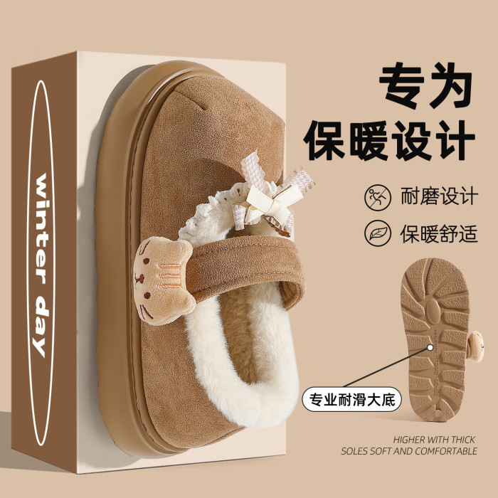 棉鞋女士秋冬外穿2025新款室內可愛厚底保暖毛毛絨包跟棉鞋室外