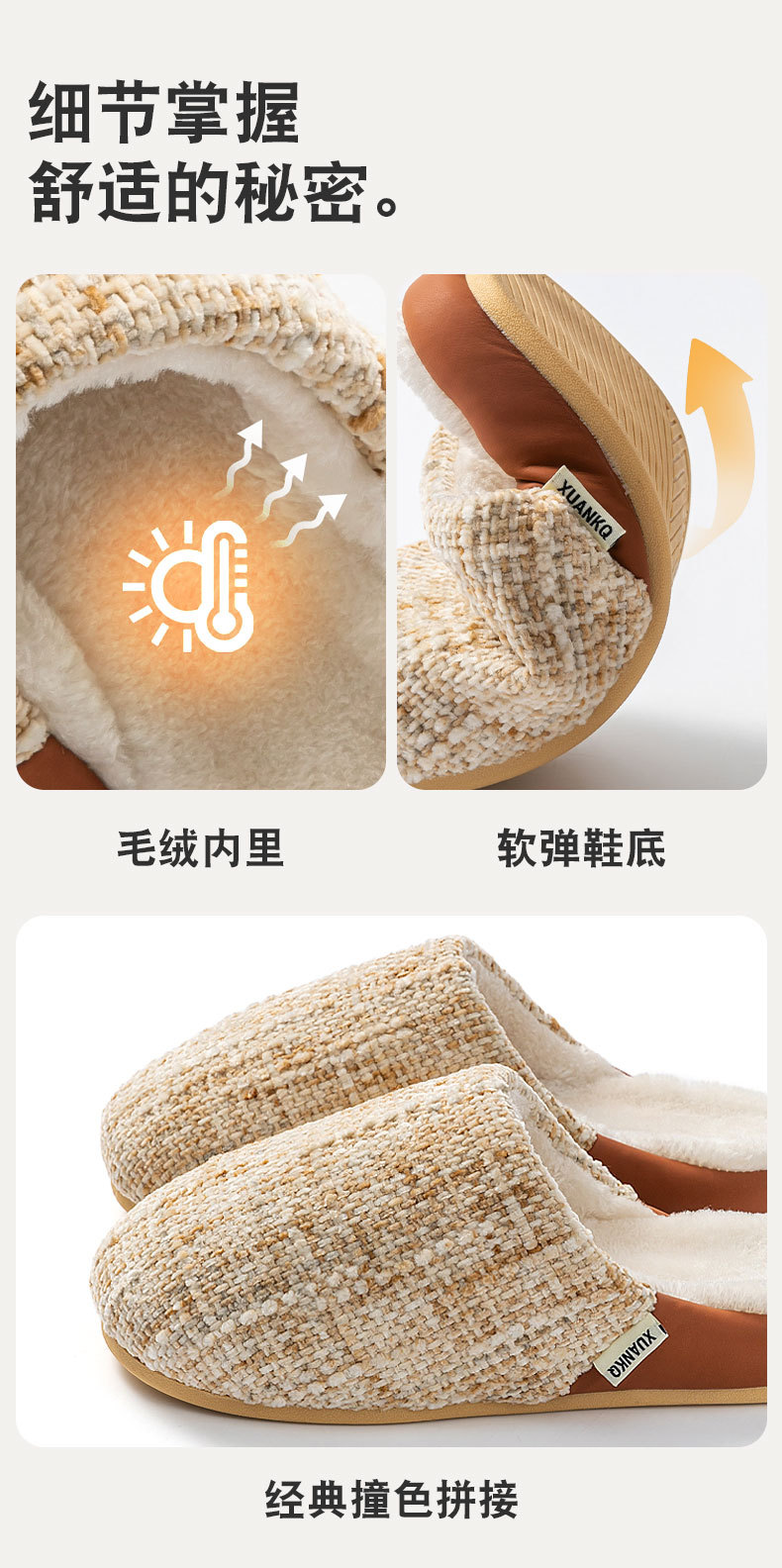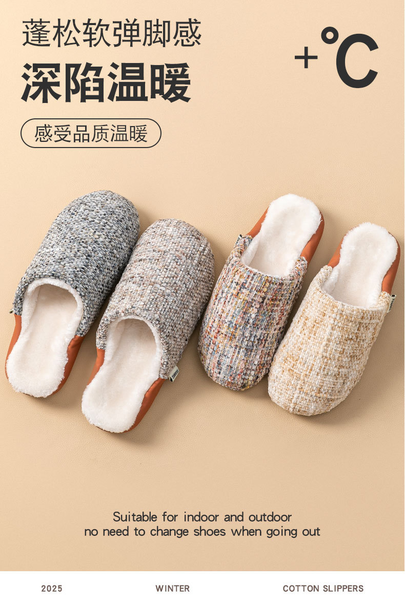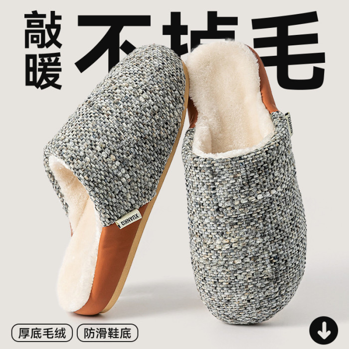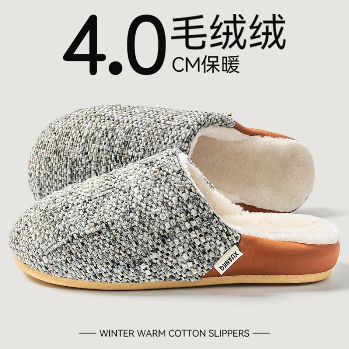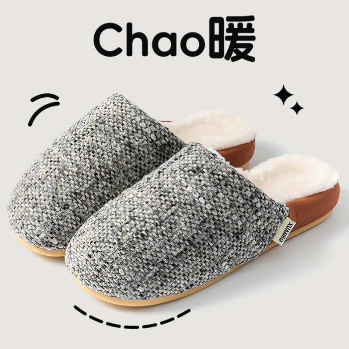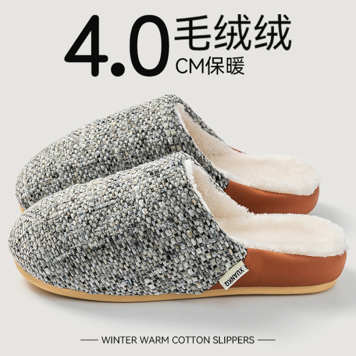 加絨棉拖鞋男款2025新款秋冬季室內家居保暖防滑厚底防臭棉拖男士