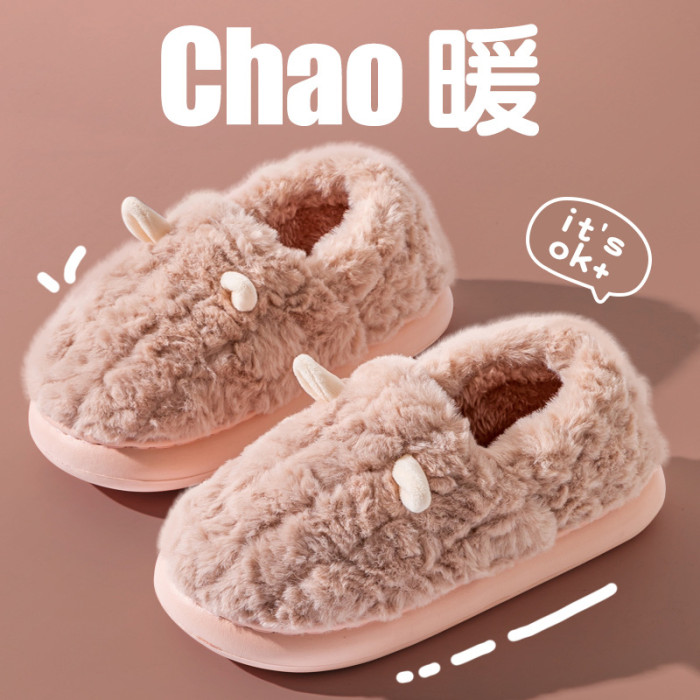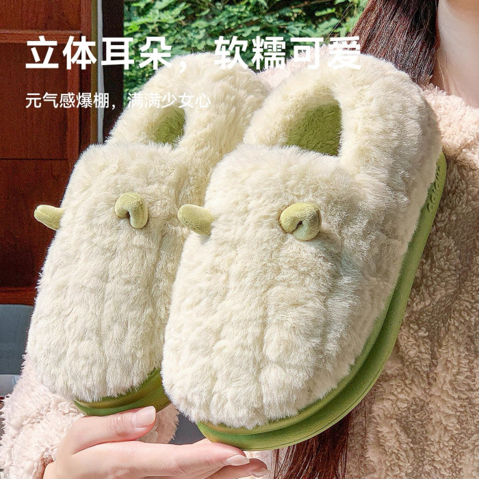 2025小耳朵新款棉拖鞋男女時尚情侶厚底加絨保暖秋冬季地板拖