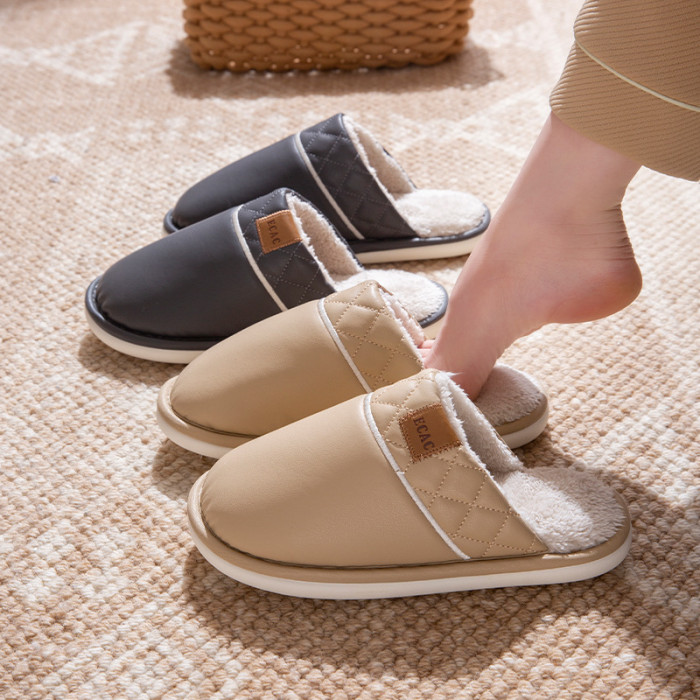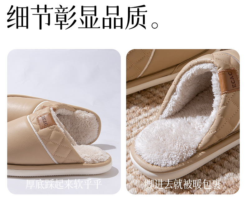 情侶家用防水棉拖鞋男士秋冬季新款室內居家加絨保暖地板毛拖鞋女