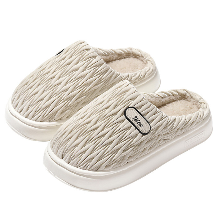 pu防水棉拖鞋女秋冬新款情侶家居室內厚實毛絨保暖軟底棉拖男