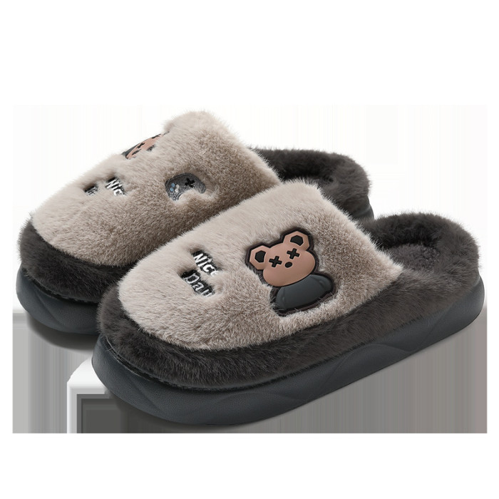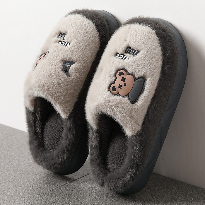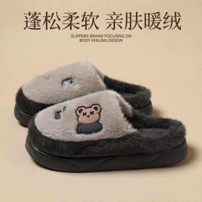 小熊棉拖鞋男秋冬季新款居家室內保暖加絨防滑耐磨軟底棉拖女