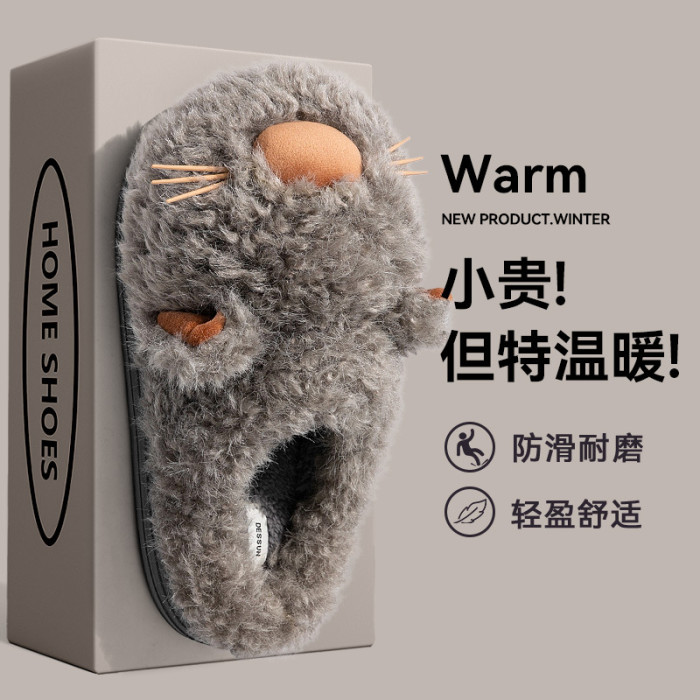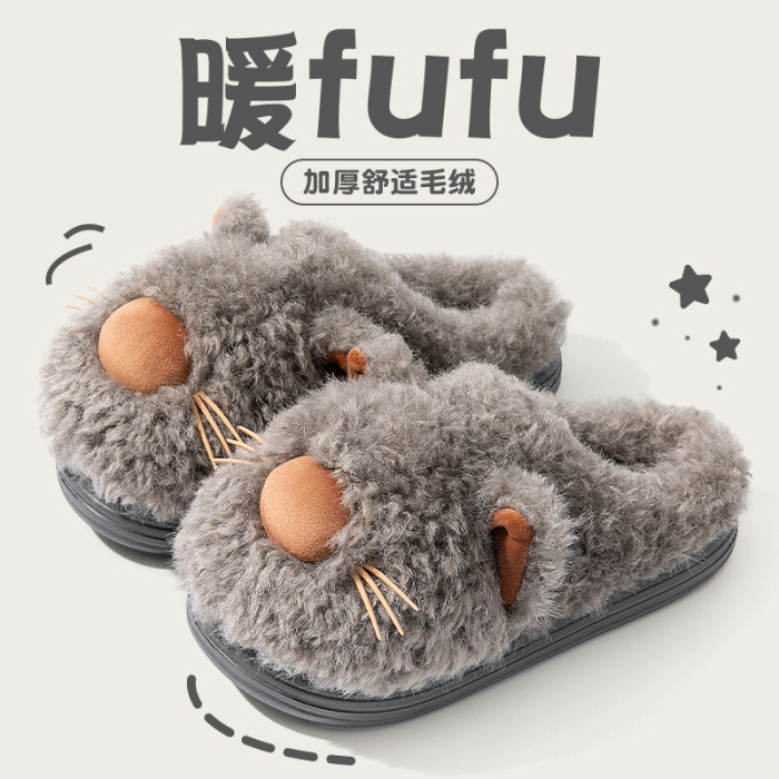卡通棉拖鞋男款秋冬季2025新款防滑厚底保暖加絨加厚毛拖鞋男士冬