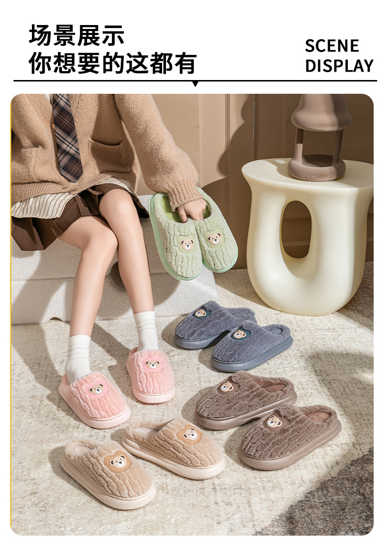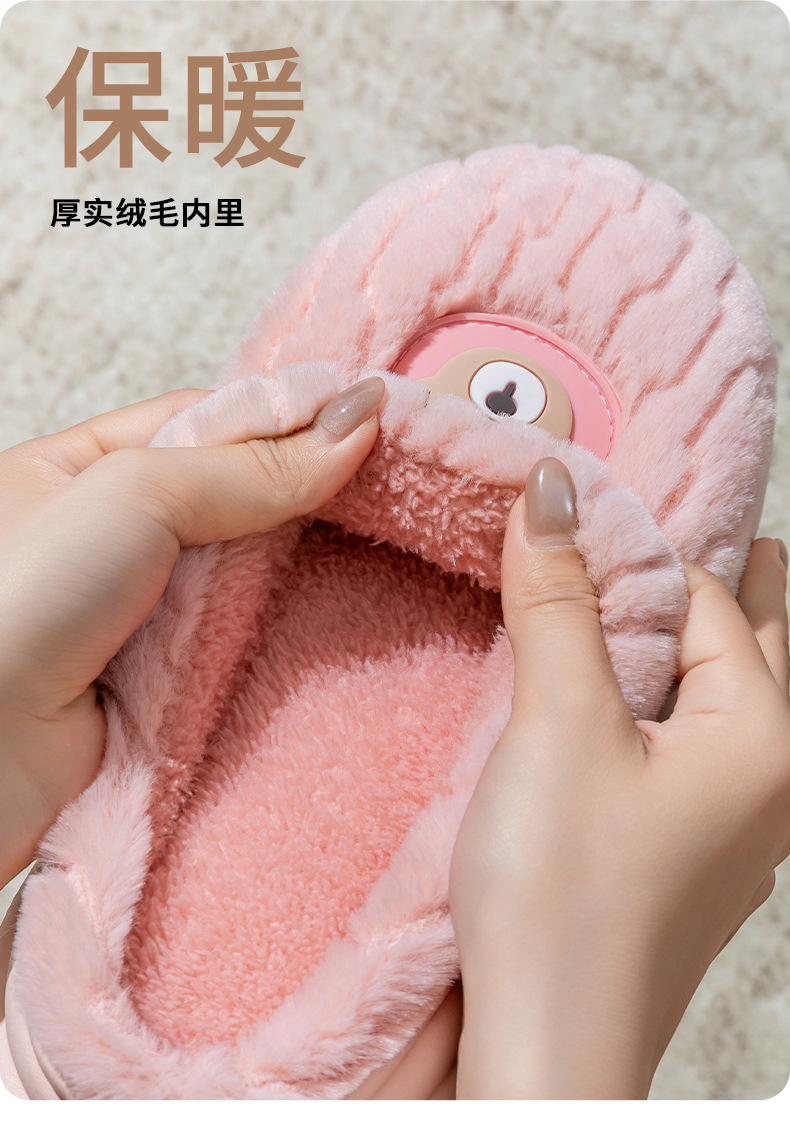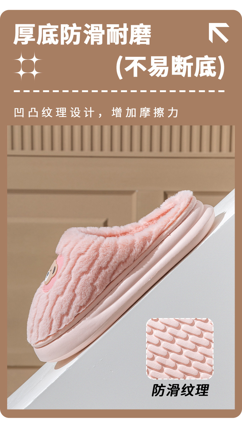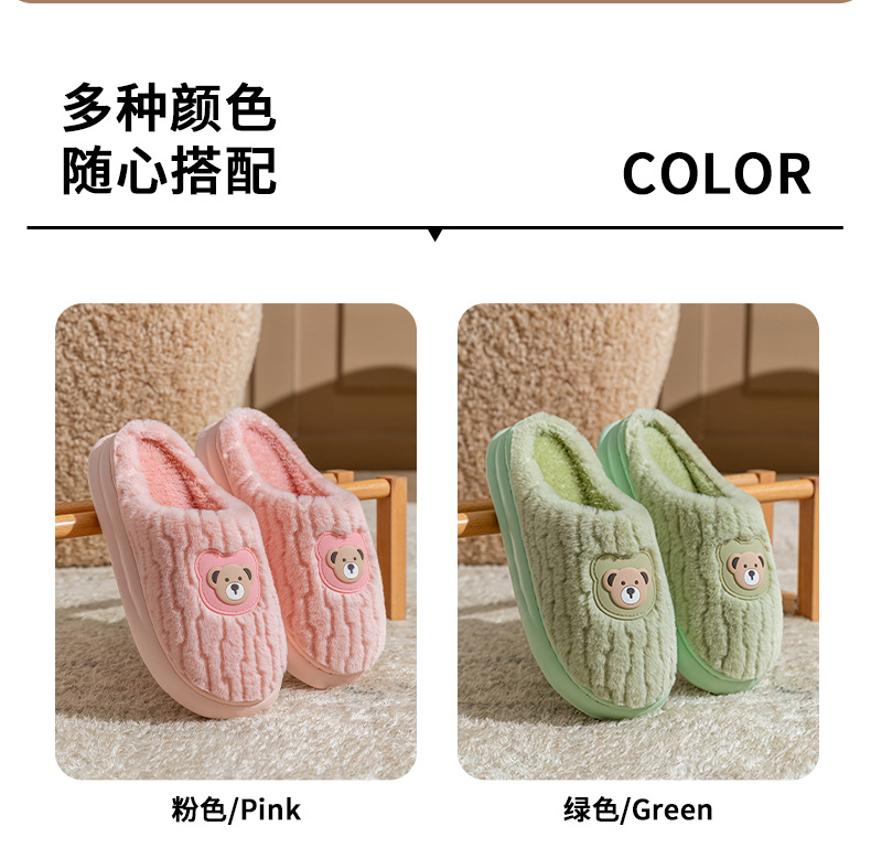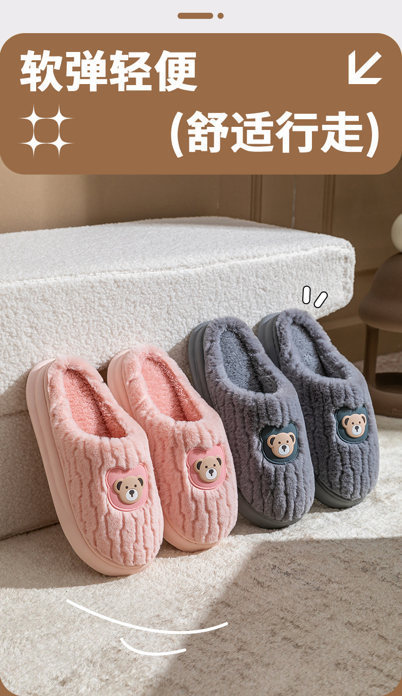 2025小熊新款棉拖鞋男女時尚情侶厚底加絨保暖秋冬季地板棉拖