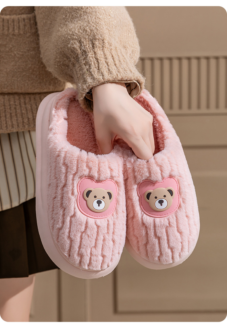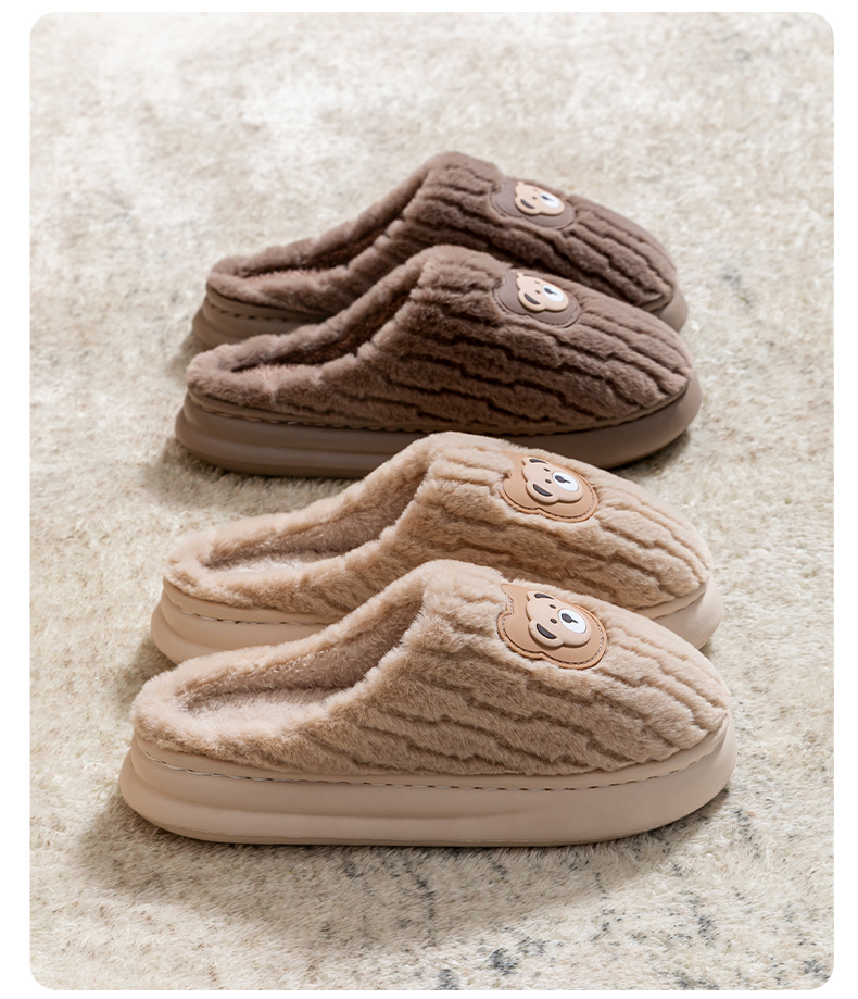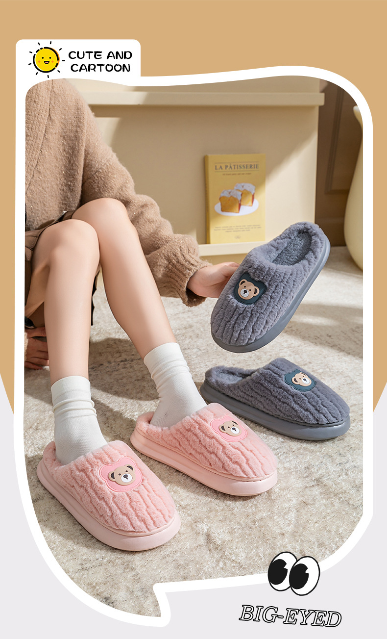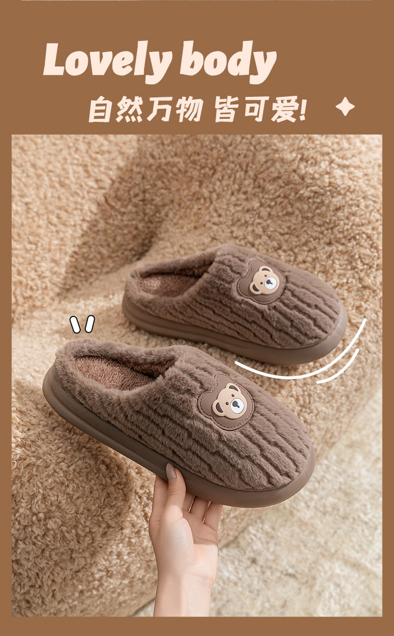 2025小熊新款棉拖鞋男女時尚情侶厚底加絨保暖秋冬季地板棉拖
