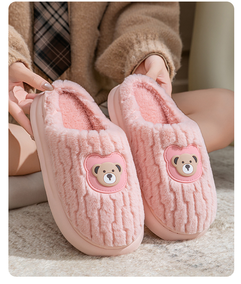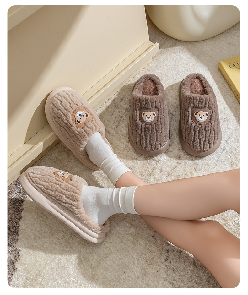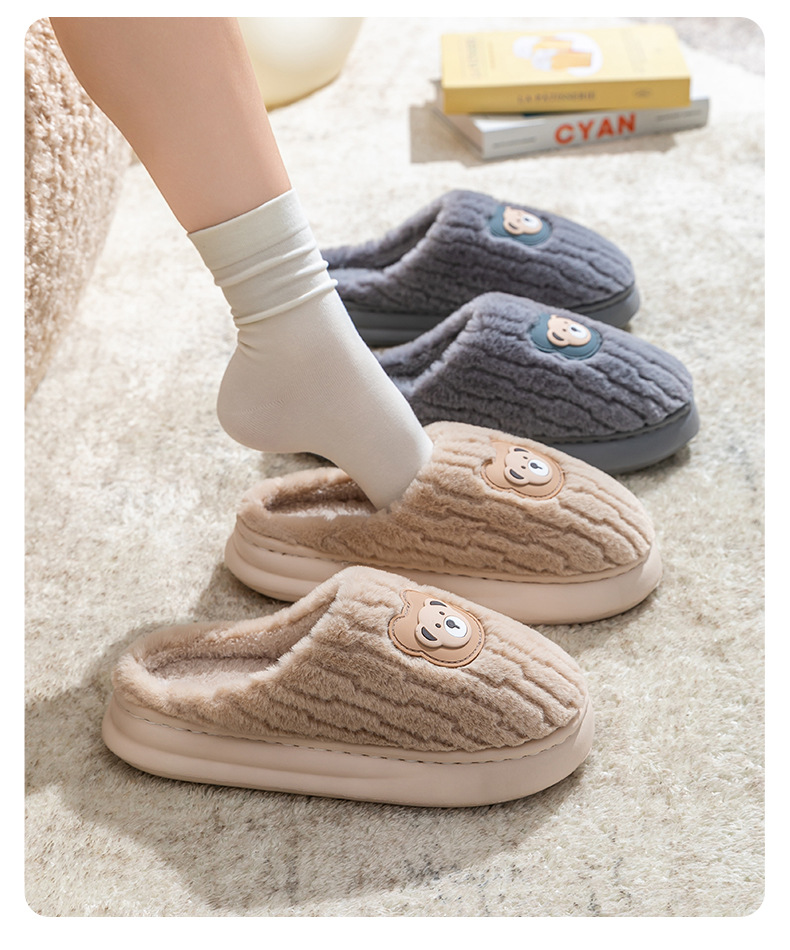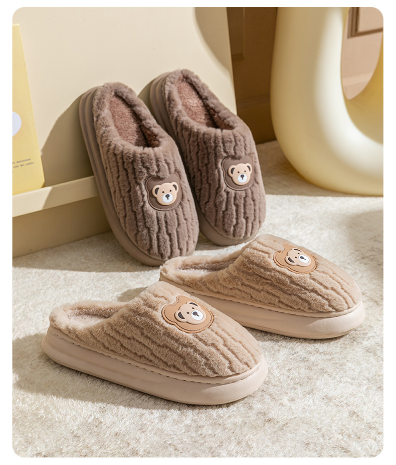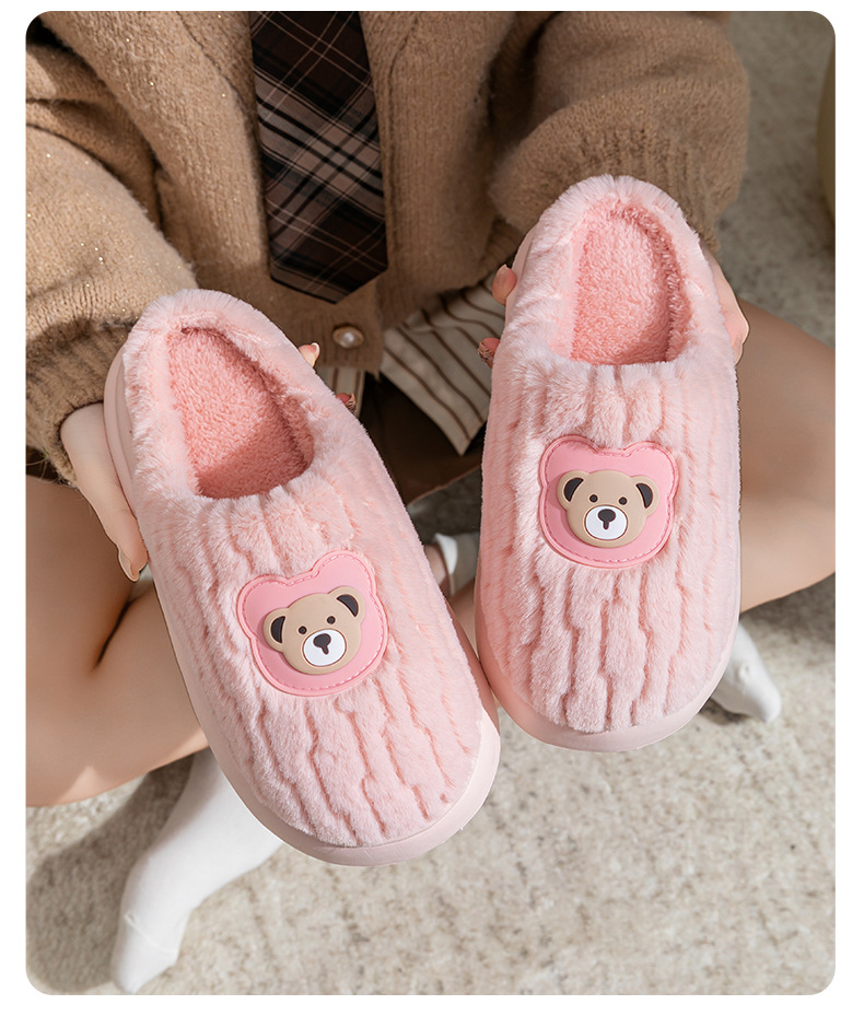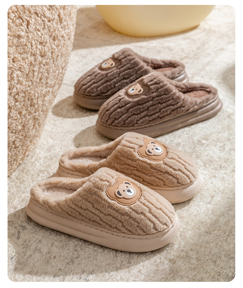 2025小熊新款棉拖鞋男女時尚情侶厚底加絨保暖秋冬季地板棉拖