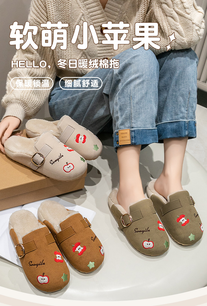 勃肯棉拖鞋女2025新款秋冬季保暖毛毛絨軟底防滑防水室內棉鞋女款
