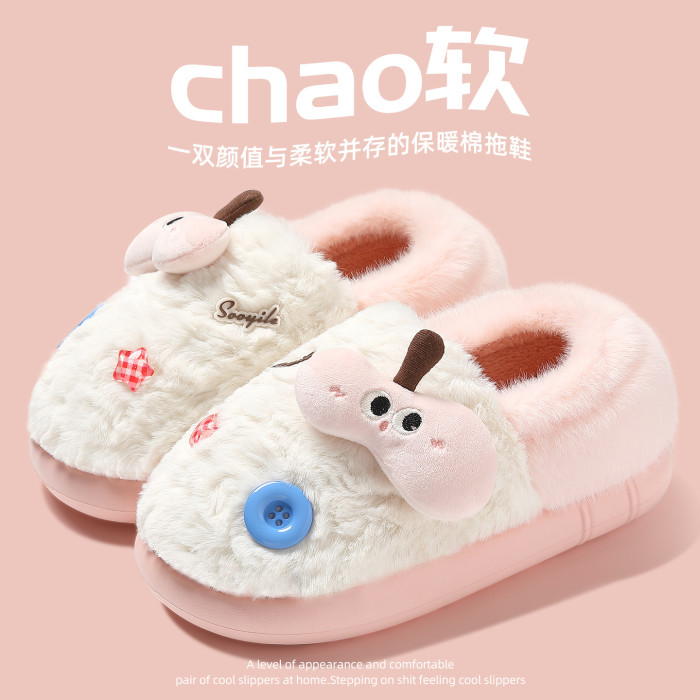 可愛棉拖鞋包跟女居家室內用卡通暖毛絨防滑耐磨軟底棉拖女士