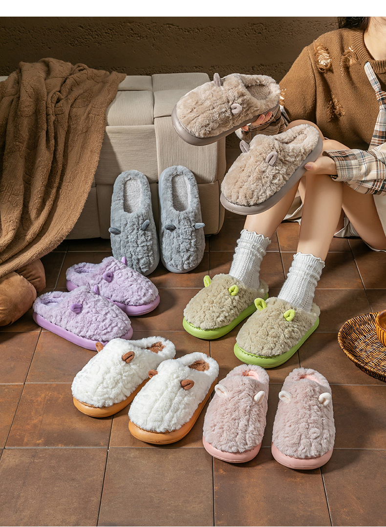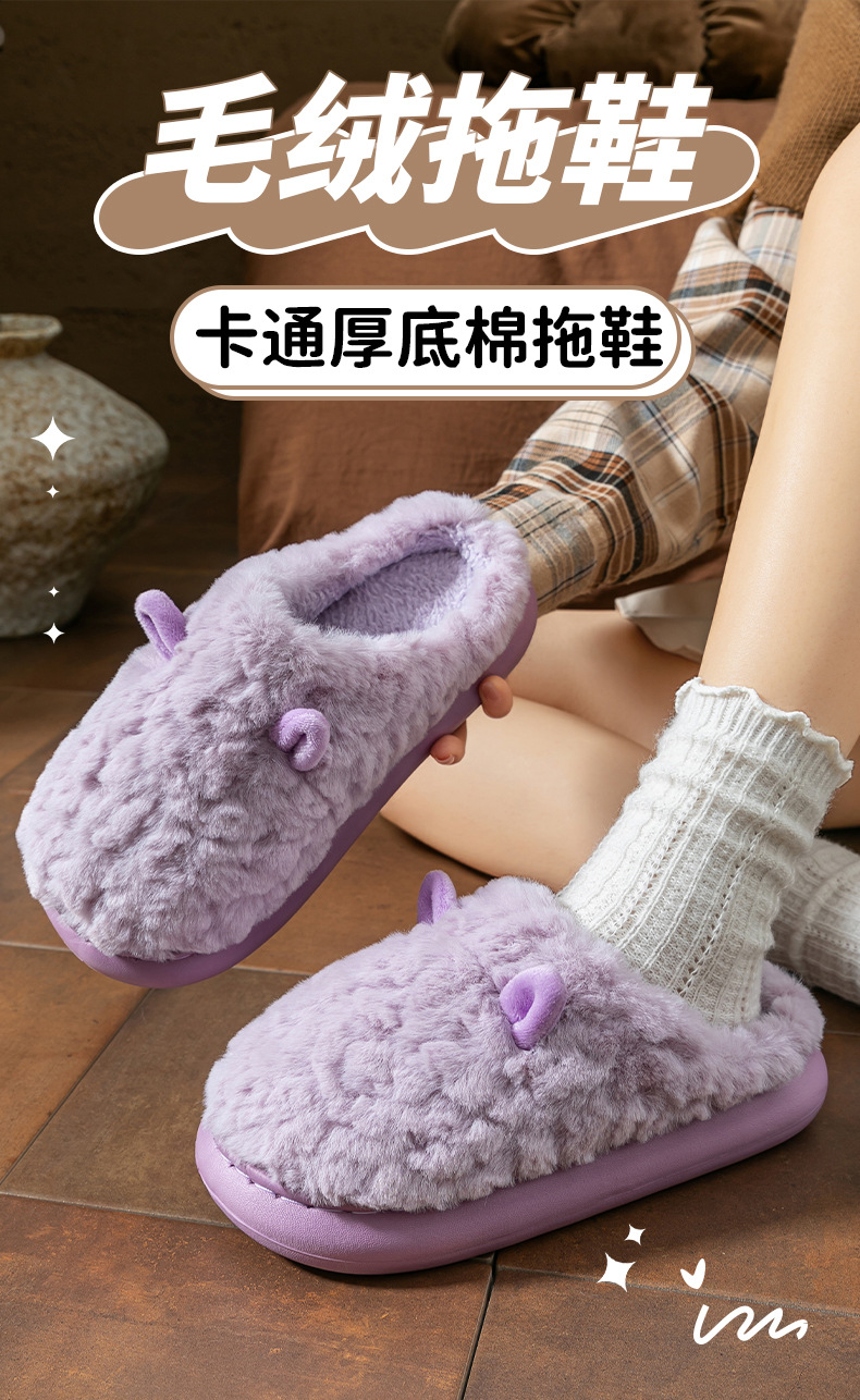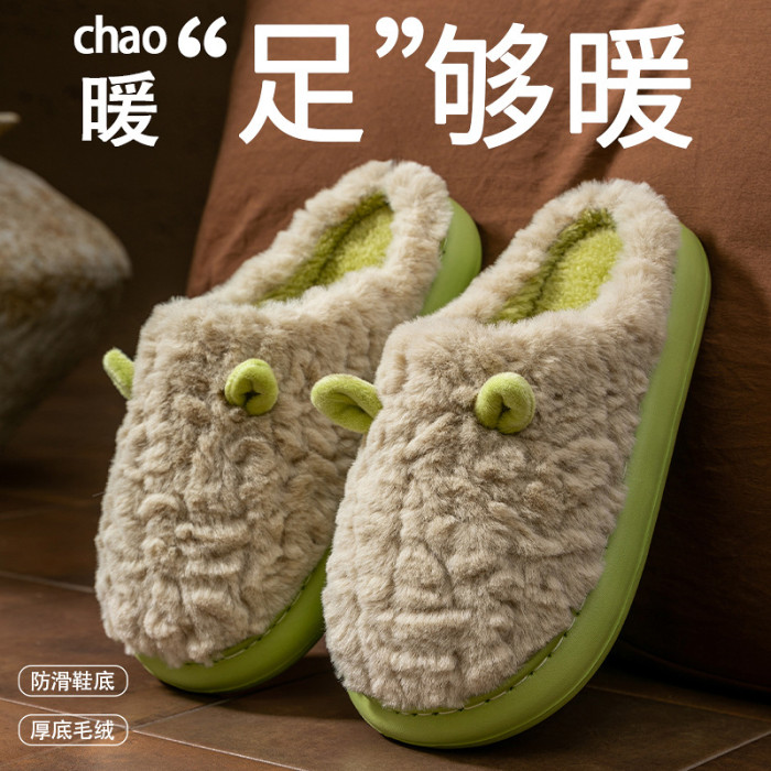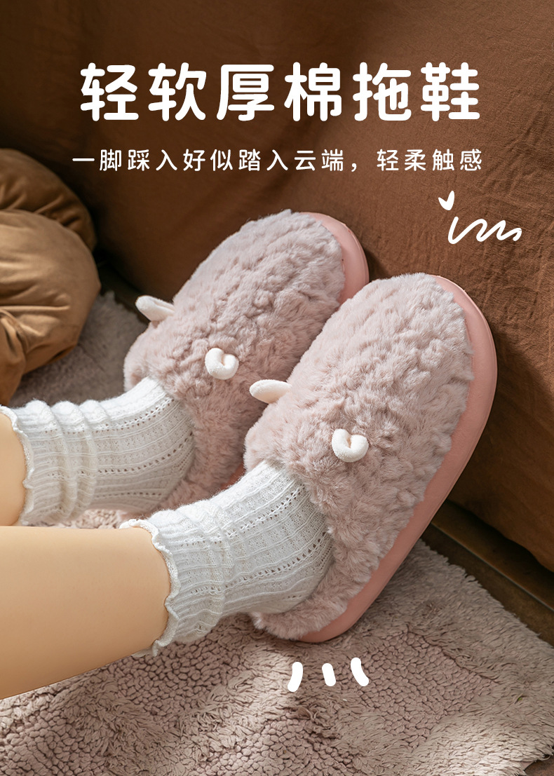 可愛小羊棉拖鞋女2025新款冬季室內家居踩屎感厚底保暖毛絨拖鞋男