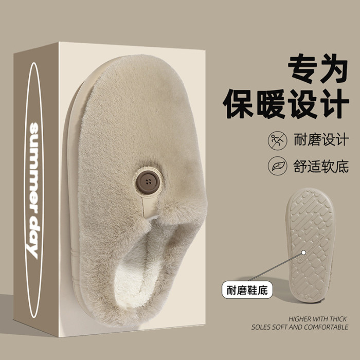 居家保暖棉拖鞋男士秋冬暖毛絨家用防滑耐磨軟底包頭半棉拖女