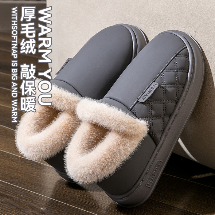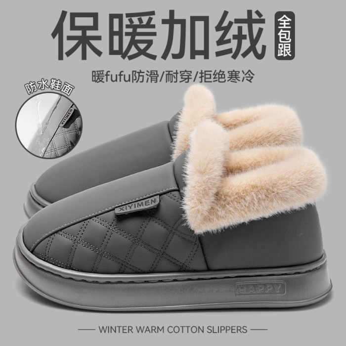 老人保暖棉拖鞋男士秋冬季2025新款厚底防滑加厚毛絨保暖棉拖鞋男