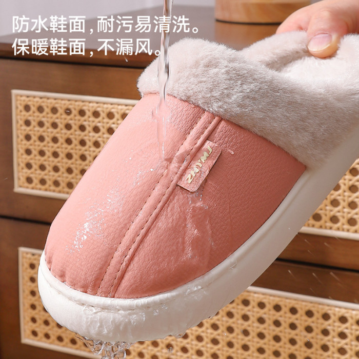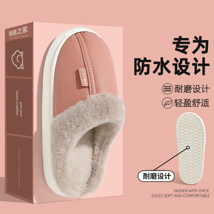 防水棉拖鞋女冬季家居保暖毛絨室內居家包頭厚底耐磨棉拖男士