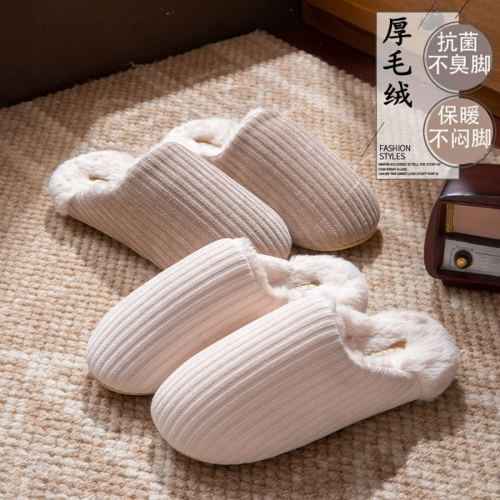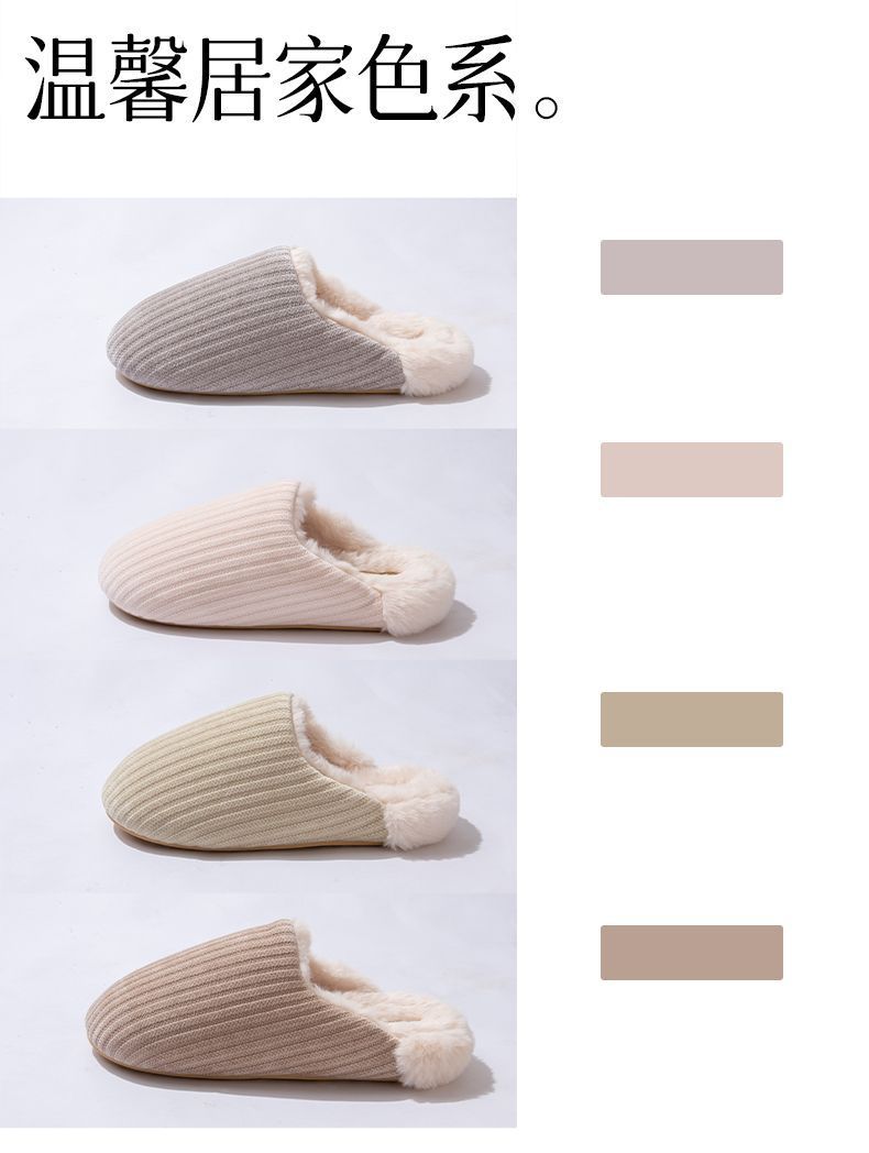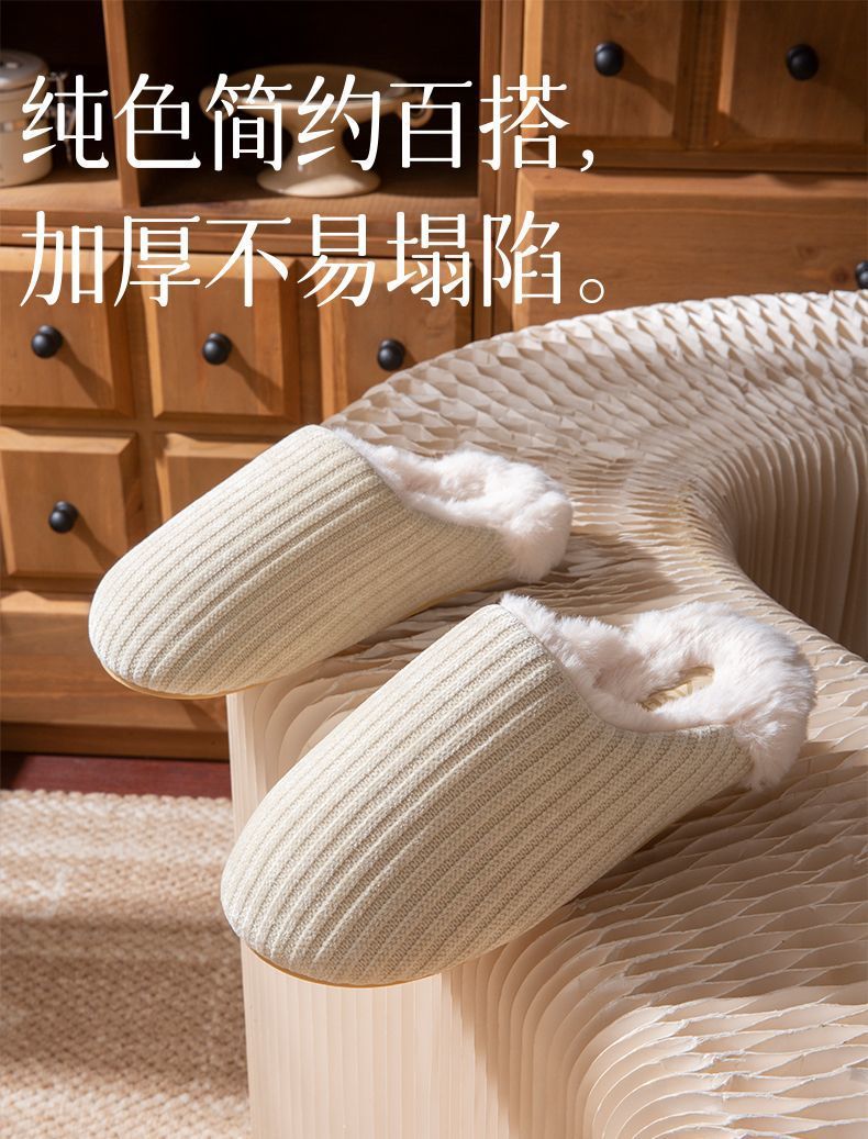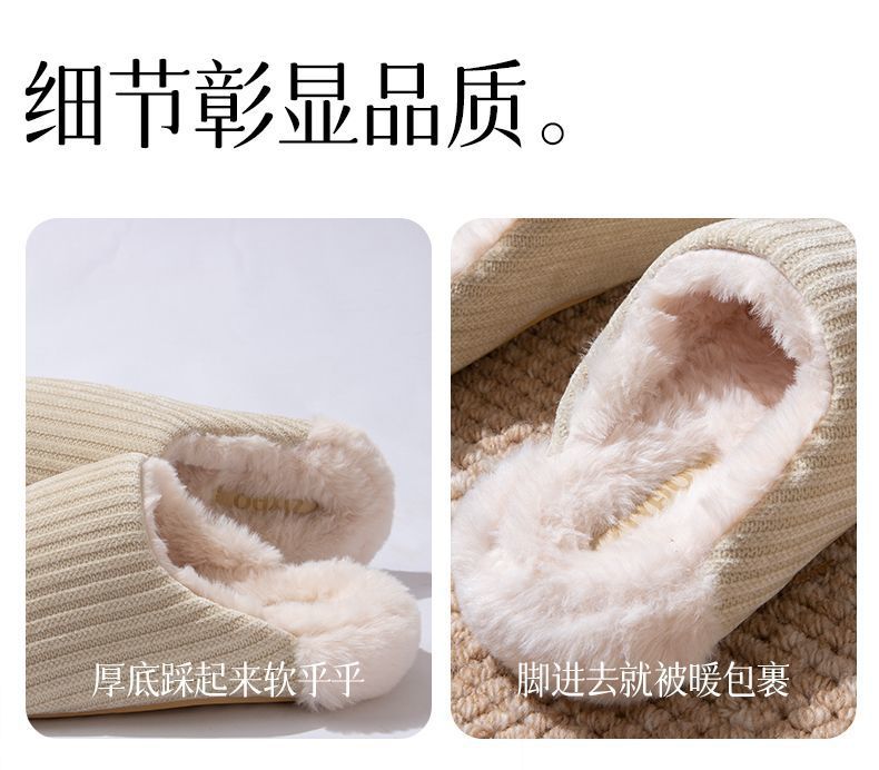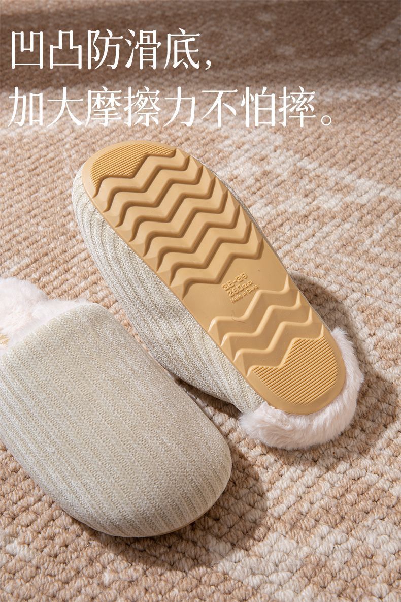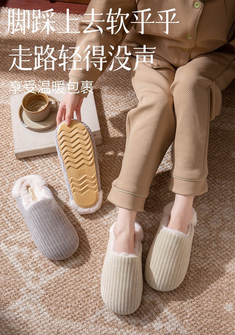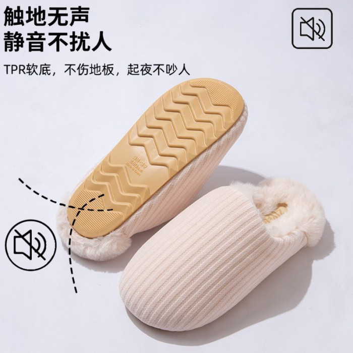日式靜音地板棉拖鞋女秋冬季新款家居室內防滑毛毛保暖加絨棉拖男