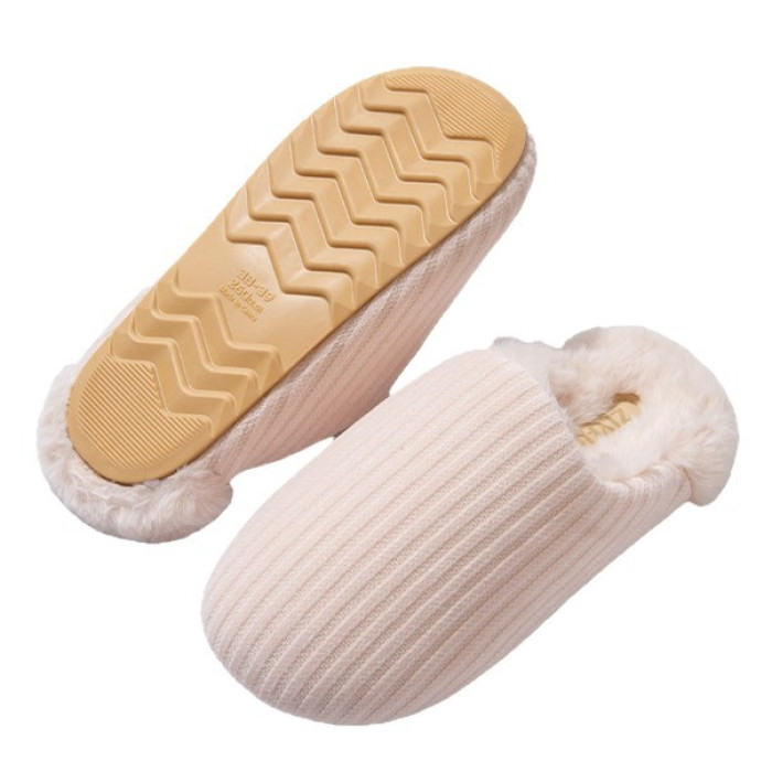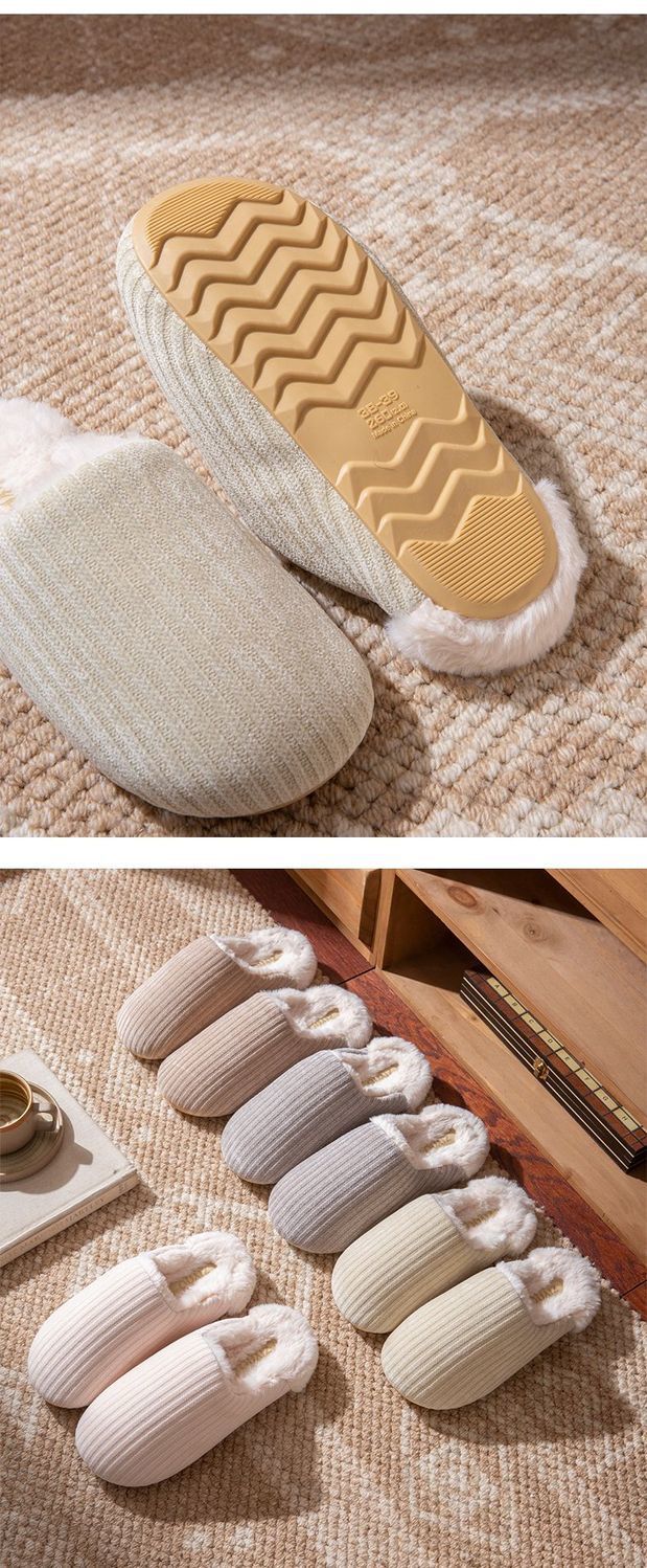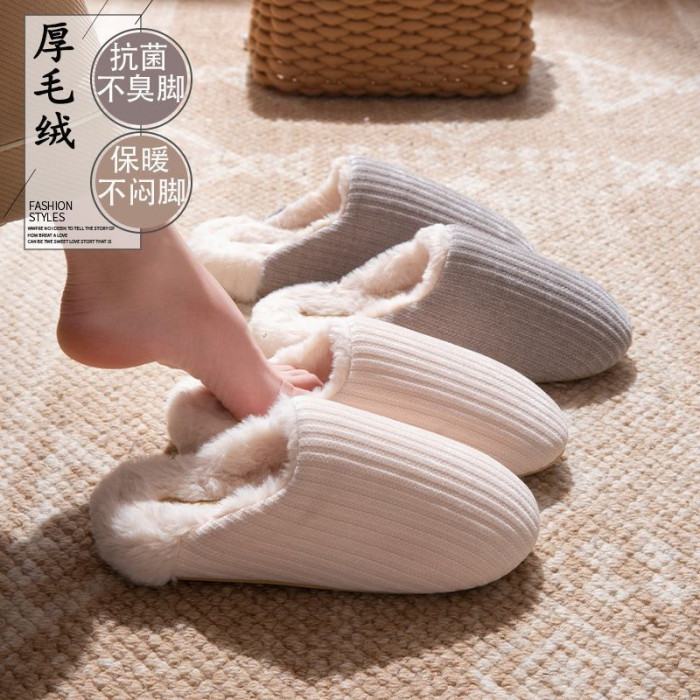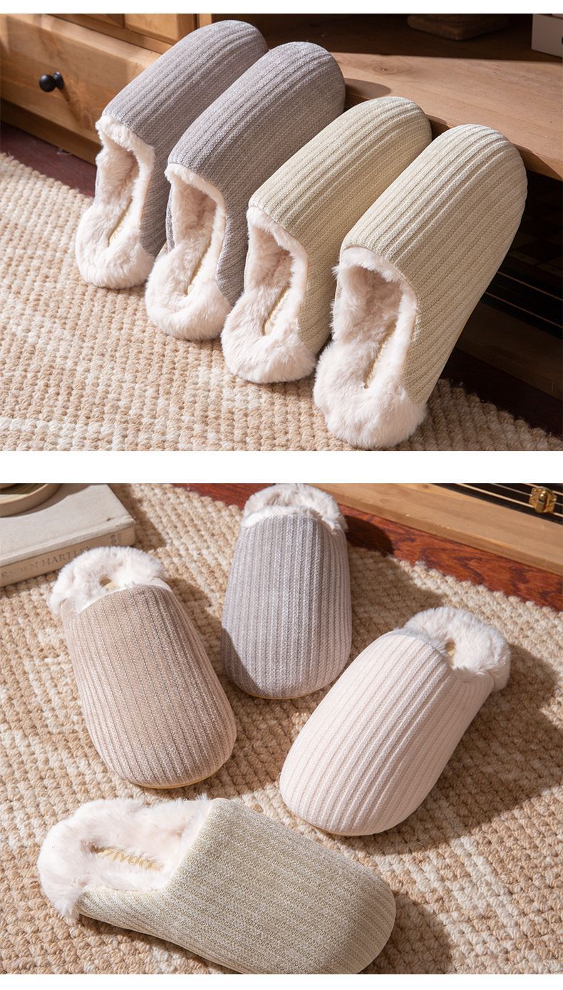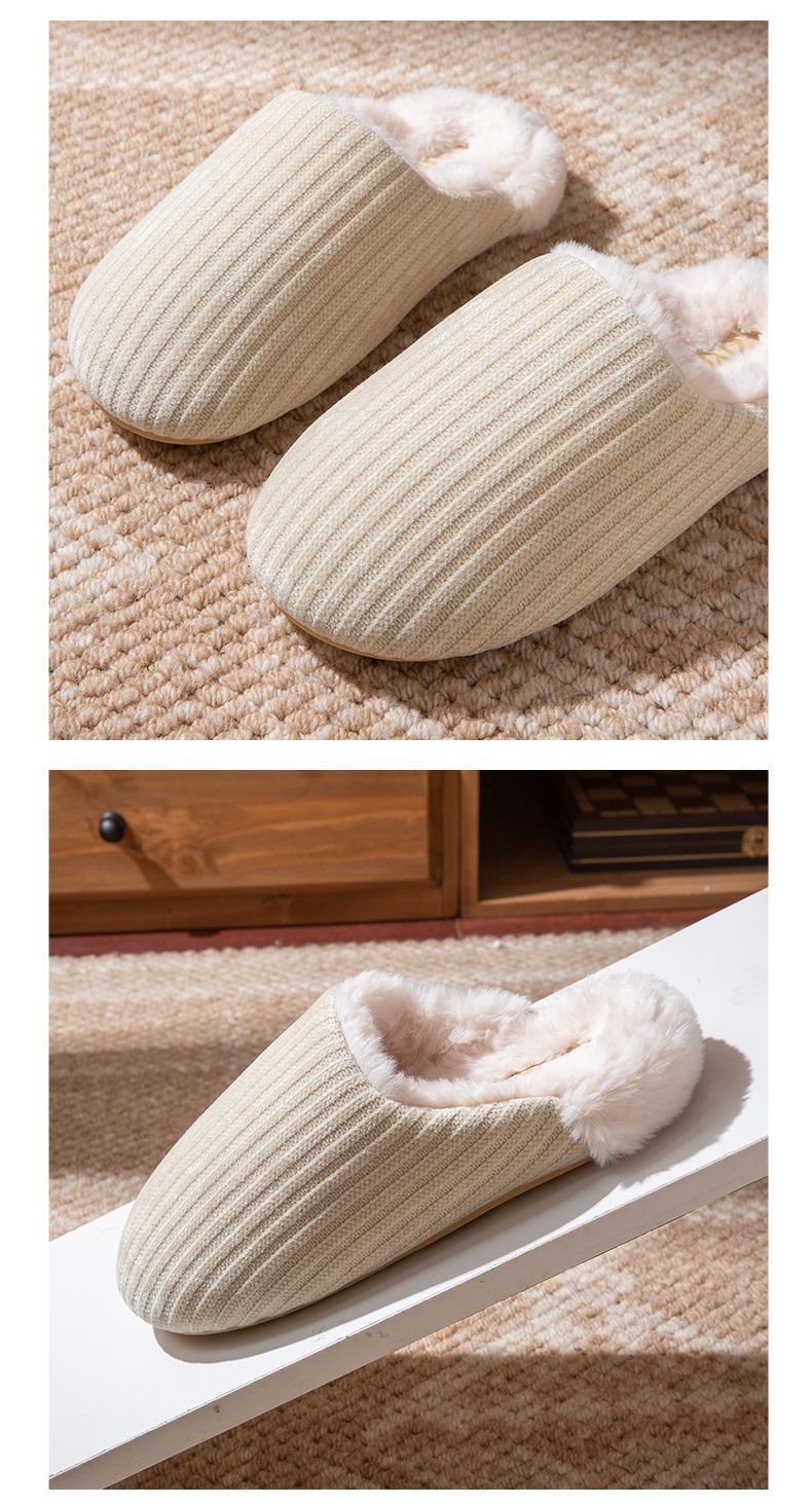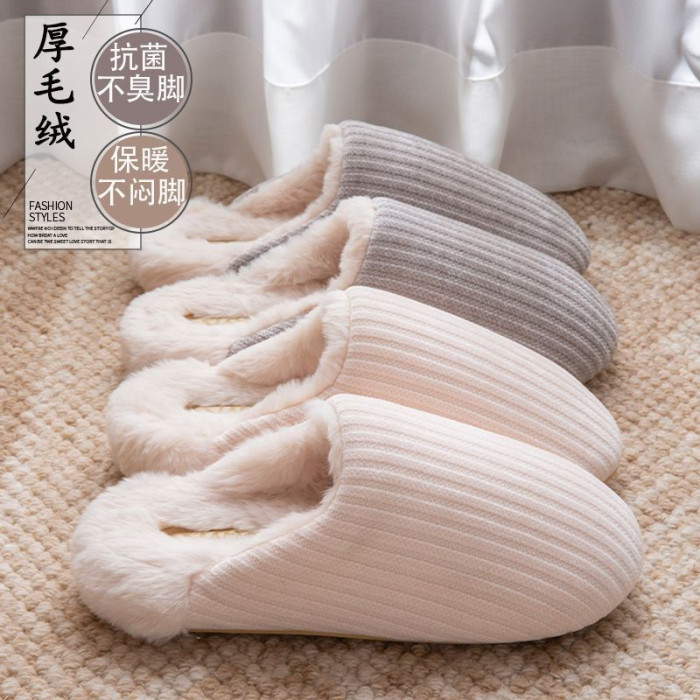 日式靜音地板棉拖鞋女秋冬季新款家居室內防滑毛毛保暖加絨棉拖男
