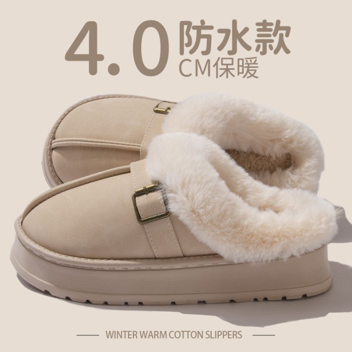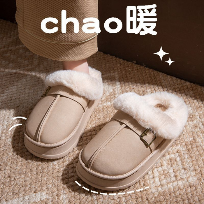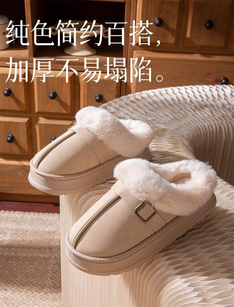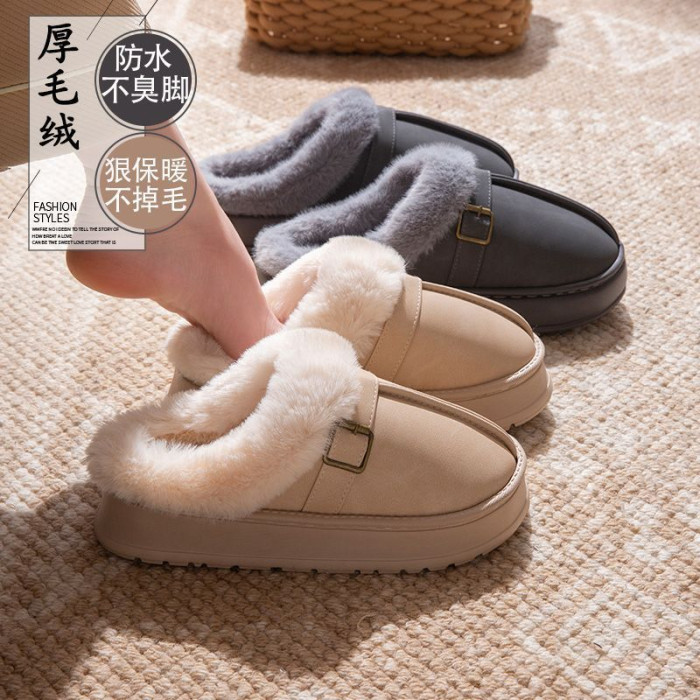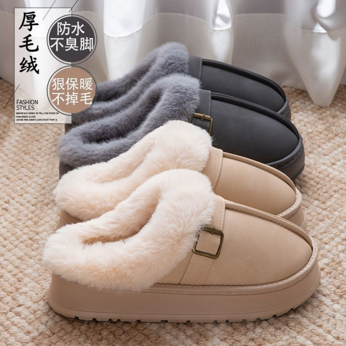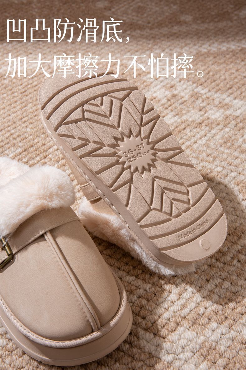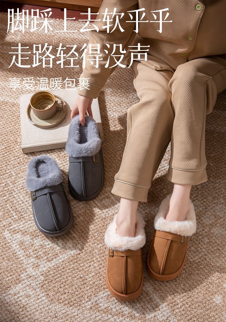 PU防水棉拖鞋女秋冬季2025新款室內家居厚底毛絨保暖棉拖男士外穿