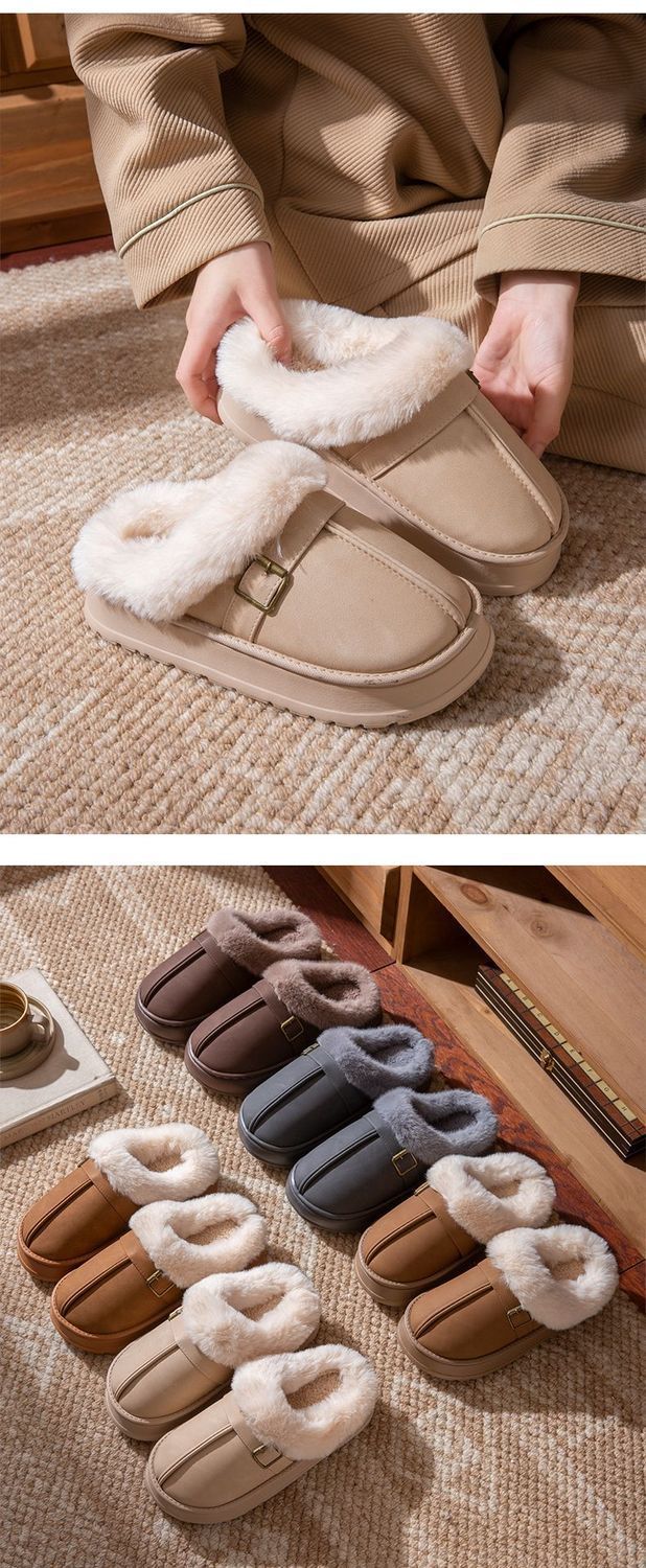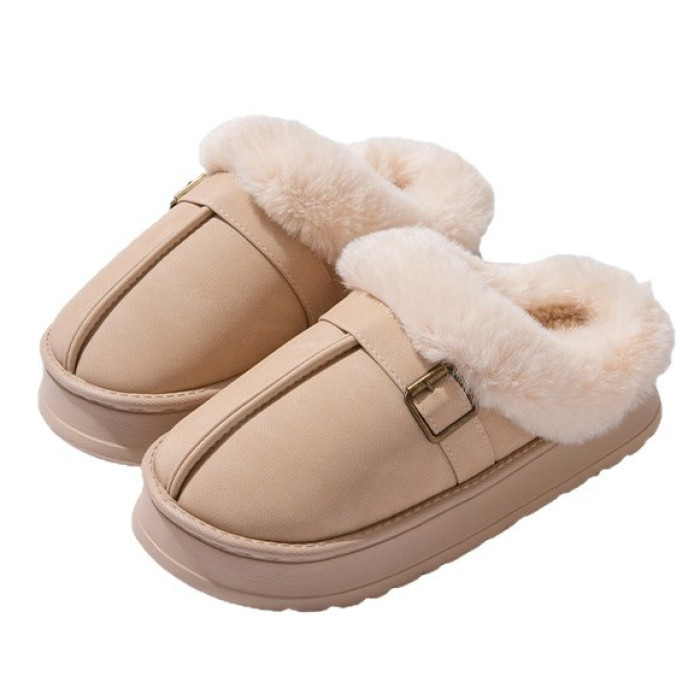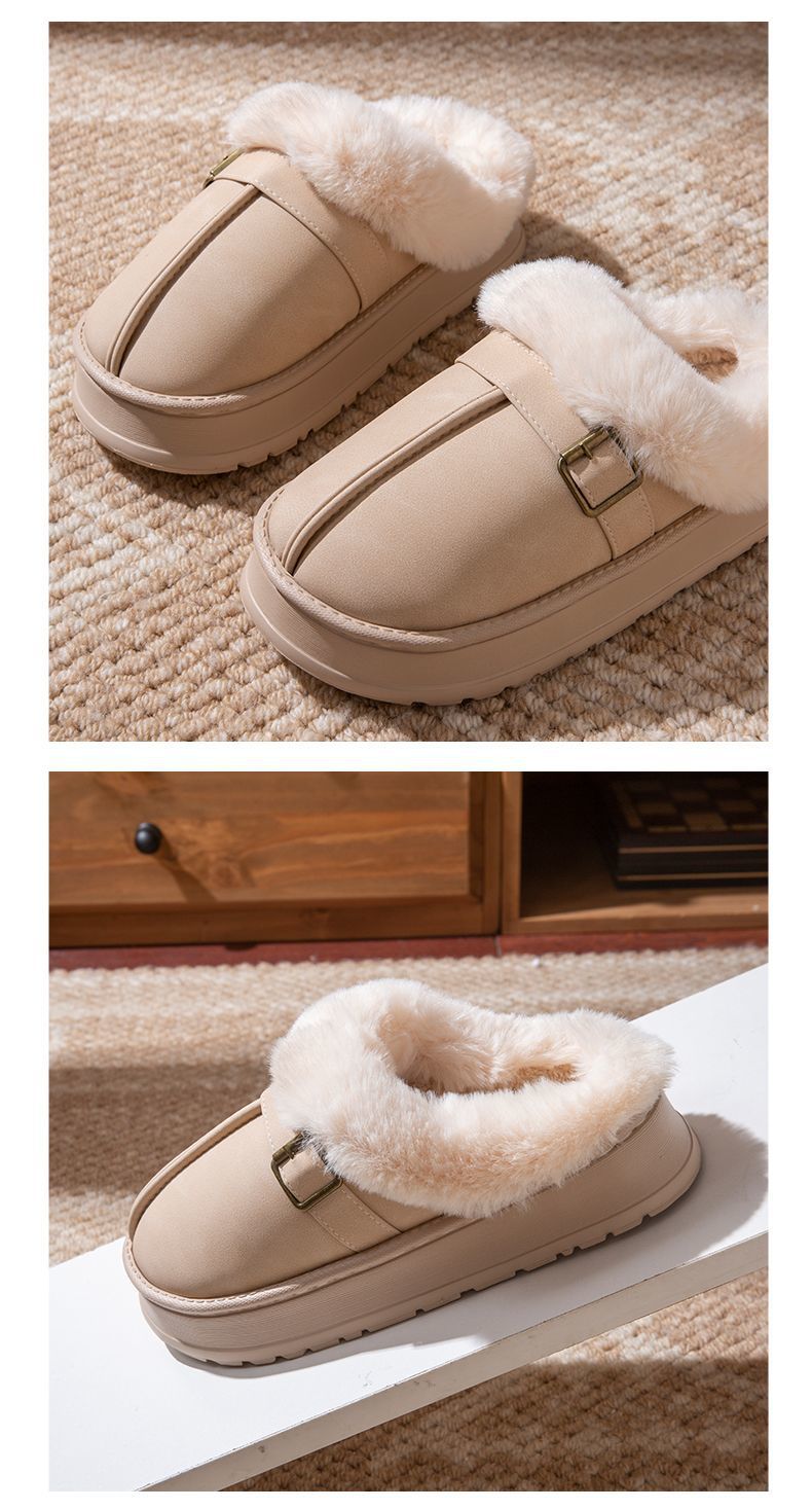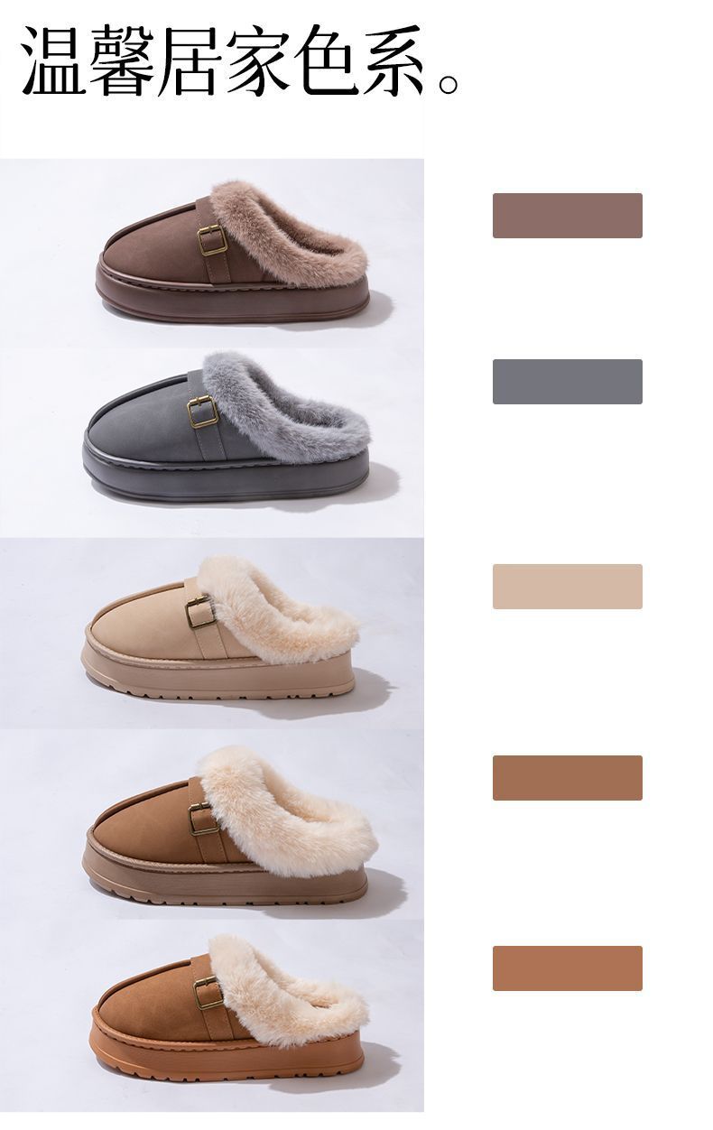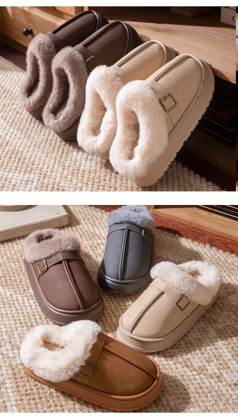 PU防水棉拖鞋女秋冬季2025新款室內家居厚底毛絨保暖棉拖男士外穿