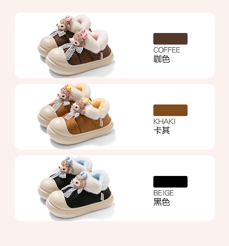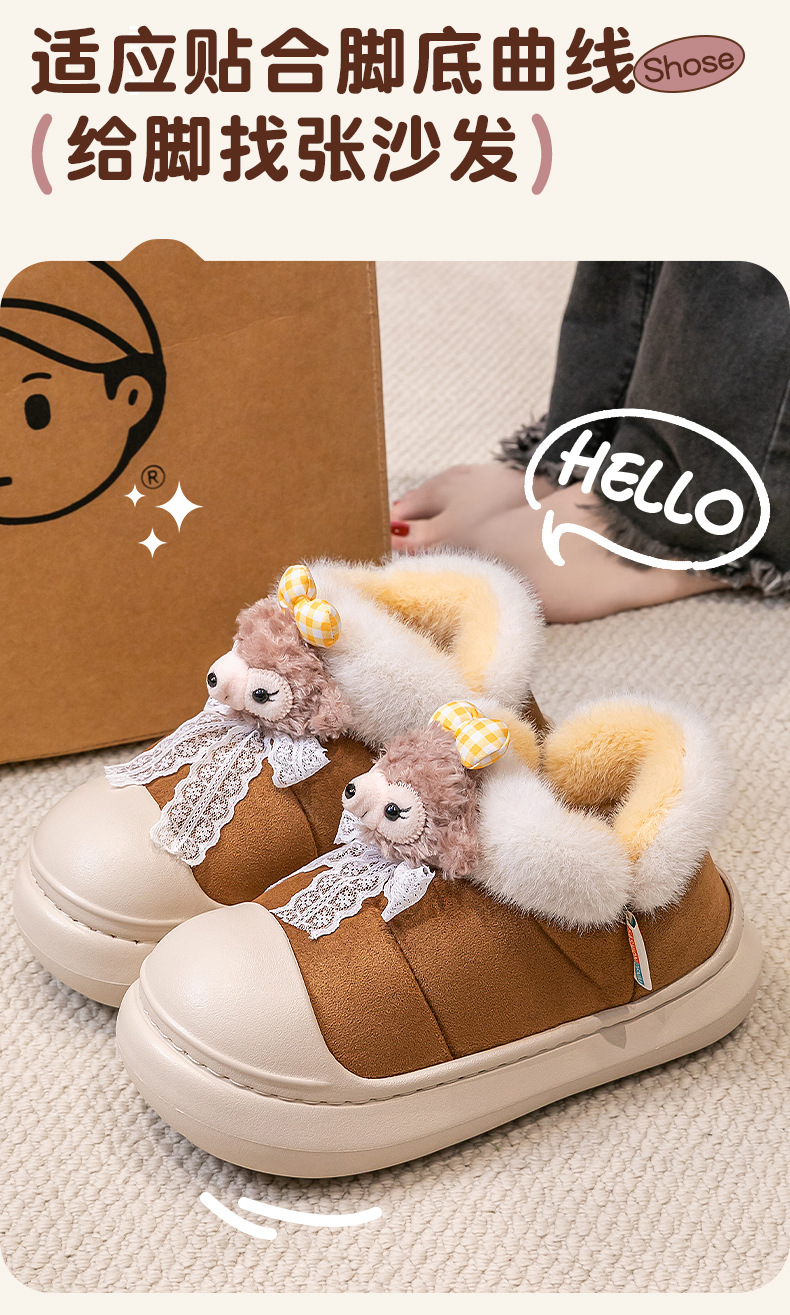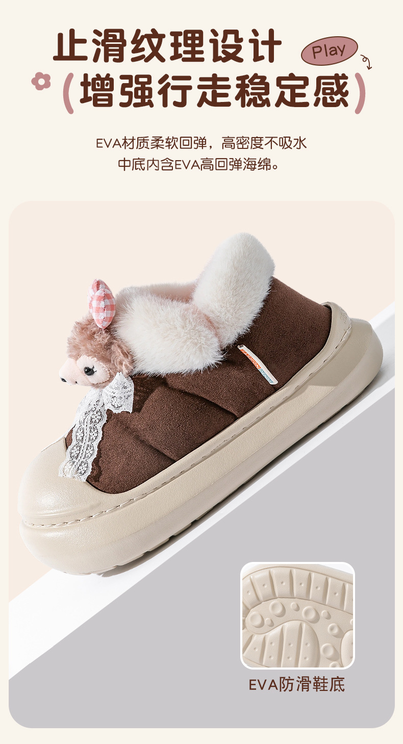 雪莉玫棉拖鞋女款秋冬季2025新款防水厚底保暖加絨包跟月子鞋女
