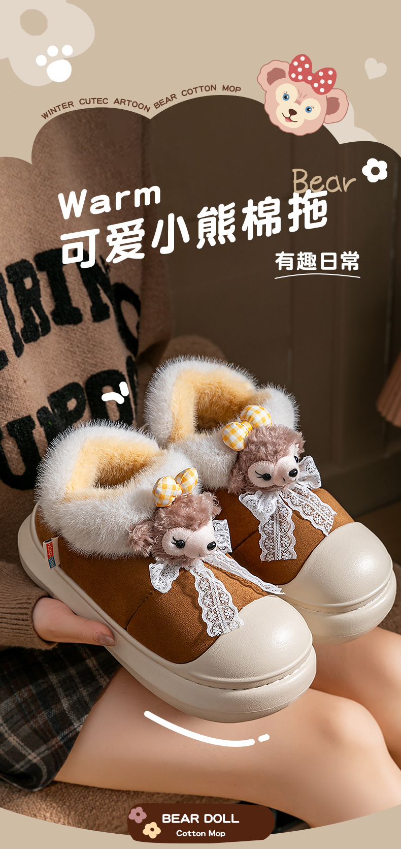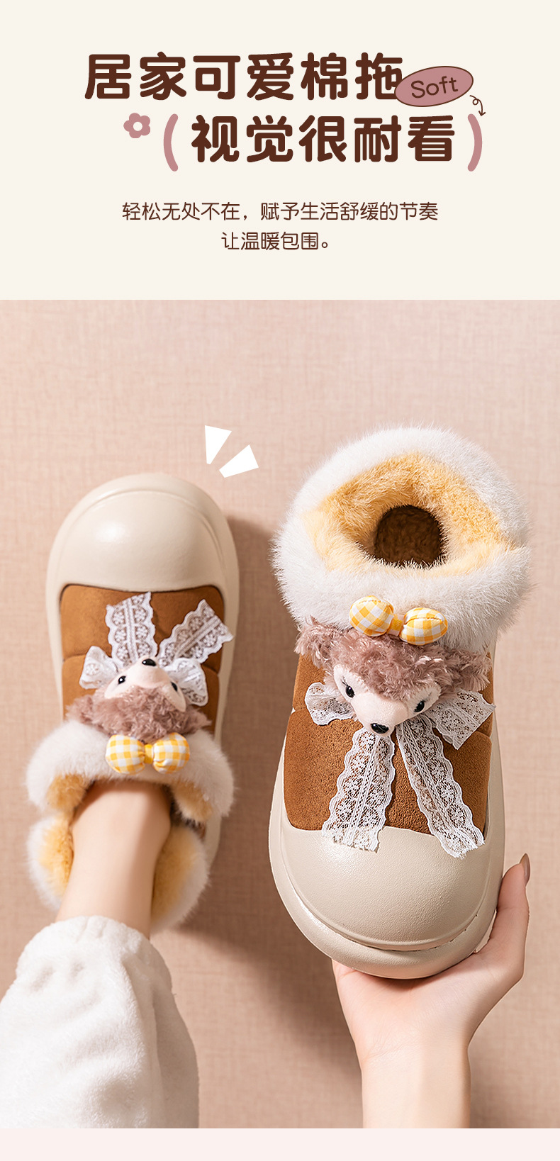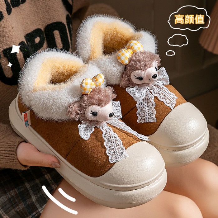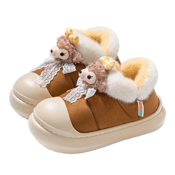 雪莉玫棉拖鞋女款秋冬季2025新款防水厚底保暖加絨包跟月子鞋女