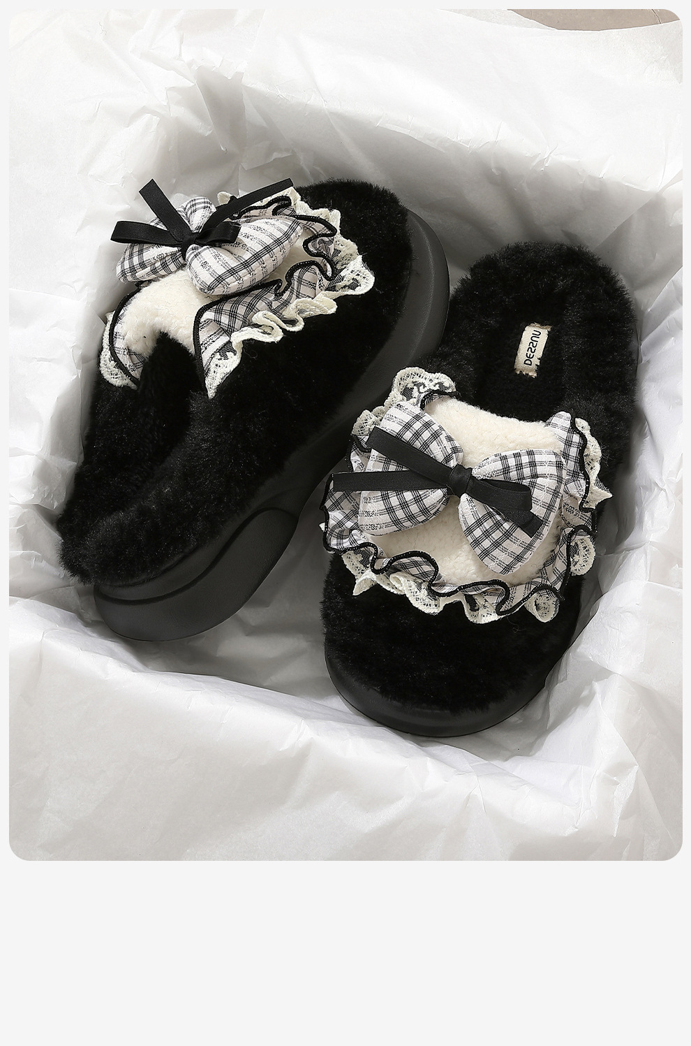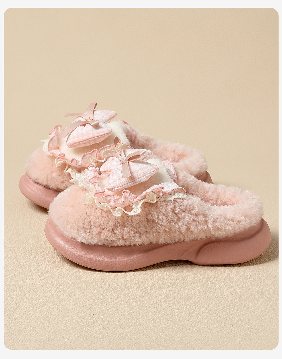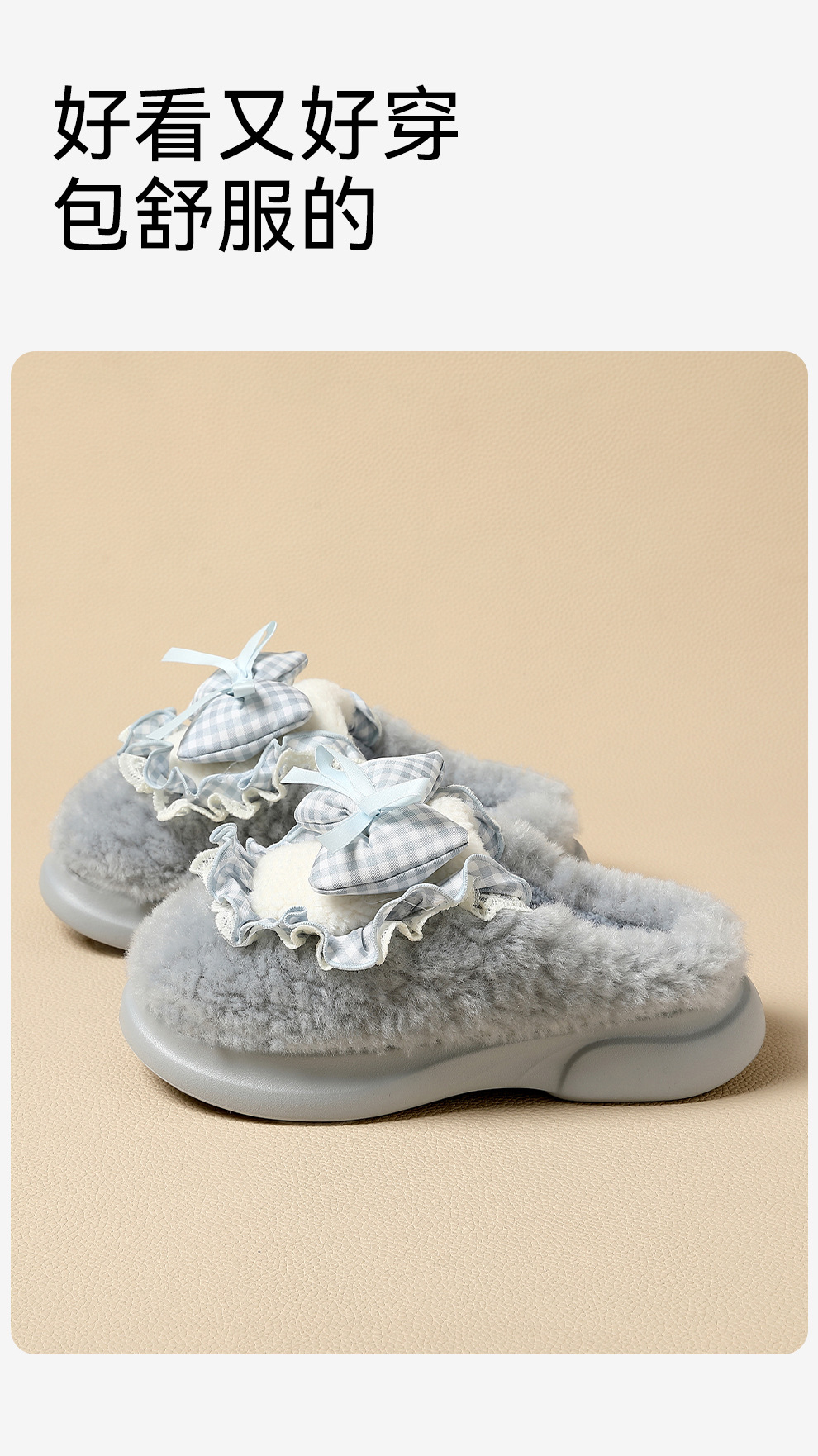 女士蝴蝶結棉拖鞋秋冬季家居室內毛絨保暖情侶家用防滑棉拖男