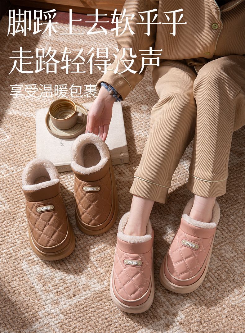 外穿防水棉拖鞋女士冬季包跟2025新款家居室內厚底加絨保暖棉鞋男