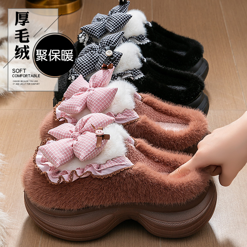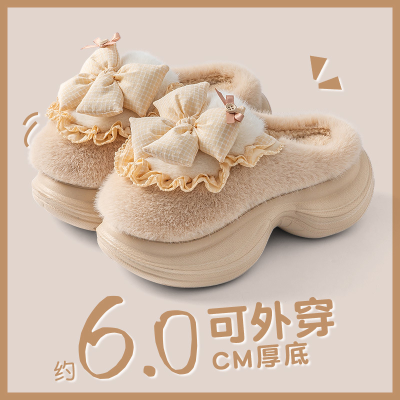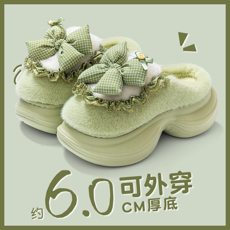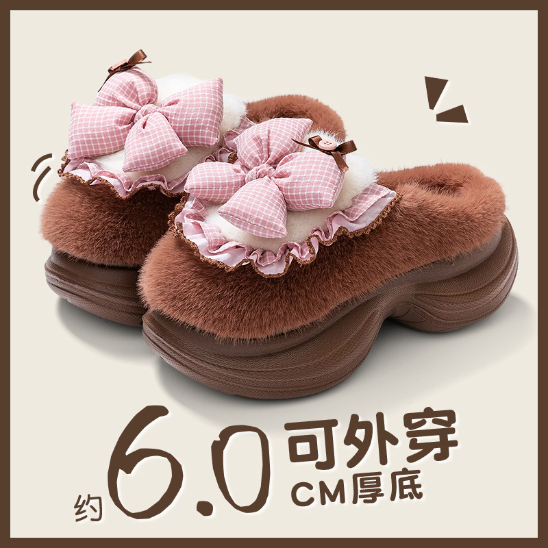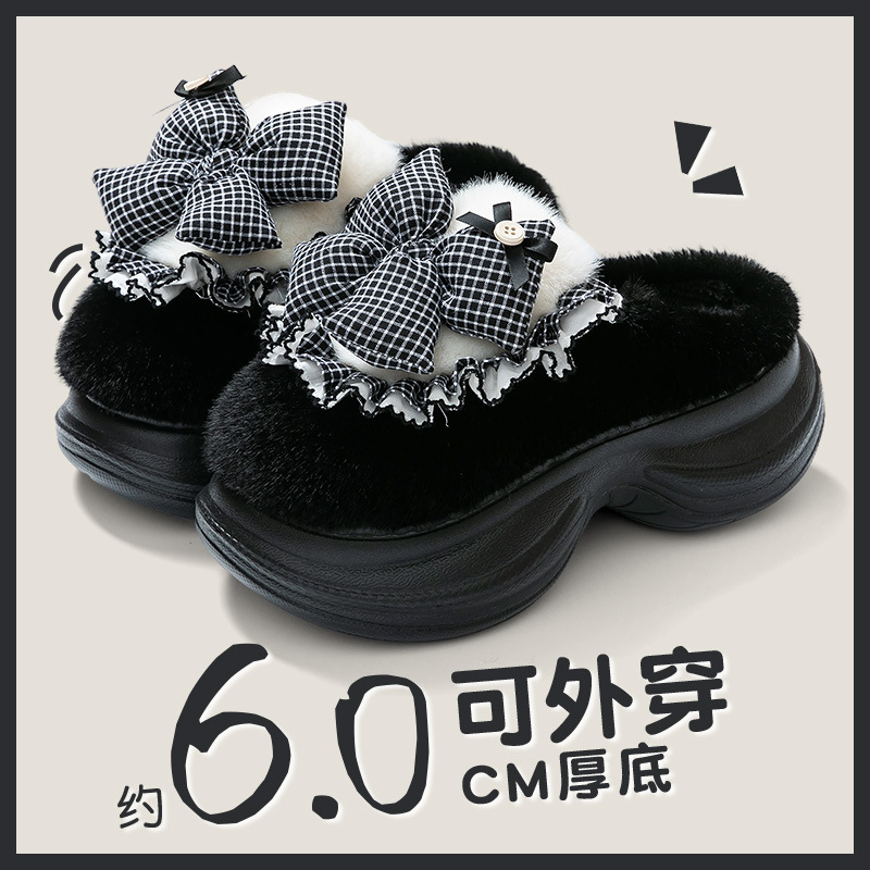 厚底棉拖鞋女款秋冬季2025新款加絨小個子外穿保暖厚底防滑棉拖
