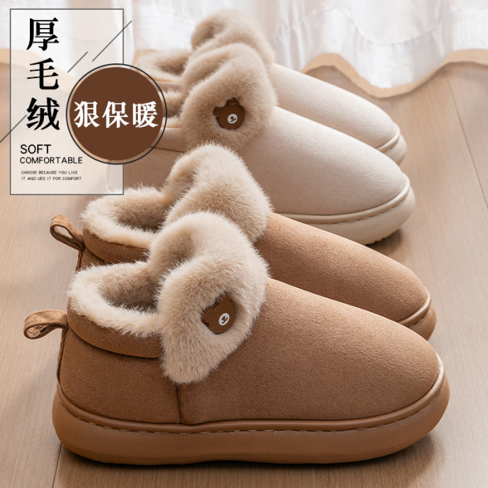 踩屎感棉拖鞋女冬季2025新款室內家居厚底保暖加絨包跟月子毛拖鞋