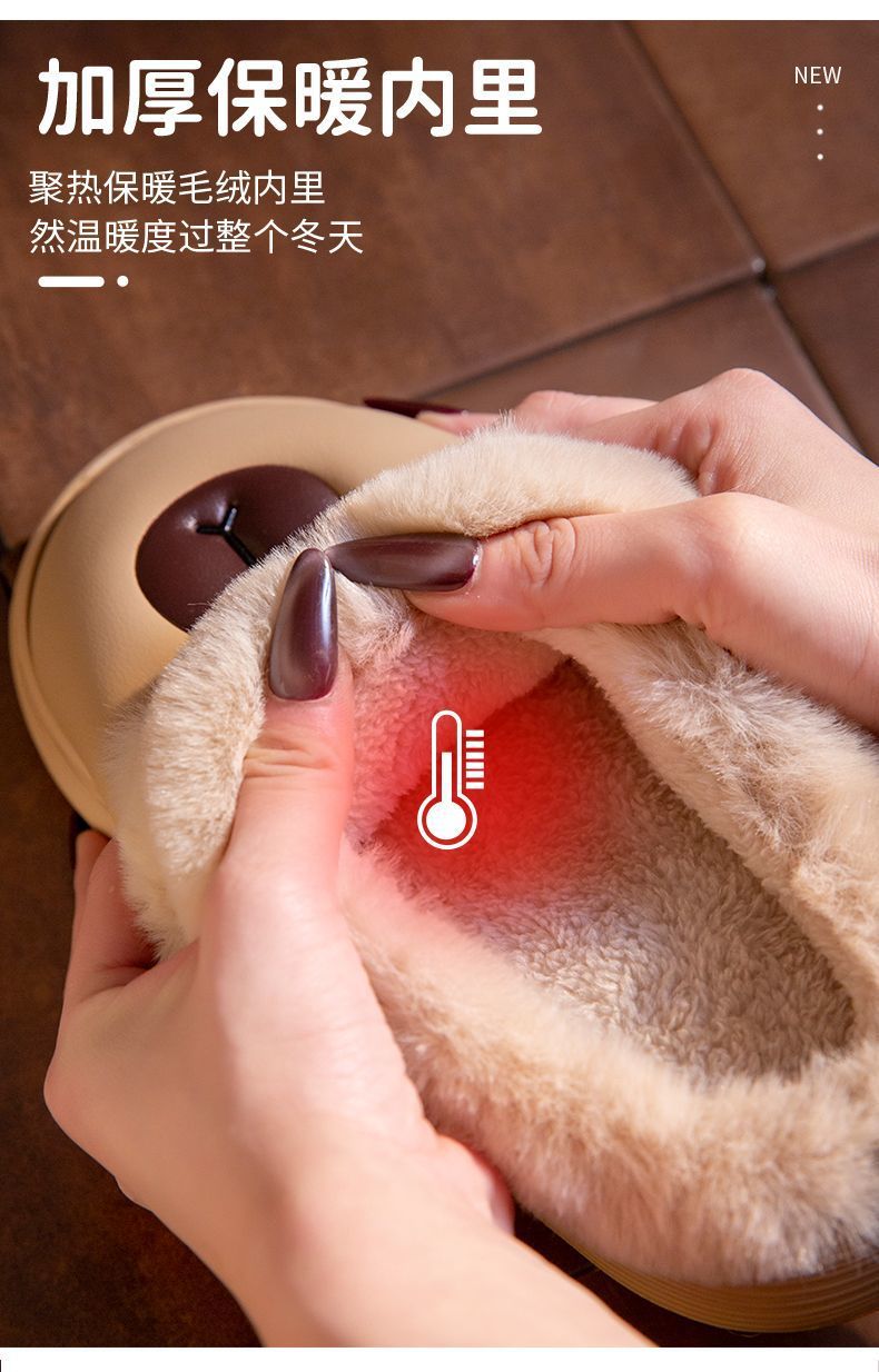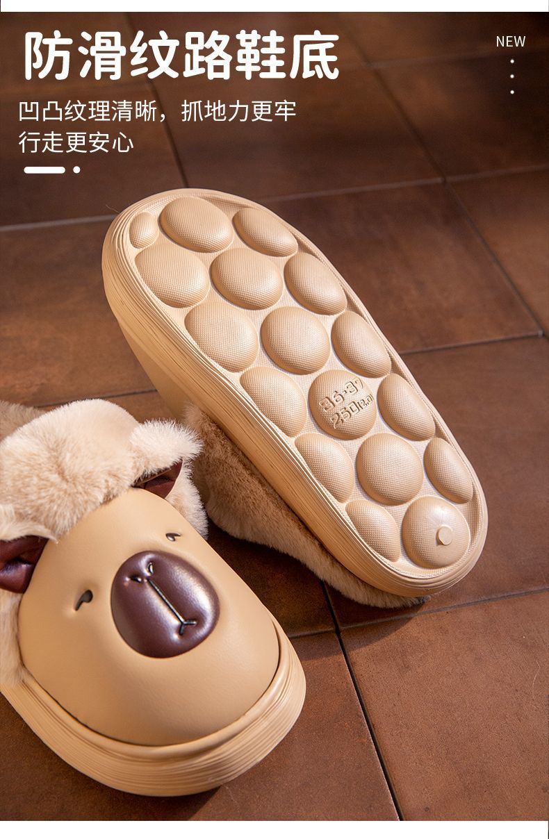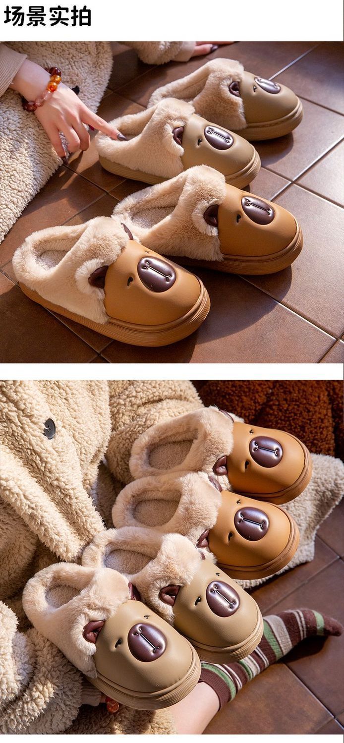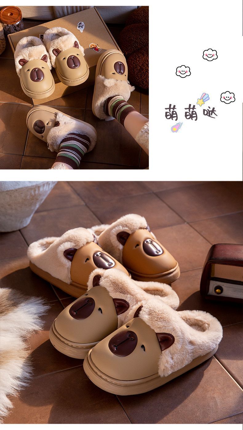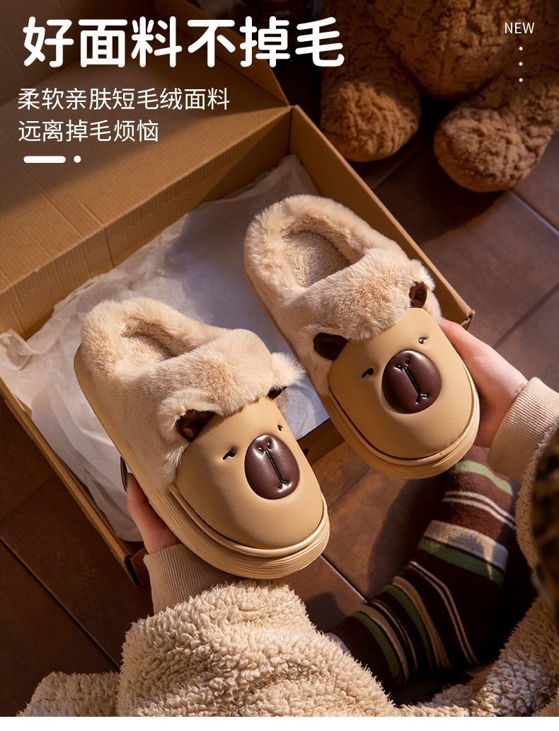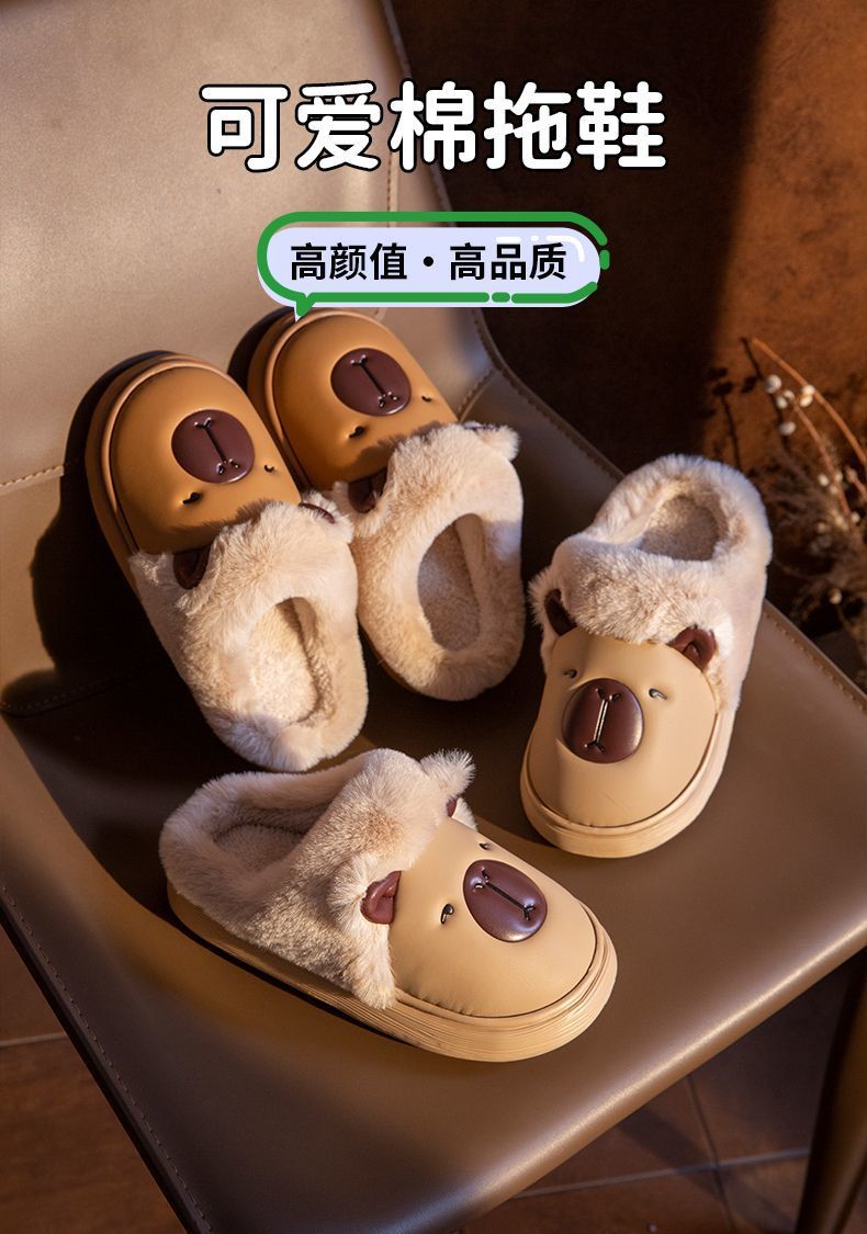 卡皮巴拉防水棉拖鞋女秋冬季家居防滑厚底保暖加絨可愛中大童棉拖