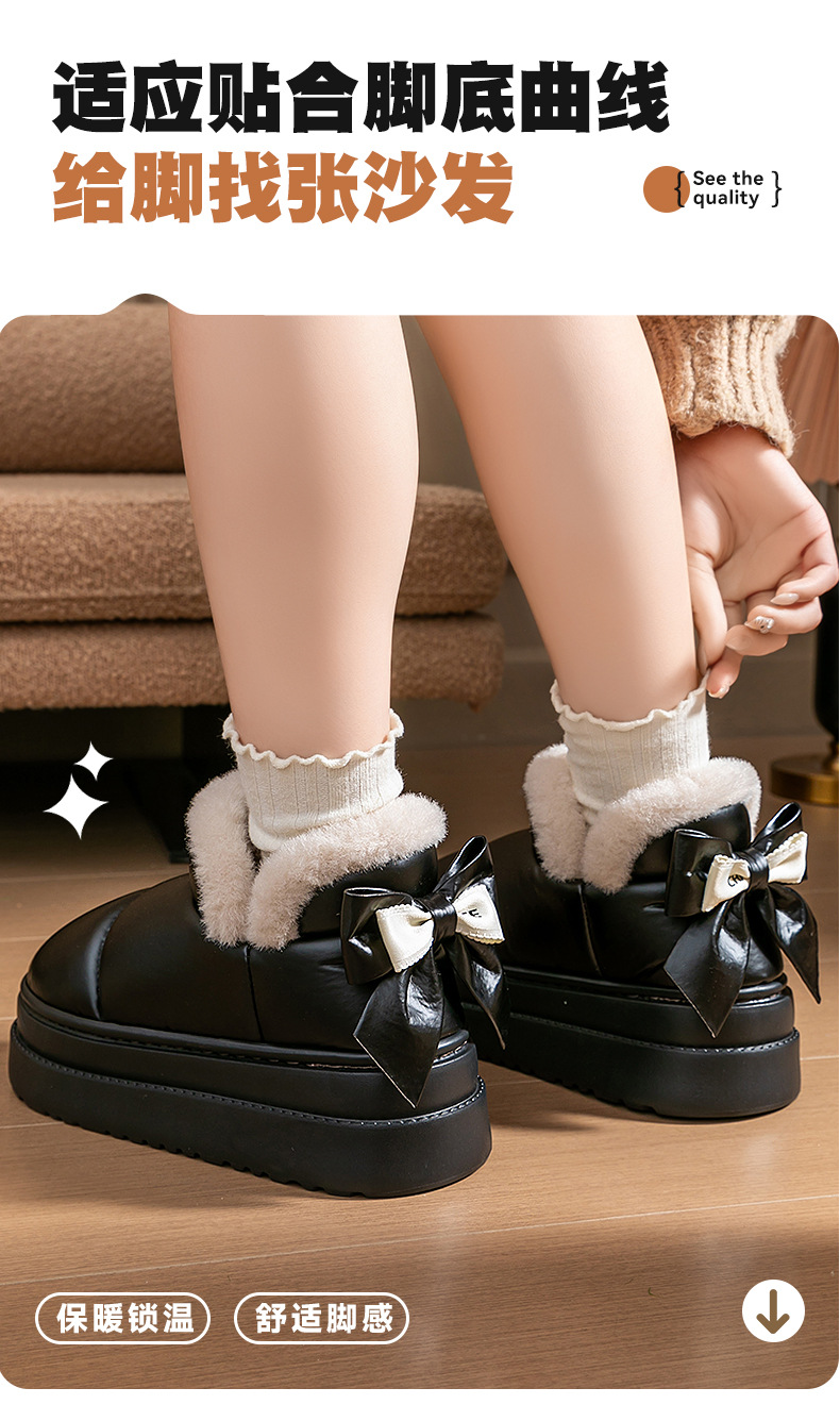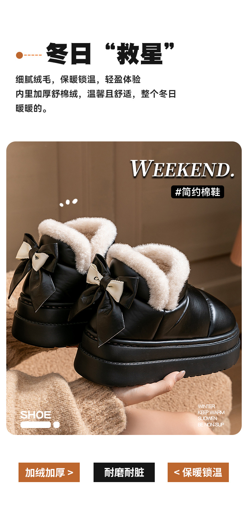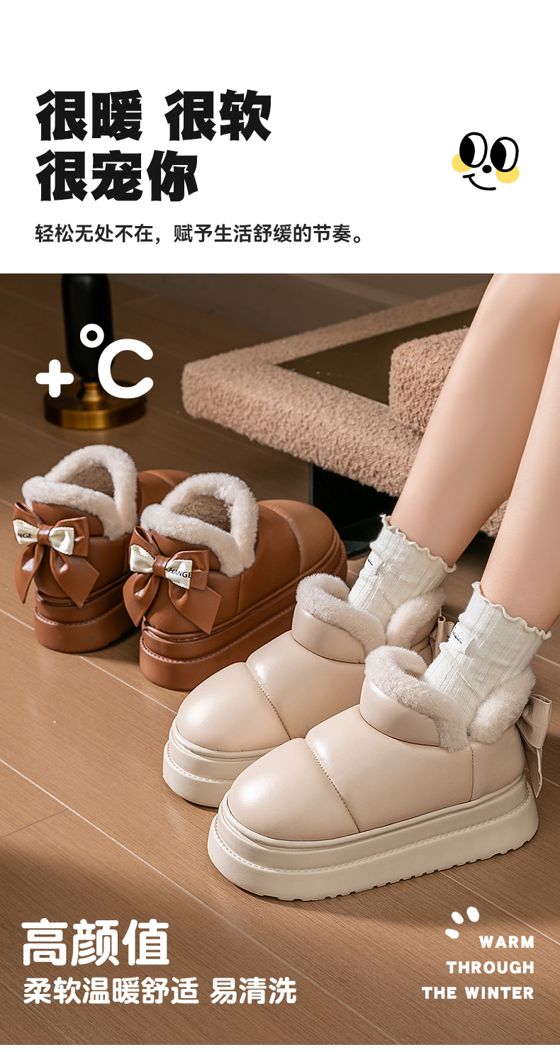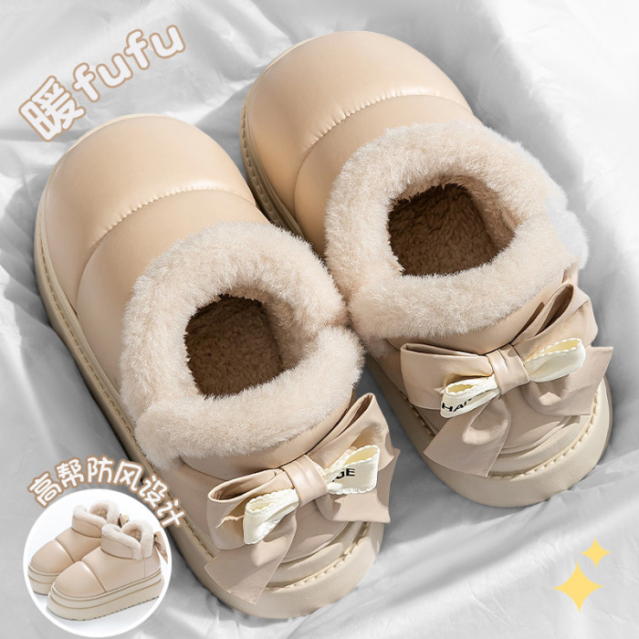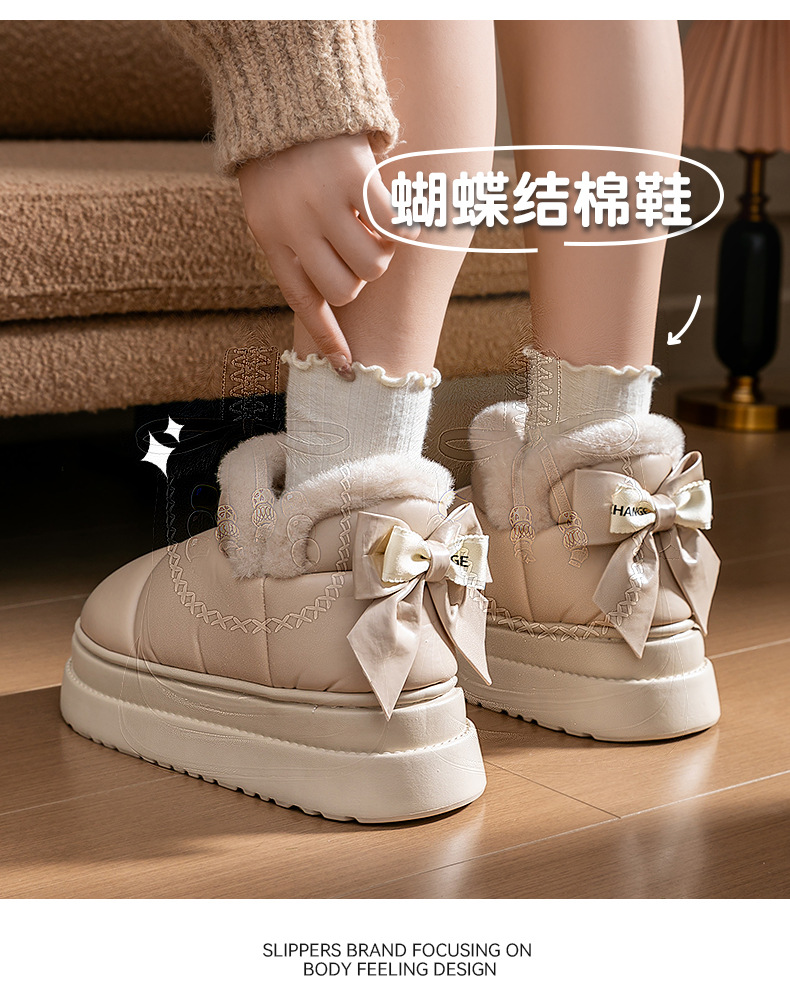 棉拖鞋女士秋冬季2025新款室內家居厚底防水蝴蝶結加絨保暖拖鞋女
