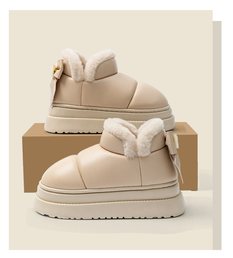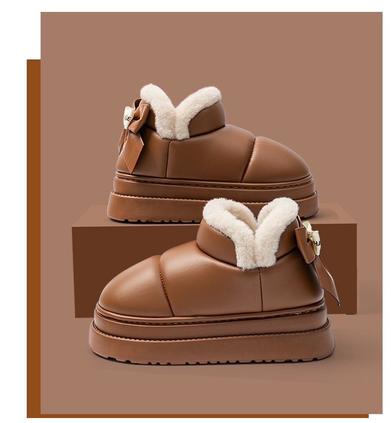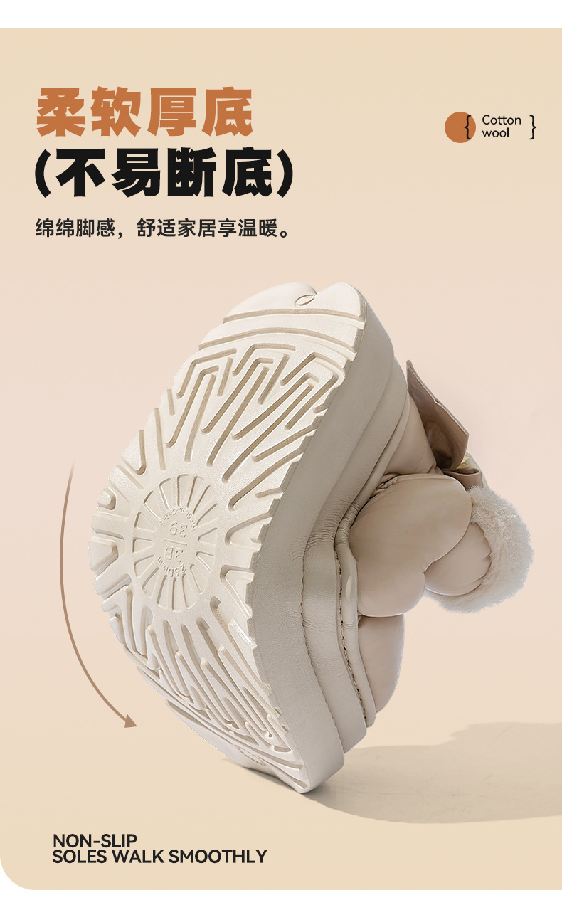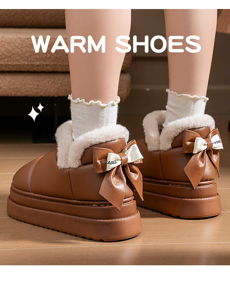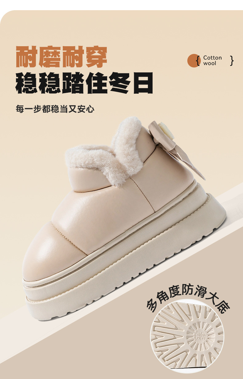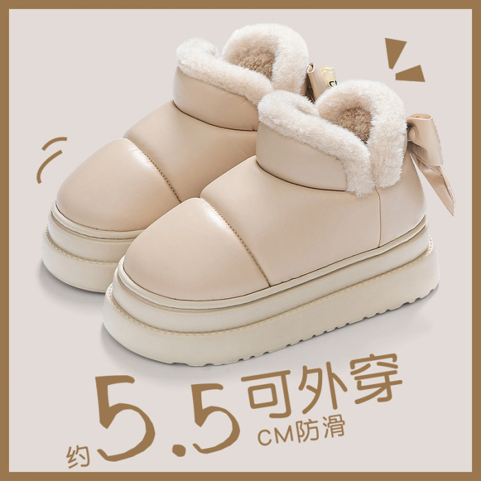 棉拖鞋女士秋冬季2025新款室內家居厚底防水蝴蝶結加絨保暖拖鞋女