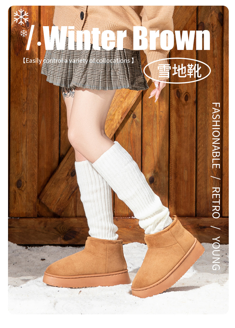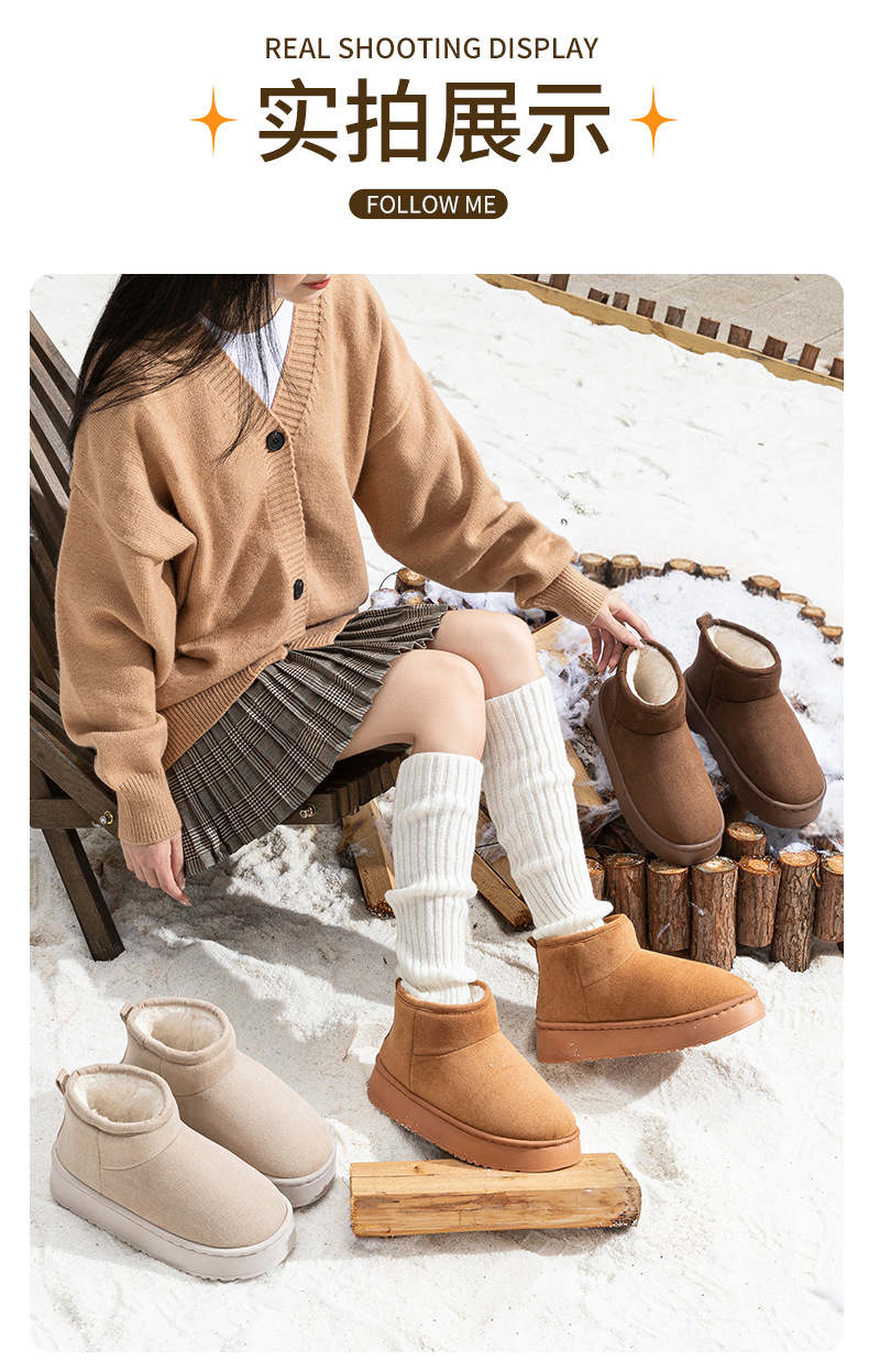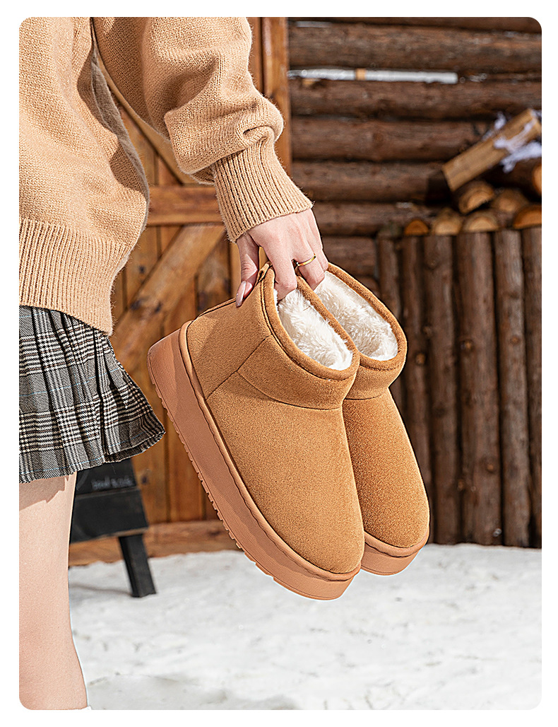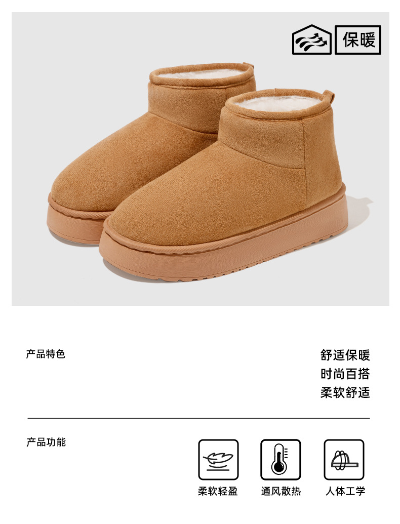 厚底保暖雪地靴冬季加絨厚毛絨棉拖鞋情侶款居家室外防滑棉鞋