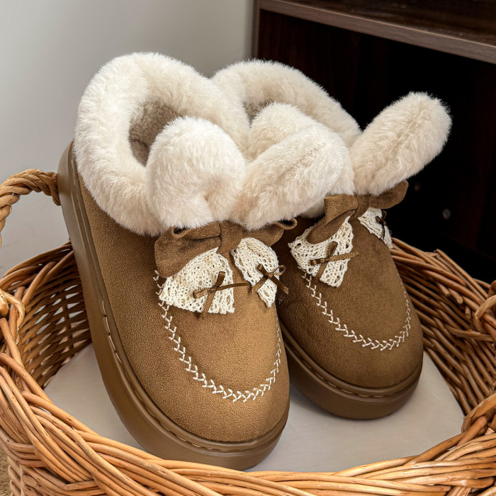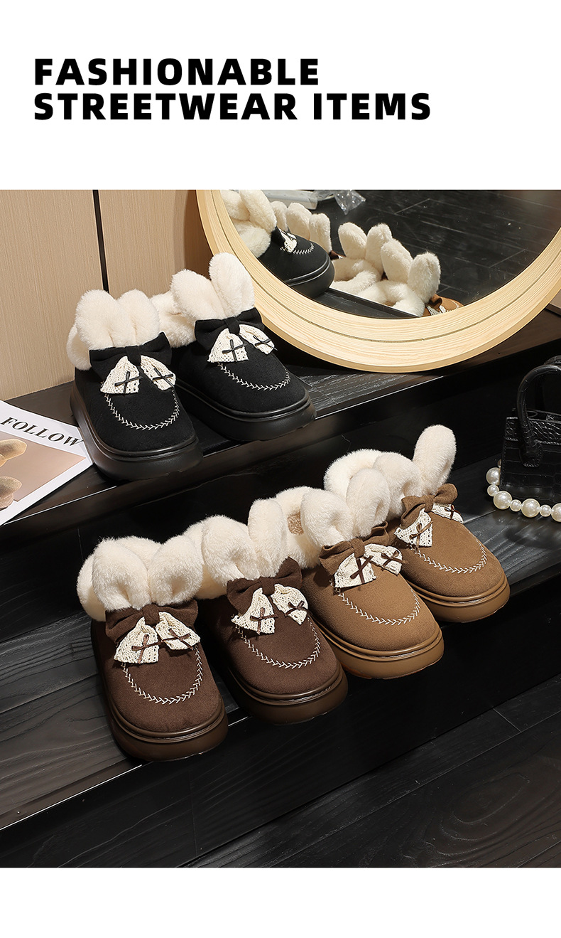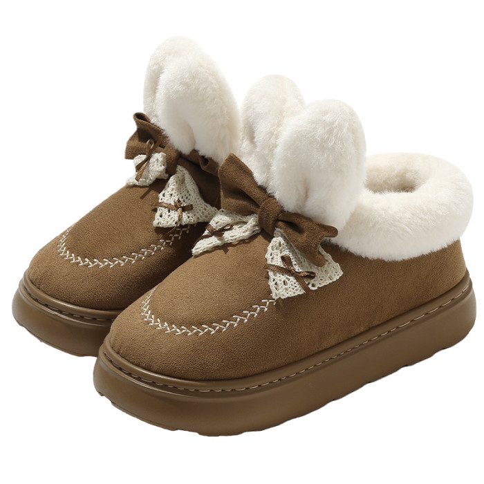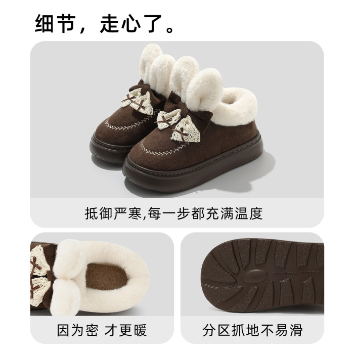 可愛卡通兔子高幫棉鞋女秋冬季毛絨棉鞋雪地靴厚底加絨毛絨棉鞋女
